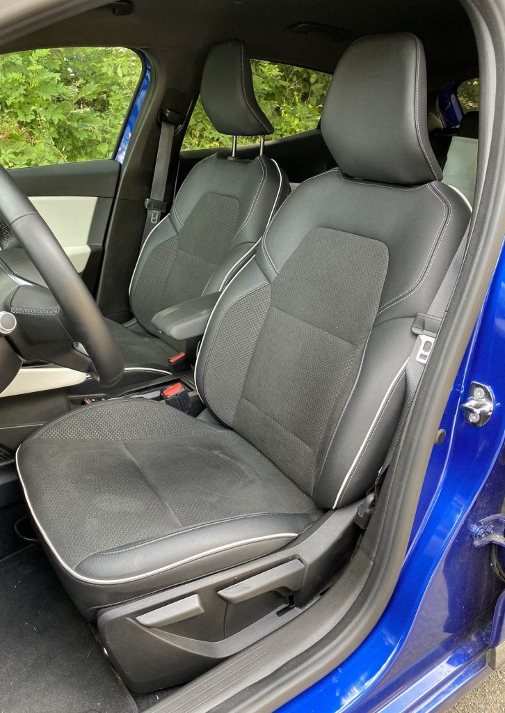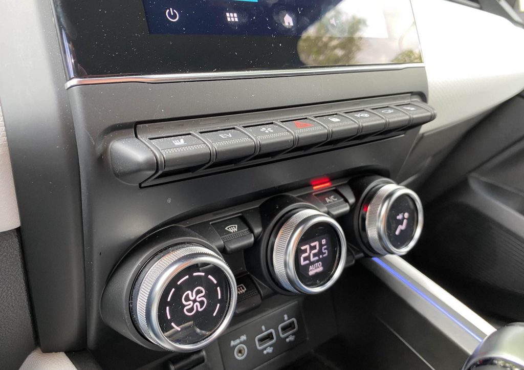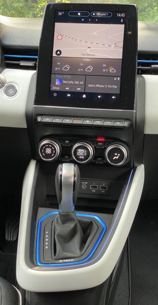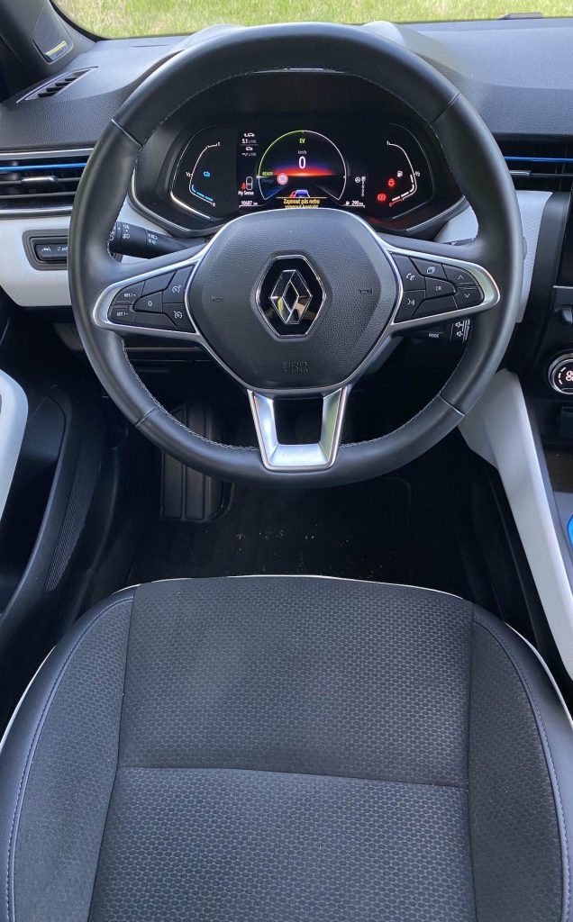 Není pochyb o tom, že když Clio udělalo takový dojem zvenčí, ani interiér nebude k zahození. I zde se událo velké kouzlo v podobě kombinace sněhově bílého interiéru, tmavého interiéru a ambientního osvětlení. Clio již není hračkou pro mladé holčičky, nýbrž pořádné auto. Musím nadmíru vynachválit použití klasického ovládání klimatizace, na které nedám dopustit. Některá auta se zabudovaným ovládáním klimatizace skrz dotykový displej mě dovádí k šílenství. Ovládání displeje u Clia bylo ale plynulé a člověk se v něm lehce zorientoval. Problém však nastal, několikrát, při zapojení telefonu na Apple CarPlay. V tu chvíli mi začal systém reagovat opravdu velmi pomalu a to vyžadovalo velkou dávku trpělivosti – zvlášť, když jedete domu z práce a chcete si pustit nějakou tu muziku na uvolnění. Bohužel tato malichernost kazí velmi příjemný dojem z auta, a tak je jedině dobře, že ostatní funkce  fungují na jednoduché a bezproblémové bázi. Chválím i jednoduché zpracování multifunkčního volantu, ačkoli vypadá velmi nadčasově a sofistikovaně, hierarchie tlačítek je lehce zapamatovatelná a ovladatelná. Volant se skvěle drží a má velmi lehké a citelné manipulování. Na levé straně od volantu jsou čtyři tlačítka s funkcemi, jako je asistent držení pruhů anebo vyhřívání volantu. Vyhřívání volantu v Cliu? To je prostě bomba!
