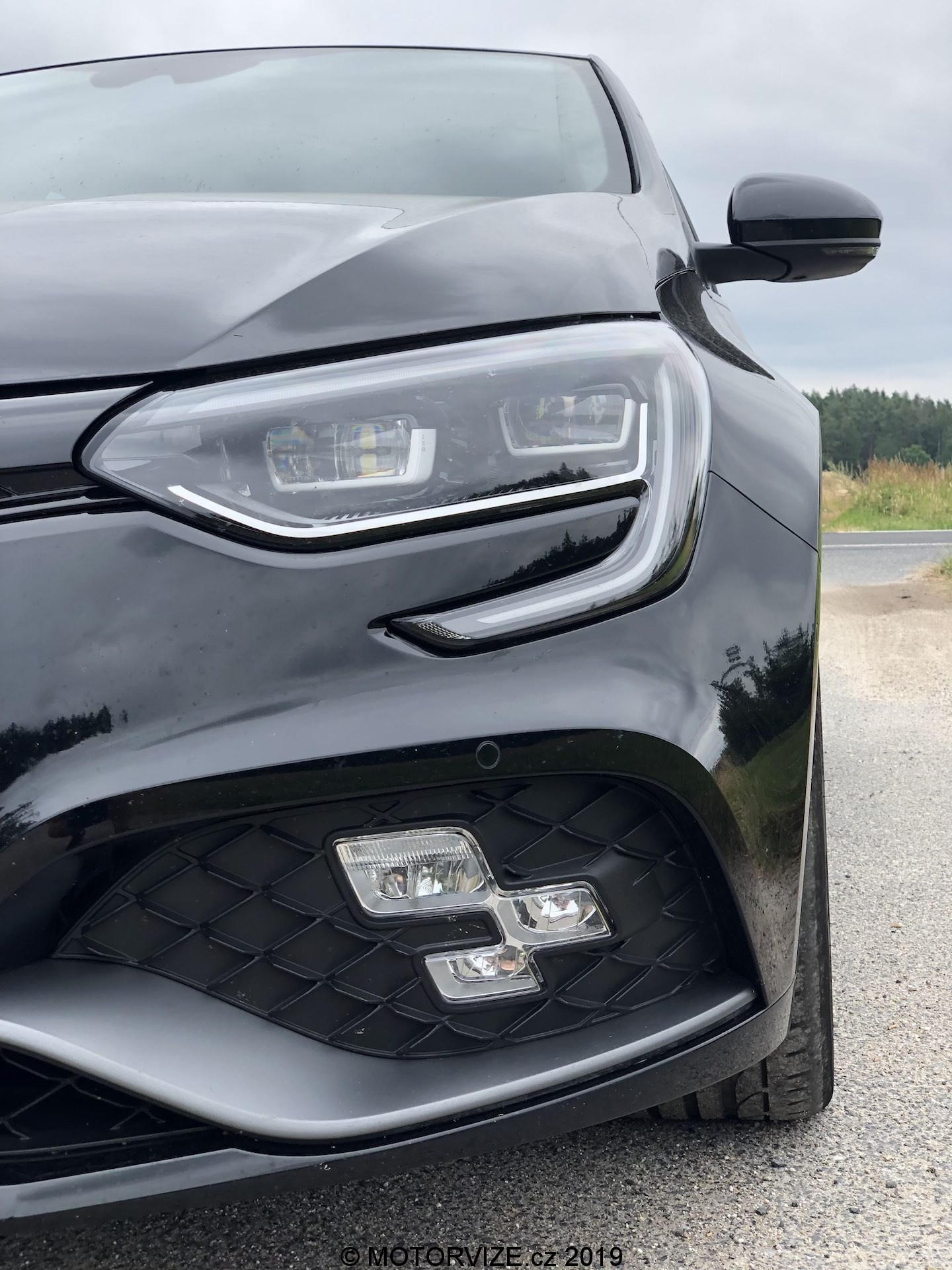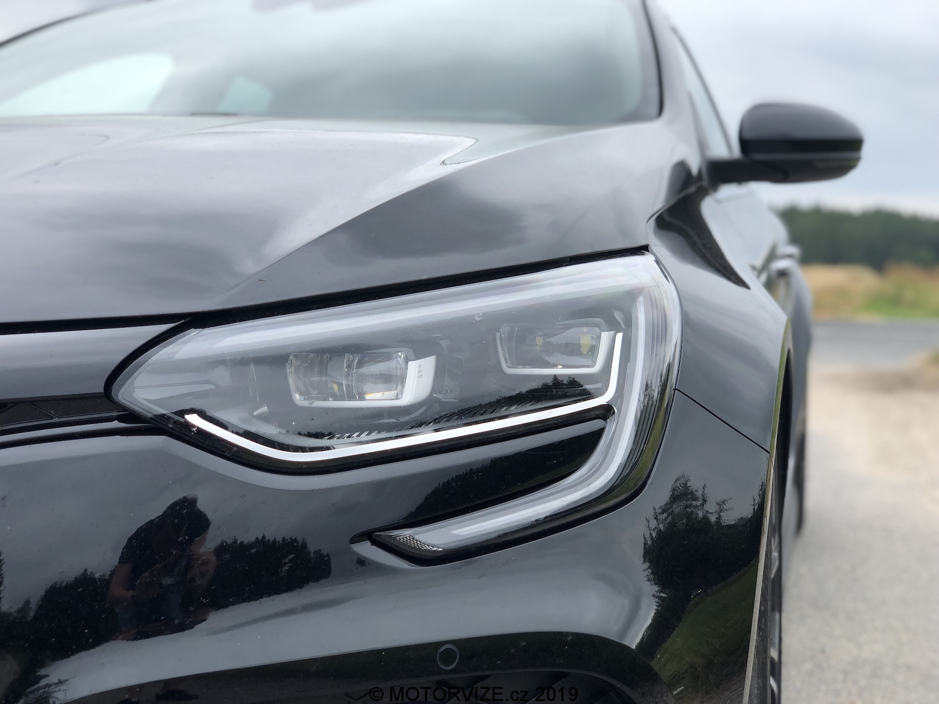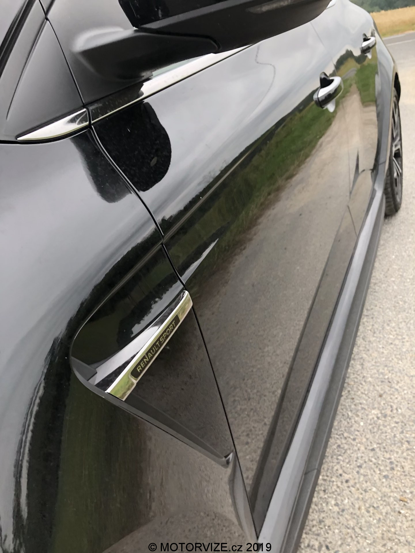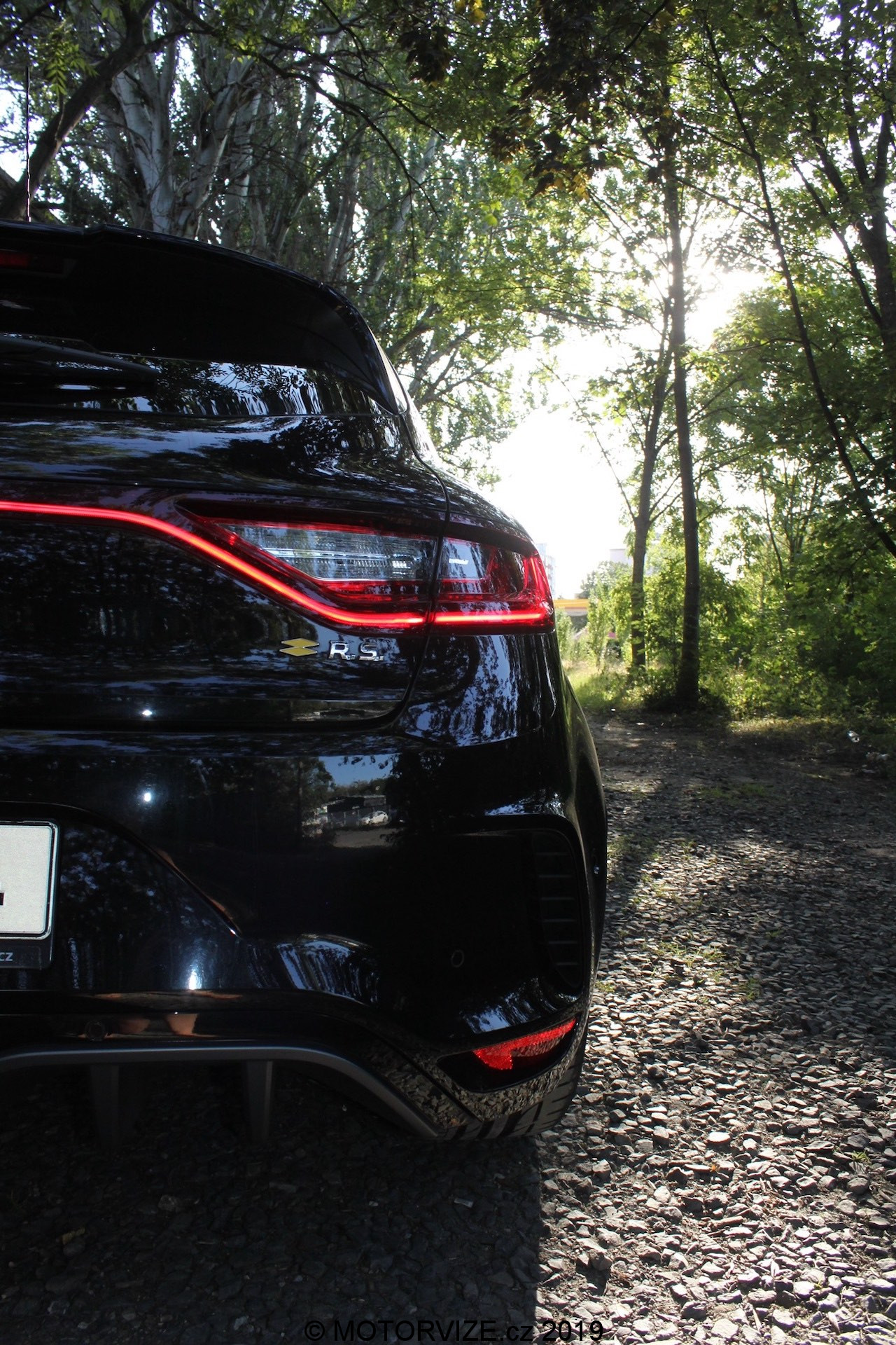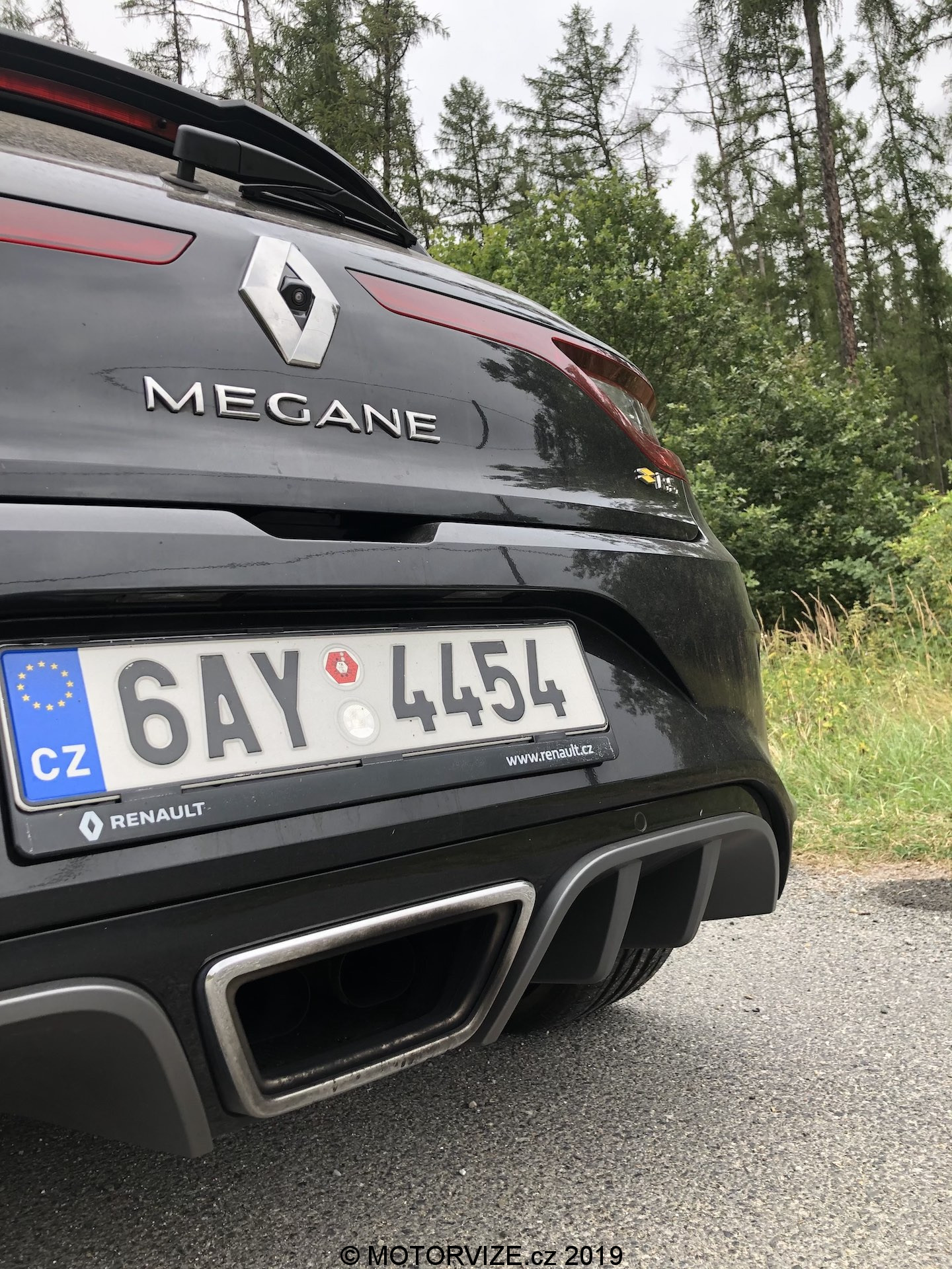 Už jen pod samotným označením si dokážeme představit, že se nebude jednat o obyčejný vůz. Mé představy se naplnily při prvním pohledu na RSo, a to už když jsem si jej přebírala. K mé maličkosti přijel černý hatchback, který na první pohled nevyčníval z davu, avšak když jsem jej obešla dokola, zjistila jsem, že je to skrytý ďábel. Jen bezmocně bychom zde hledali malé a nevýrazné disky. Naopak v námi testované verzi nacházíme 19palcová kola z lehkých slitin v designu Interlagos. Přední nárazník zaujal inspiraci přírodou, a tak nechybí otvory pro přívod vzduchu strukturované do včelí plástve. Samozřejmostí jsou full LED světla, která i při jízdě v noci rozsvítí půl města. Zároveň je právě sportovnímu provedení propůjčen výjimečný světelný podpis, a to především v přední části. Připomínkou, že se nejedná jen o obyčejný vůz je i logo R.S. Speciální nárazník nacházíme i v zadní části auta, do něhož je implementován i zadní difuzor s centrálně umístěnou koncovkou výfuku. Musím říci, že tento styl mne zaujal ze všeho nejvíce, protože se naprosto liší od všech ostatních. Kombinace všech těchto specifických prvků spolu s černým metalickým lakem Etoile dodávají Megánu RS charakter nespoutaného býka, který se mně osobně neodolatelně líbí.