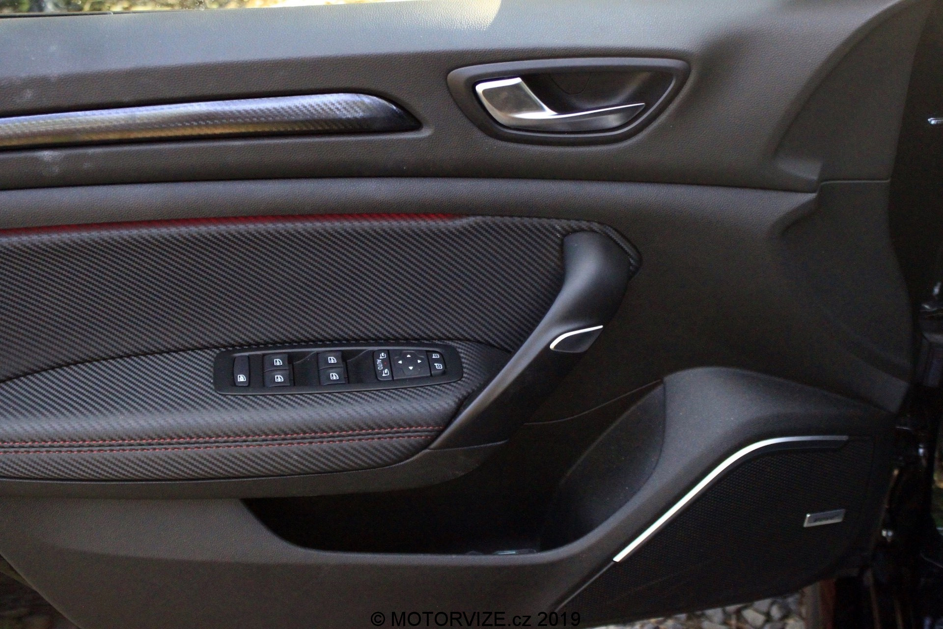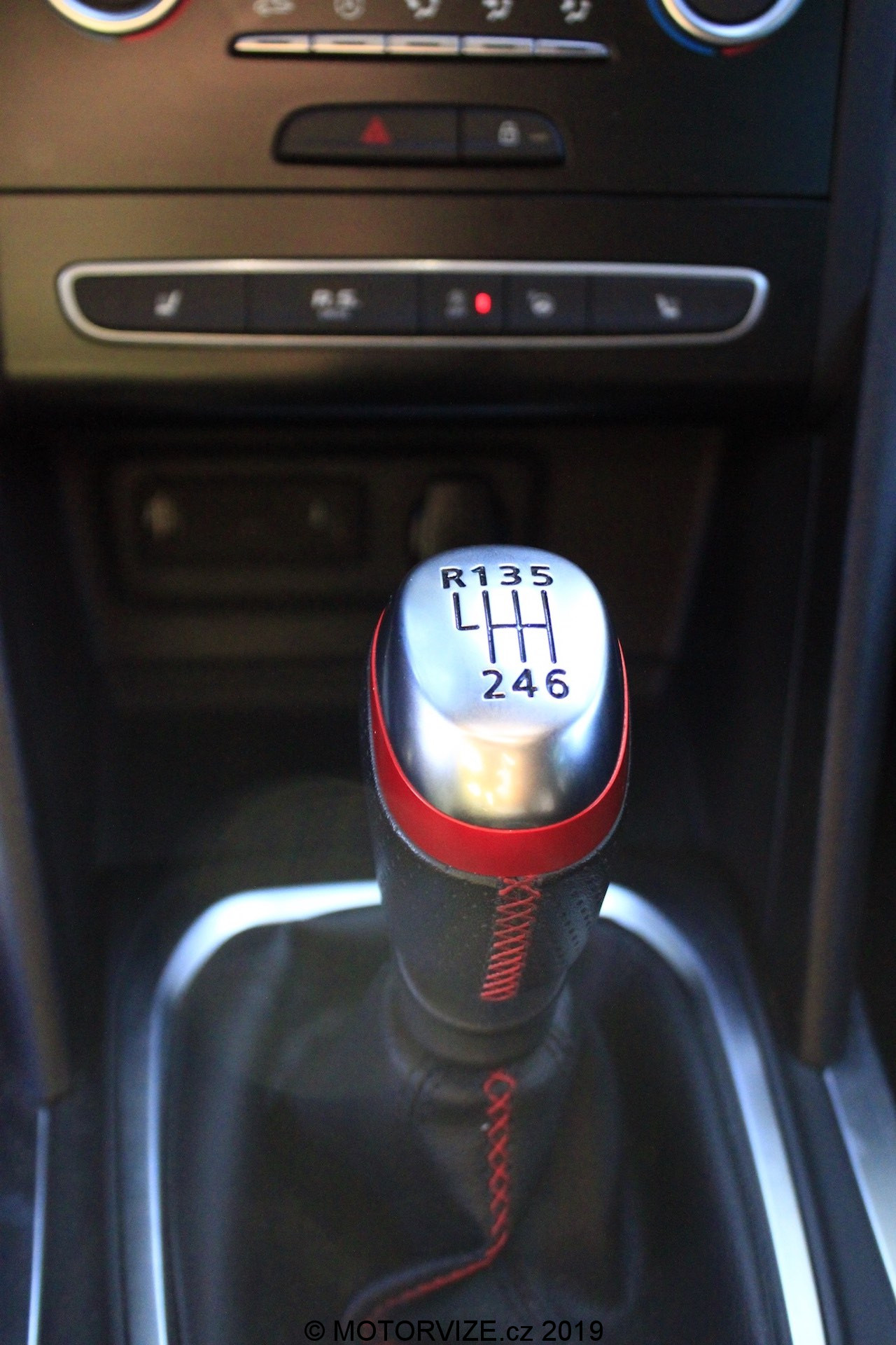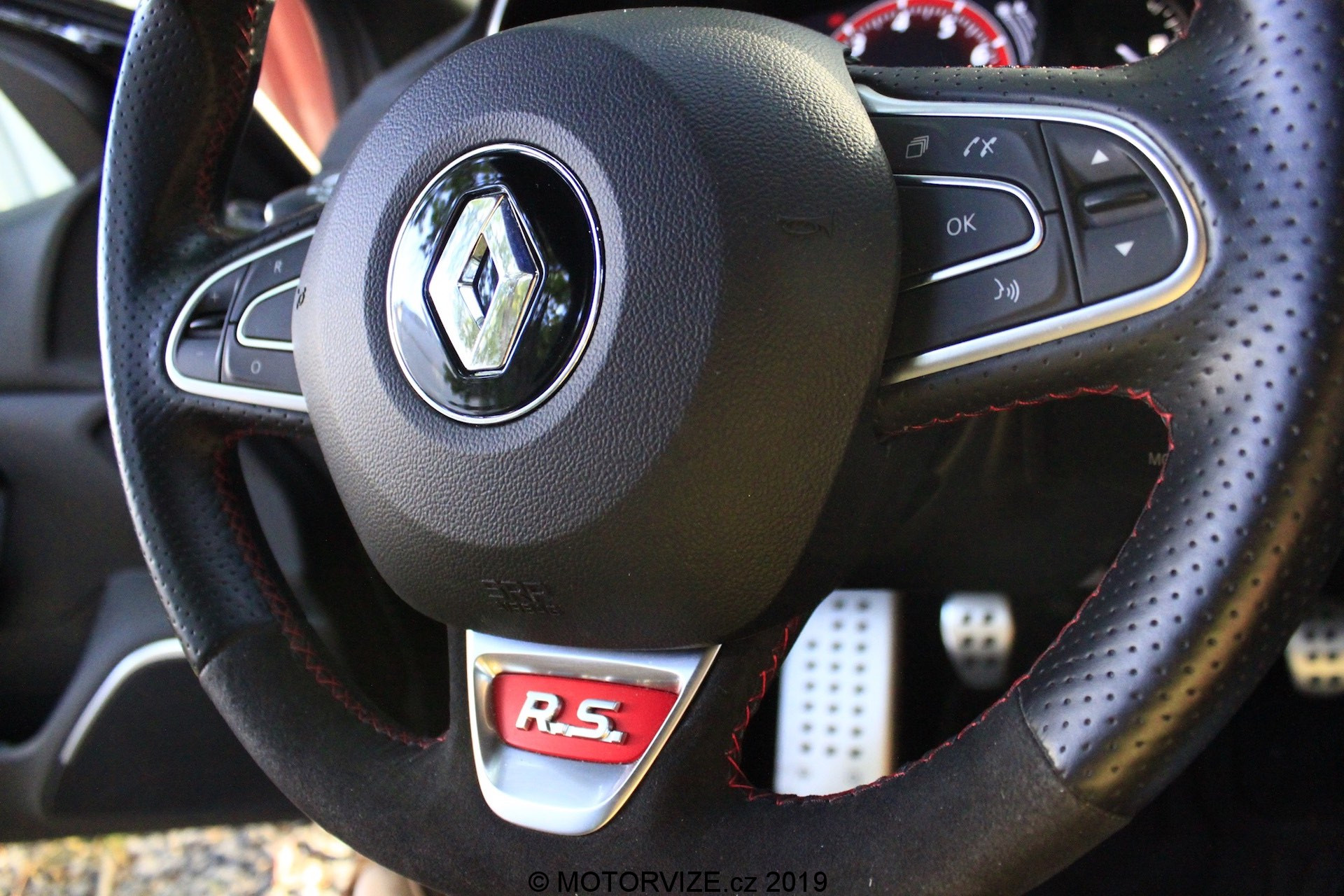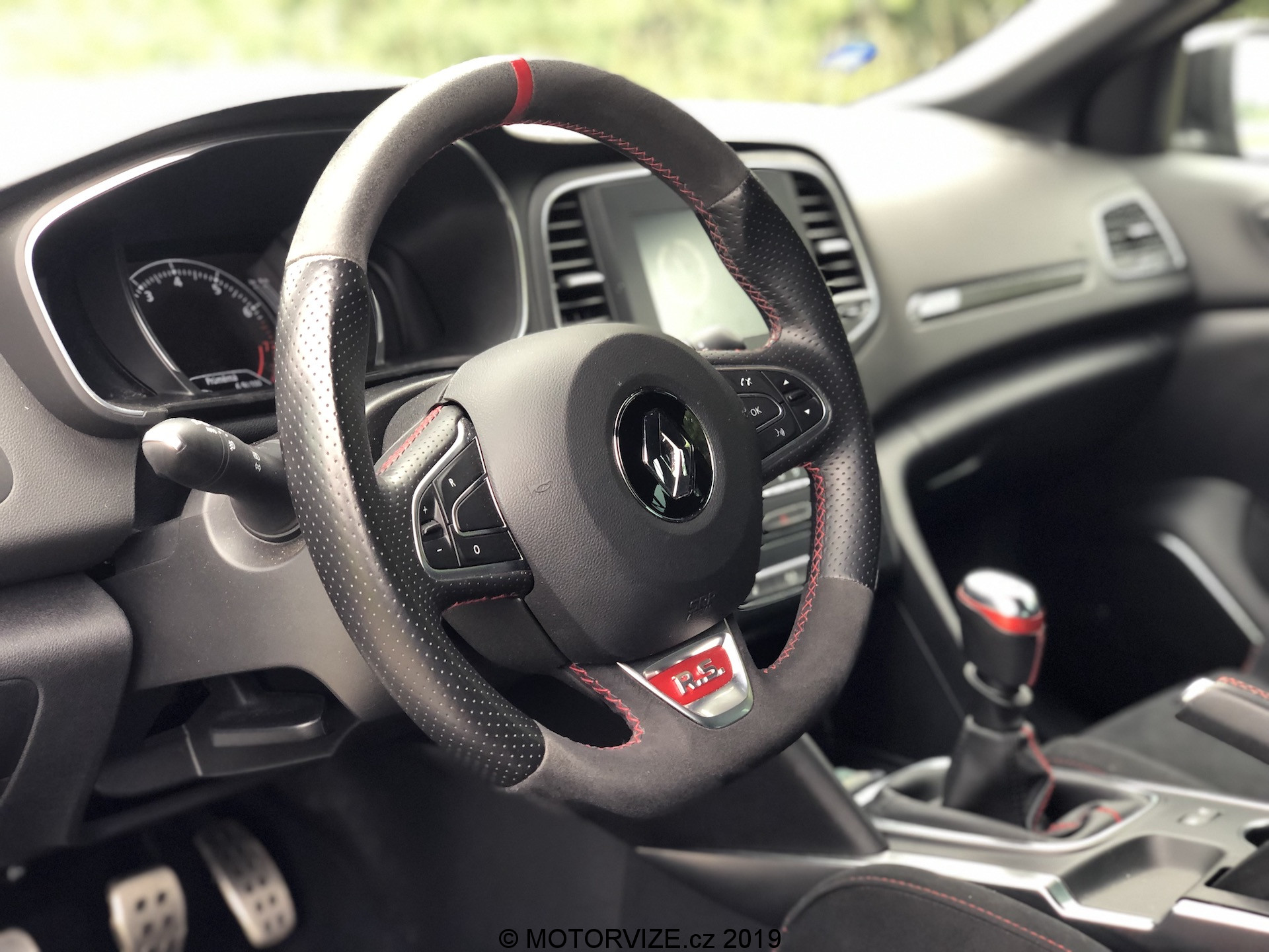Při samotném pohledu do duše tohoto hothatche jsem byla utvrzena, že se jedná o sportovní vůz. Sedačky, jaké se zde nachází, jsou v gustu každého gurmána. Při posazení do těchto sportovně laděných křesílek s obřími bočnicemi si rázem přijdete jako Ken Block číslo dvě. I na sedačkách nám je jasně řečeno, že se jedná o R.S., a to právě tím správným emblémem. I když jsem do nich prvně zapadla jak voják do zákopu, pocit byl nepopsatelný a natěšenost z jízdy dvojnásobně větší. Celý tmavý interiér v Meganu byl v námi testované verzi obohacen příplatkovou alcantarou, která vyjde na 26 000 Kč. Kombinace černého exteriéru a interiéru byla v těchto tropických dnech trochu těžší, jelikož zde chyběla odvětrávané sedadla, které nejsou bohužel ani v nabídce. Ani tento malý nedostatek mi však nesnížil radost z tohoto černého ďábla. Ani multifunkční volant, který nacházíme uvnitř auta není obyčejný. Sportovní prvek v podobě červeného proužku přesně v horní polovině a stejnobarevné obšití dávají opět najevo sportovní život. K usnadnění manipulace s rádiem při jízdě máme k dispozici pod volantem ovládání hlasitosti a přepínání hudby a stanic. K hudbě nám zase slouží 8 reproduktorů značky Bose, díky kterým se cítíte jako na živém koncertě. Opět zde máme dotykový displej, který nabízí spoustu funkcí využitelných pro spokojenost každého z nás. Je zde i dotykové ovládání klimatizace, které vzhledem k velikosti tlačítek moc uspokojivé a ovladatelné není na místě, natož pak při jízdě a řízení. Jako bonus, který ocením a jistě nebudu jediná, jsou zatmavená zadní okna, jejichž přítomnost dodá soukromí celé posádce. Když už je řeč o posádce, nemůžeme si přeci myslet, že zde bude místo pro nespočet lidí. Pří řízení mou osobou se za řidiče vešel téměř kdokoliv, avšak řídil by někdo vyšší, jen stěží by se za řidiče nalodil dospělý chlap nebo někdo vyššího vzrůstu. V poslední řadě je zde jedna věc, která by trápila každého z nás. Tou „drobností“ je zámek vozidla. Při vypnutí motoru a provedení pár kroků se Megáne automaticky zamkne. Je velmi nepříjemné, když jedete například z nákupu, kdy v kufru máte věci, které chcete vyndat ven, ale než k němu stačíte dojít, auto se zamkne. U této příležitosti jsem zrovna slušným slovníkem nepřekypovala. Tato jediná problematika mi na autě opravdu vadila, ale jinak musím uznat naprostou všestrannost a osobitost auta. Po konzultaci s kolegy navíc musím uznat, že půjde dost možná na problém jen jediného kusu – u jiných aut s touto funkcionalitou jsme podobné nedostatky nezaznamenali. Hold prostě jednou myšlenka dobrá, provedení slabší.