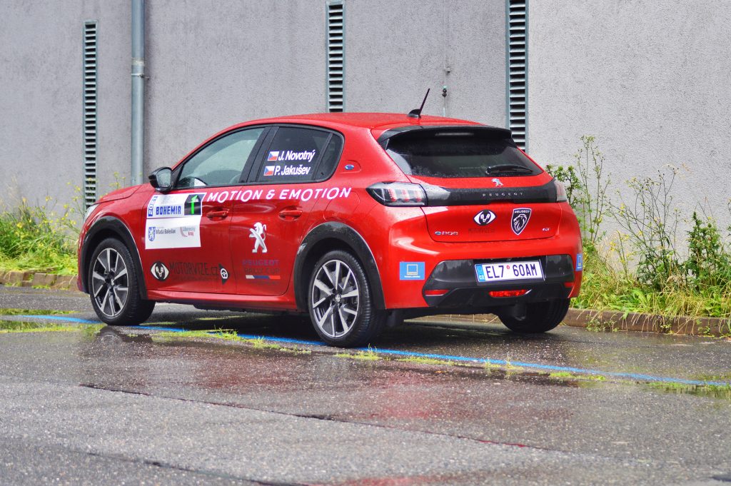 O tradičním začátku všech eko rally, tedy administrativní a technické přejímce, vám toho asi moc říkat nemusím. Po jejich úspěšném absolvování posádky vyrazili směrem ke kalibračním úseku (opět nic neobvyklého). Ten jsme si konkrétně my dali hned čtyřikrát – prostě vyzbrojeni technikou a s vidinou boje o titul nechcete nechat nic náhodě. S přípravou jsme ale byli zřejmě jedni z nejpilnějších, a tak start do RS 1 (regularity stage – zkouška pravidelnosti, pozn. red.) přišel až v pozdně odpoledních hodinách, kdy na cestě z Mladé Boleslavi do Liberce, centra ECO Rally, doslova padaly trakaře. V lese, kde startovala první zkouška, nebylo skoro nic vidět, stěrače nestíhaly, okna se mlžila a světla nepomáhala. Obecně skvělé podmínky pro elektromobil, dalo by se říci. To jsem vám ani neřekl, že na nás čekalo více než 30 závodních kilometrů, na nichž jsme se museli soustředit na průměrnou rychlost a nesměli se ztratit. To je v rychlosti princip jízd pravidelnosti – 1.) výborně se orientovat a neztratit se, 2.) co nejpřesněji dodržovat zadanou průměrnou rychlost na měřených úsecích (zkouškách pravidelnosti). Za odchýlení od stanovené průměrné rychlosti dostávají pak posádky trestné body a ta, která jich má nejméně, vítězí. Pokud se vrátíme zpět na první „RSku“, zjistíme, že i přes nepřízeň počasí, kterou jsme měli pozdějším startem umocněnou asi nejvíce ze všech, Peugeot MOTORVIZE.cz týmu patřila třetí příčka. Na cestě do Liberce pak byla připravena jen zkouška zrychlení na uzavřeném letišti. 1 km na čas neměl být úplně disciplínou malého elektrického Peugeotu se 100 kW výkonu. Ani na vodě jsme se ale nenechali zahanbit a porazili třeba i výrazně výkonnější Enyaqy. Do Liberce pak dojíždíme jen s několika procenty baterie, i to je ale úspěch, protože jsme ani z Prahy nevyráželi s plnou baterií, v Boleslavi nedobíjeli, stihli 4x kalibrační úsek a ještě se vraceli pro druhé „podpůrné“ vozidlo. Sluší se podotknout, že je potřeba považovat za úspěch i samotné úspěšné dojetí do časové kontroly, neb ne všem posádkám se toho podařilo dosáhnout. Jednomu z vozů stojícím vysoko ve startovním (mezi prvními pěti) bylo bohužel dopřáno nechtěnému výletu mimo silnici. Ačkoliv více informací nemáme (a nemůžeme poskytnout), není tajností, že pro tuto posádku závod v danou chvíli skončil, neboť se jejich závodní vůz nepodařilo vytáhnout a ani psychika po takovém incidentu by zřejmě nedovolila pokračování. To vše jen ukazuje, jak náročný může boj o přední příčky v takovém závodě být.