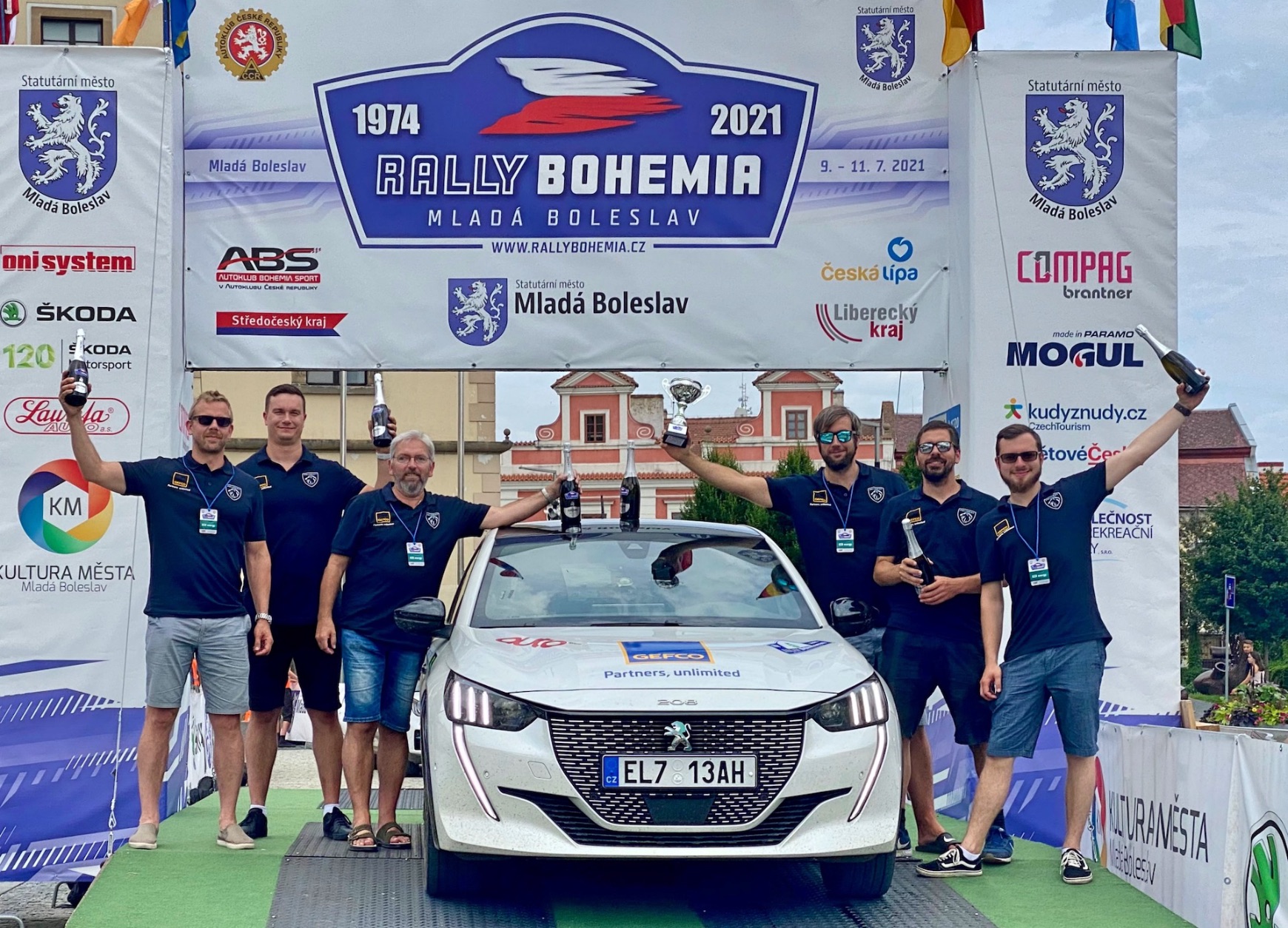 I díky tomu, že jsme se nevzdali a dokázali se dostat i z tak svízelné situace, jaká by zřejmě pro řadu soutěžících znamenala okamžitý konec, byly i pro nás připraveny tři uzavřené tratě rychlostních zkoušek, na nichž závodili jen pár hodin před námi závodní speciály klasického rally. Snad si nebudete myslet, že se chlubím, zřejmě ale i klid na palubě způsobený v tu chvíli už nulovými ambicemi pomohl k neuvěřitelně skvělým výsledkům. Právě uzavřené RS 15, 16 a 17 se nám podařilo zvítězit. Pokud by se tak vyhodnocovalo pořadí za samotné části, v té sobotně-odpolední bychom s velkým odstupem byli na první příčce. Štěstí pak celkově v rámci rally relativně přálo oběma našim sesterským posádkám. Peugeot měl jedno z nejsilnějších zastoupení ve startovním poli letošní ECO Energy Rally Bohemia, a tak především díky 6. místu AF Peugeot týmu a 11. pozici Peugeot Autohled.cz týmu jsme se mohli postavit na rampu a převzít společně s nimi pohár za druhé místo mezi výrobci elektromobilů. Na všem zlým je tak i něco dobrého a tady toho rozhodně nebylo málo. Z okolí Liberce a Mladé Boleslavi si tak odvážíme cenné zkušenosti, skvělé zážitky a kupodivu i jeden ten kov. A když už jsme u těch zážitků, jim vděčíme kromě pořadatelů také ostatním týmům, které si s trochou nadsázky dovoluji považovat za „ECO rally rodinu“, a tak třeba letos vítěznému týmu, Mitsubishi Motors ČR ve složení A. a D. Průša ještě jednou na dálku gratulujeme. Boj i díky tomu, jak skvělá atmosféra na „Bohemce“ bývá, nevzdáváme a už teď je jasné, že se nejpozději na jaře příštího roku zase na tratě ECO rally podíváme…