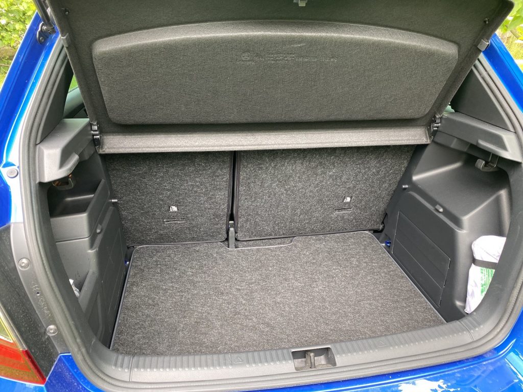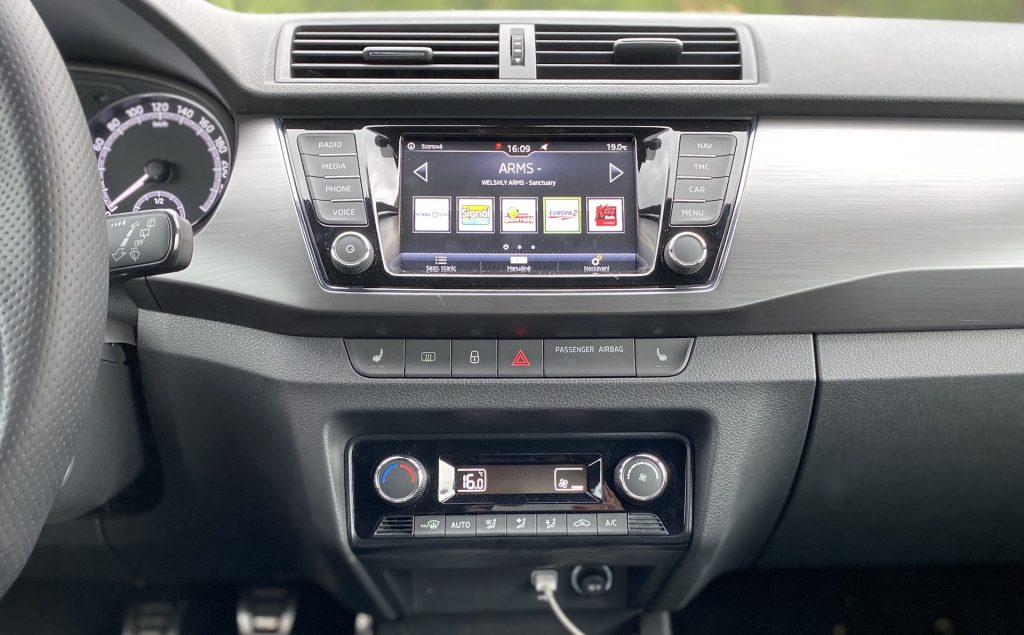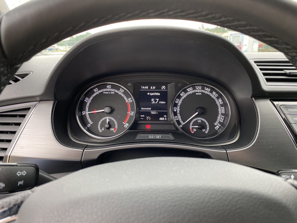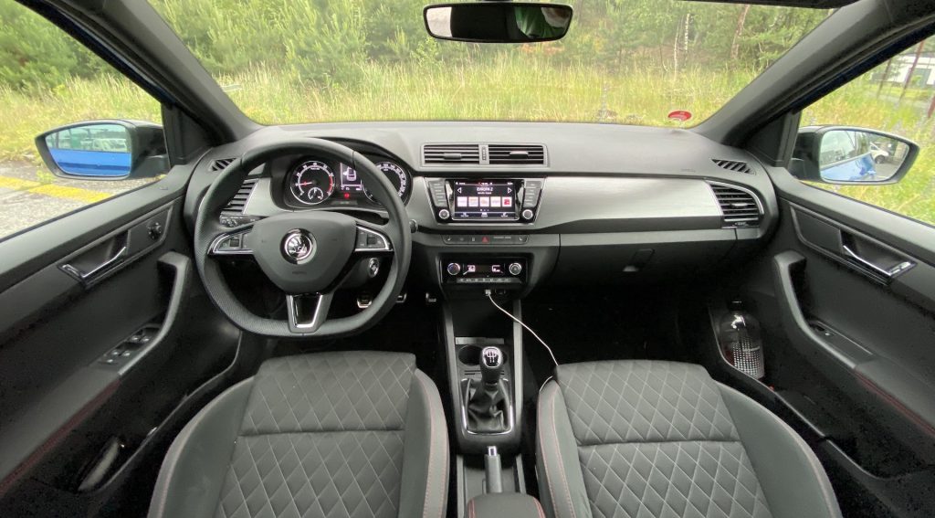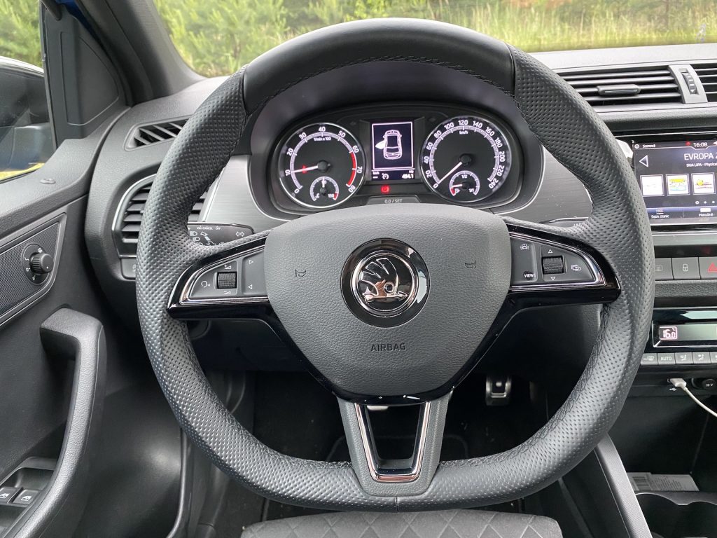 Co se týče interiéru, není zde nic, co by mohlo být na obtíž. Pro mne, jako menší osobu, byly možná trochu nepohodlné sedačky, a to díky vyšší výšce opory v oblasti nohou. Naopak každý spolujezdec, který měl možnost ve Fabii jet, si sedačky vychvaloval, tudíž prostě jen nejsem vlastníkem průměrné postavy, na níž byla Fabia konstruována, haha. V ostatních měříkách se sedadla prokázala nad očekávání slušnými vlastnostmi, ať se týče bočnic či materiálu. Sluší se poznamenat, že šlo o příplatkovou „sportovní“ variantu, v níž se kromě výraznějšího bočního vedení skrývá i integrovaná hlavová opěrka – skoro by jeden řekl, že jde o klasické škořepiny hodné závodním vozům. Pojem v jednoduchosti je krása se dá říci i o vnitřku, neb zde nic nepřekáží, ale ani nechybí. Jednoduchý, funkční a hlavně pohodlný je multifunkční volant, jenž se naučí ovládat každý během pár sekund. Nechybí kompatibilita Apple CarPlay, základní ovládání přes dotykový displej a sound systém, který na tak malé auto hraje až překvapivě dobře. V letních dnech je potřeba klimatizace, kterou zde samozřejmě najdeme – automatickou a hlavně díky mechanickým tlačítkům i příjemně ovladatelná. V poslední řadě je nutné zmínit prostornost, která se může jevit jako průměrná, avšak na poměry třídy je tomu ve skutečnosti spíše naopak. Do auta se vejde relativně bez problému čtyřčlenná posádka dospělých mužů. Namítat bychom mohli po přesunu k zavazadlovému prostoru. Ten není tvořen zrovna na cestování do Chorvatska, ale na víkend na chatě opět pro čtyři lidi hravě zvládne. Základní objem 315 litrů je ale spíše nadprůměrem, který se vyrovná i některým hatchbackům o třídu výše. Dnes už absolutní anomálií se zdá být verze kombi, která nabídne až těžko uvěřitelných 530 litrů základního objemu kufru.