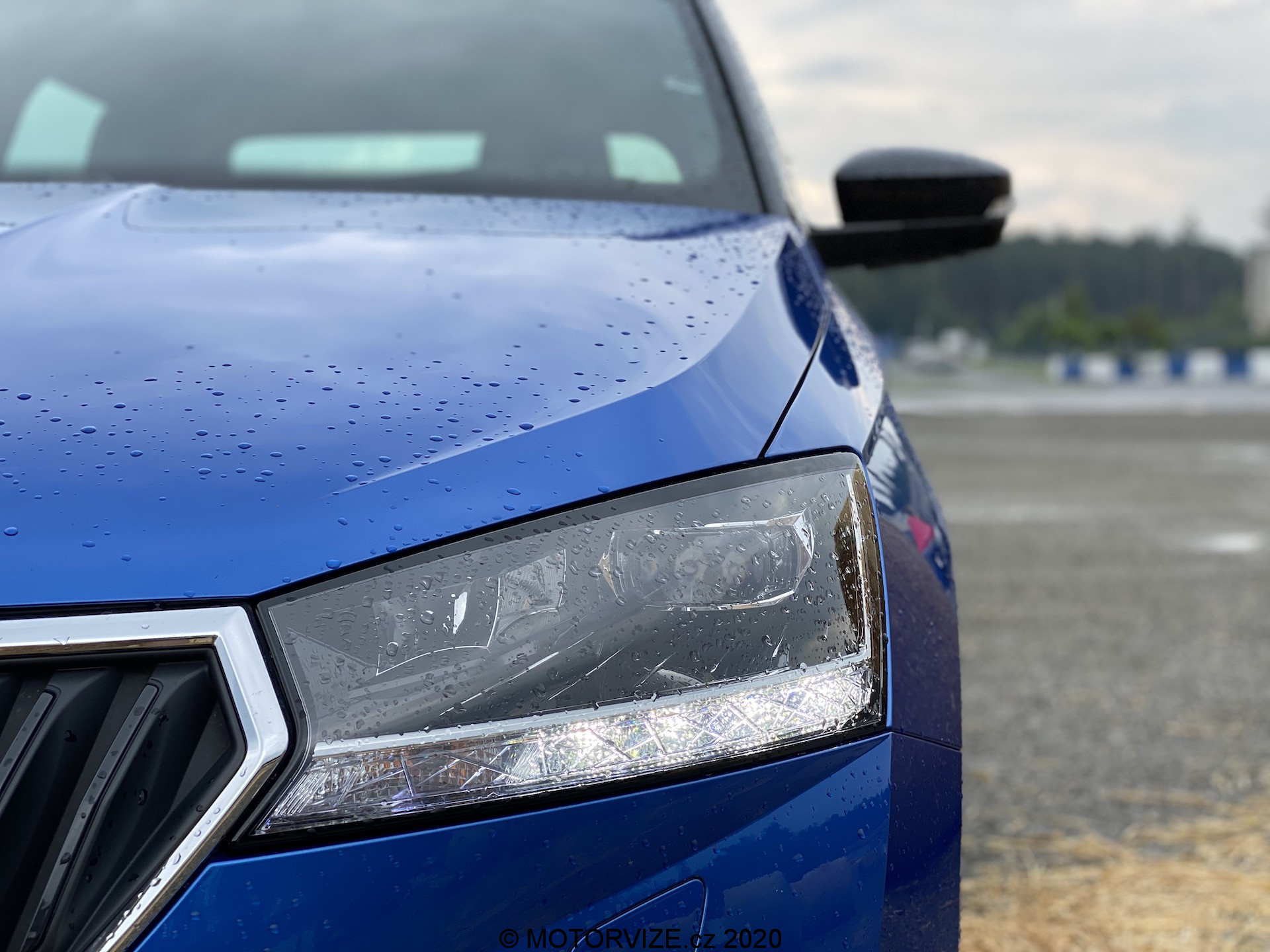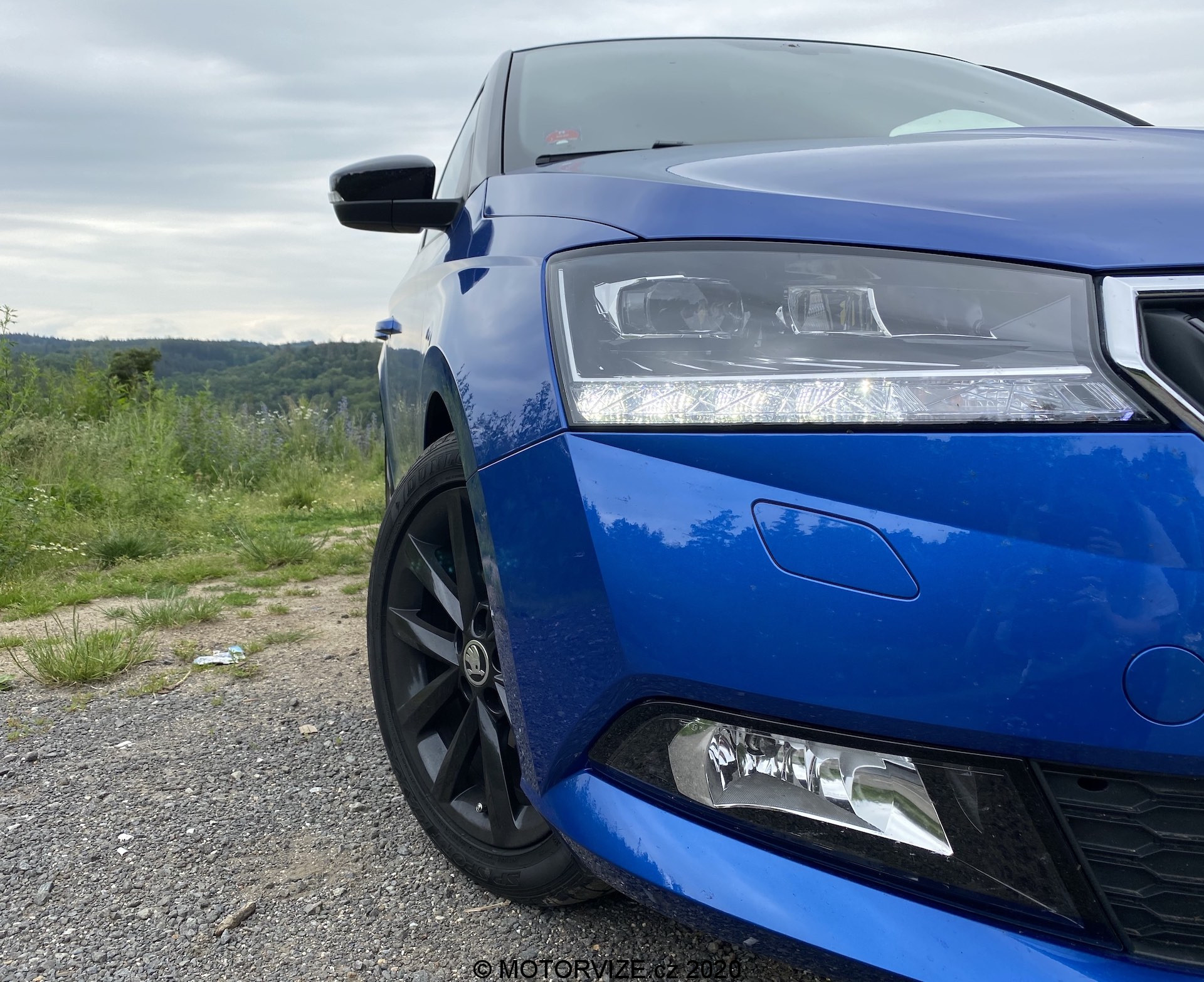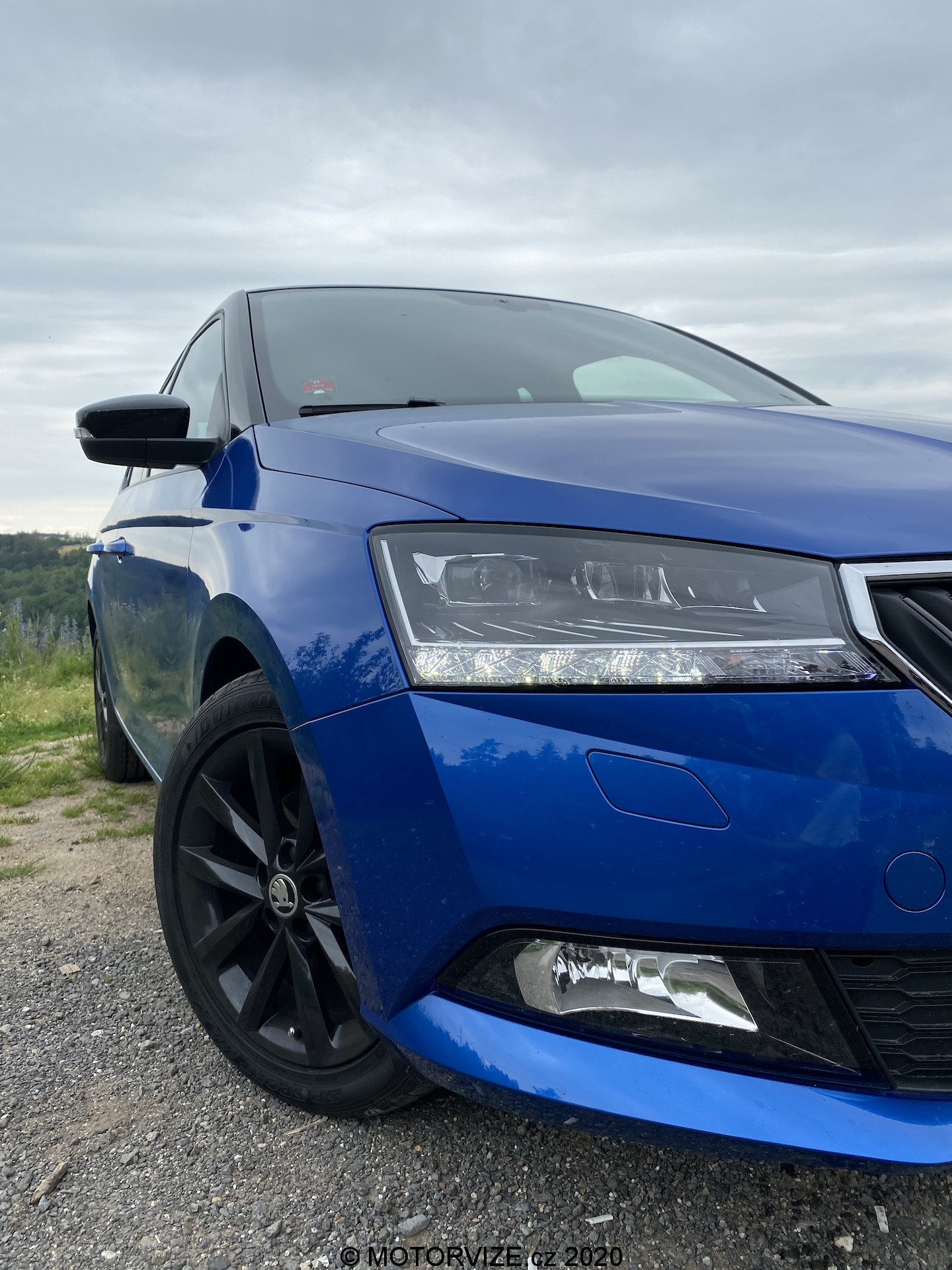 Škoda Fabia je auto, které každý moc dobře známe a nejednomu z nás dokonce stálo před barákem. Fabie je většinou jedním z prvních vozů čerstvě začínajících řidičů a bohužel i častým terčem útoku tuningářů. Utekla však dlouhá doba a tento model se z jedničkového vajíčka vyklubal do dospělé trojky. Nebude tedy žádným překvapením, když hned na první dobrou řeknu, že Fabie je klasikou v moderním kabátu, která nemůže urazit absolutně nikoho. Po chvíli obhlížení musím konstatovat, že v té jednoduchosti, kterou toto malé a praktické auto vykazuje, je vlastně i krása. V kombinaci s královskou modří, černou střechou a černými alu koly vypadá i v uvozovkách obyčejnější auto dravě. Líbivý vzhled podporují i FULL-LED světlomety, jenž současná Fabia dostala po modernizaci a na takto malém autě působí velmi luxusně. Dopodrobna popisovat exteriér vlastně vůbec nemusím, protože každý z nás ví, jak taková Fabie vypadá. Ráda však vytyčím pár detailů, které stojí za pohled a posouvají auto o level výš. Už třeba díky zmíněným předním světlometům celkově přední maska nabrala ráz sportovnějšího auta. Spolu s lízátkem, které je rozhodně prvkem velkým si dokáži představit černé orámování grilu místo stříbrného, které působí trochu obyčejněji. Avšak tento malý detail se ztrácí v sympatii relativně velkých černých litých kol podtrhujících dominanci již tak elegantního auta.