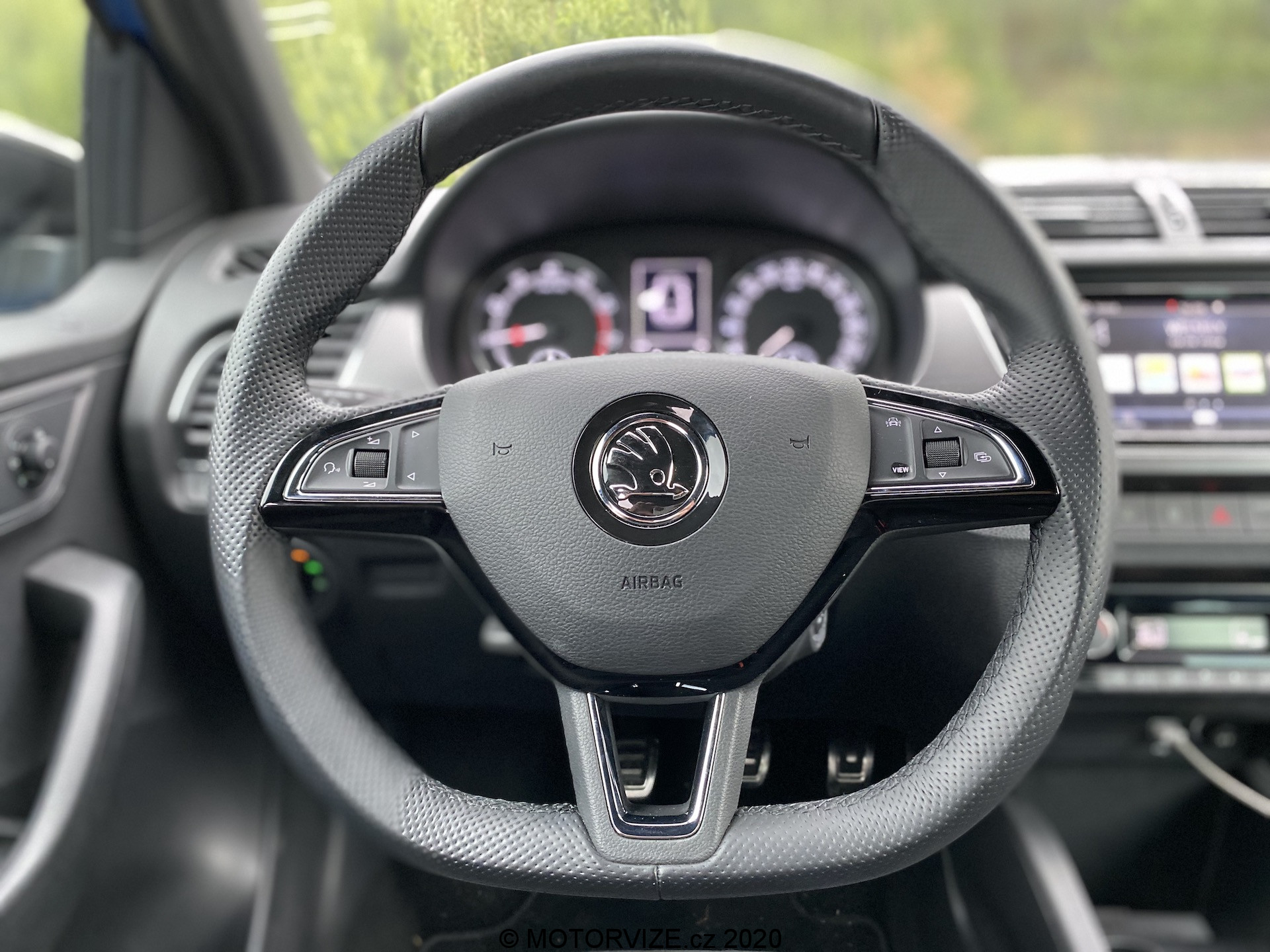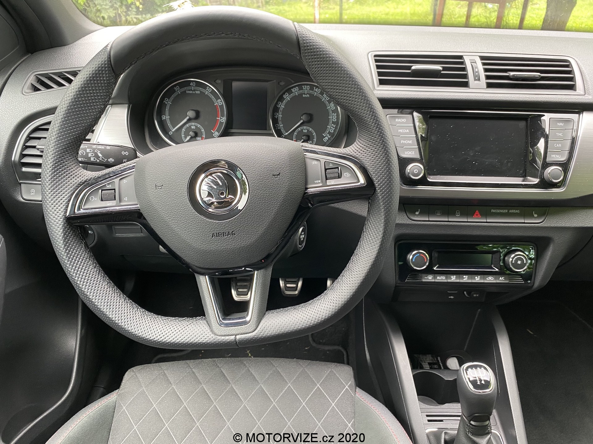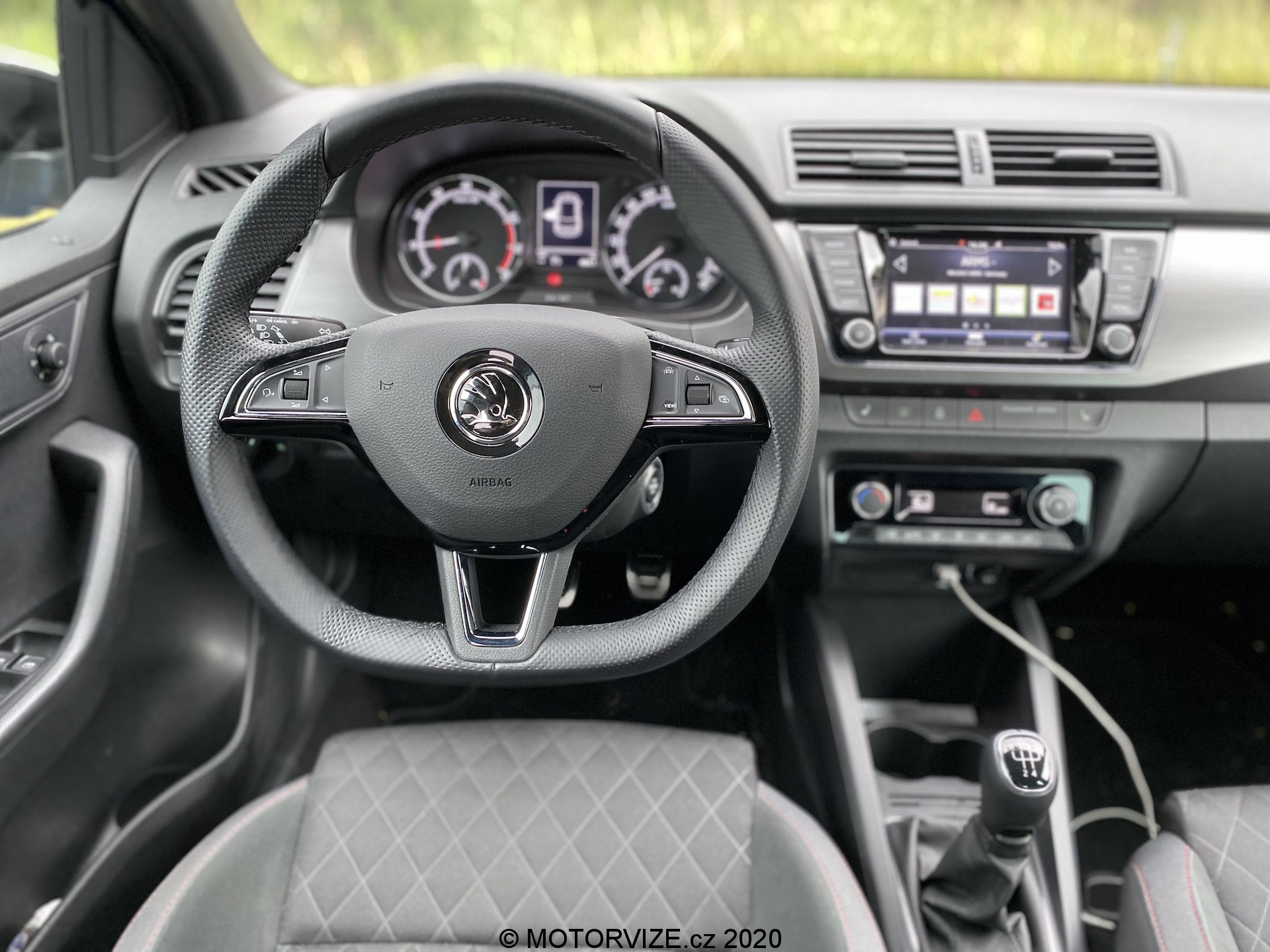 Co se týče interiéru, není zde nic, co by mohlo být na obtíž. Pro mne, jako menší osobu, byly možná trochu nepohodlné sedačky, a to díky vyšší výšce opory v oblasti nohou. Naopak každý spolujezdec, který měl možnost ve Fabii jet, si sedačky vychvaloval, tudíž prostě jen nejsem vlastníkem průměrné postavy, na níž byla Fabia konstruována, haha. V ostatních měříkách se sedadla prokázala nad očekávání slušnými vlastnostmi, ať se týče bočnic či materiálu. Sluší se poznamenat, že šlo o příplatkovou „sportovní“ variantu, v níž se kromě výraznějšího bočního vedení skrývá i integrovaná hlavová opěrka – skoro by jeden řekl, že jde o klasické škořepiny hodné závodním vozům. Pojem v jednoduchosti je krása se dá říci i o vnitřku, neb zde nic nepřekáží, ale ani nechybí. Jednoduchý, funkční a hlavně pohodlný je multifunkční volant, jenž se naučí ovládat každý během pár sekund. Nechybí kompatibilita Apple CarPlay, základní ovládání přes dotykový displej a sound systém, který na tak malé auto hraje až překvapivě dobře. V letních dnech je potřeba klimatizace, kterou zde samozřejmě najdeme – automatickou a hlavně díky mechanickým tlačítkům i příjemně ovladatelná. V poslední řadě je nutné zmínit prostornost, která se může jevit jako průměrná, avšak na poměry třídy je tomu ve skutečnosti spíše naopak. Do auta se vejde relativně bez problému čtyřčlenná posádka dospělých mužů. Namítat bychom mohli po přesunu k zavazadlovému prostoru. Ten není tvořen zrovna na cestování do Chorvatska, ale na víkend na chatě opět pro čtyři lidi hravě zvládne. Základní objem 315 litrů je ale spíše nadprůměrem, který se vyrovná i některým hatchbackům o třídu výše. Dnes už absolutní anomálií se zdá být verze kombi, která nabídne až těžko uvěřitelných 530 litrů základního objemu kufru.