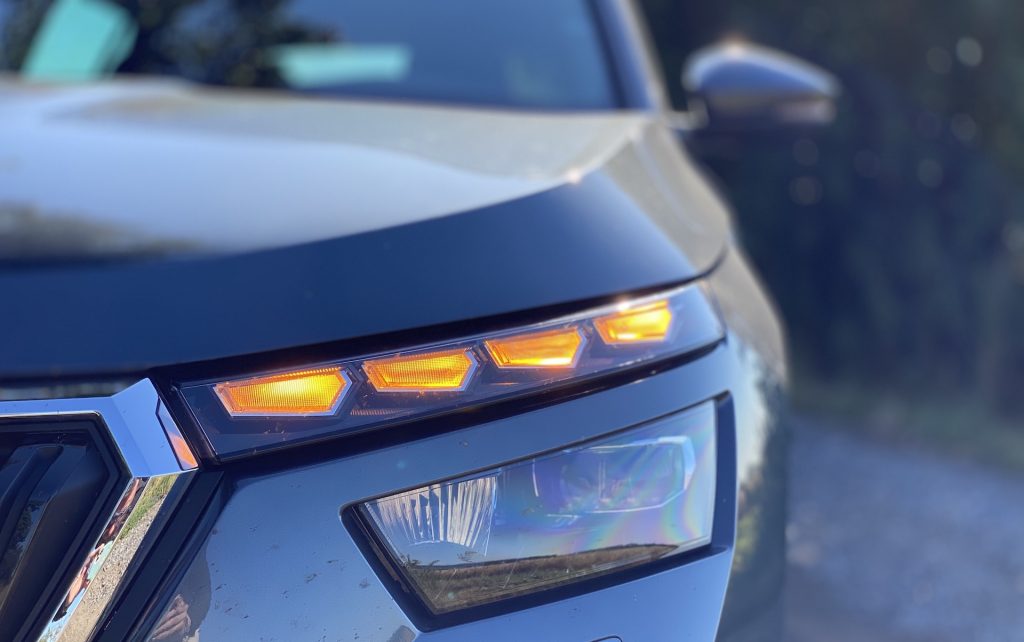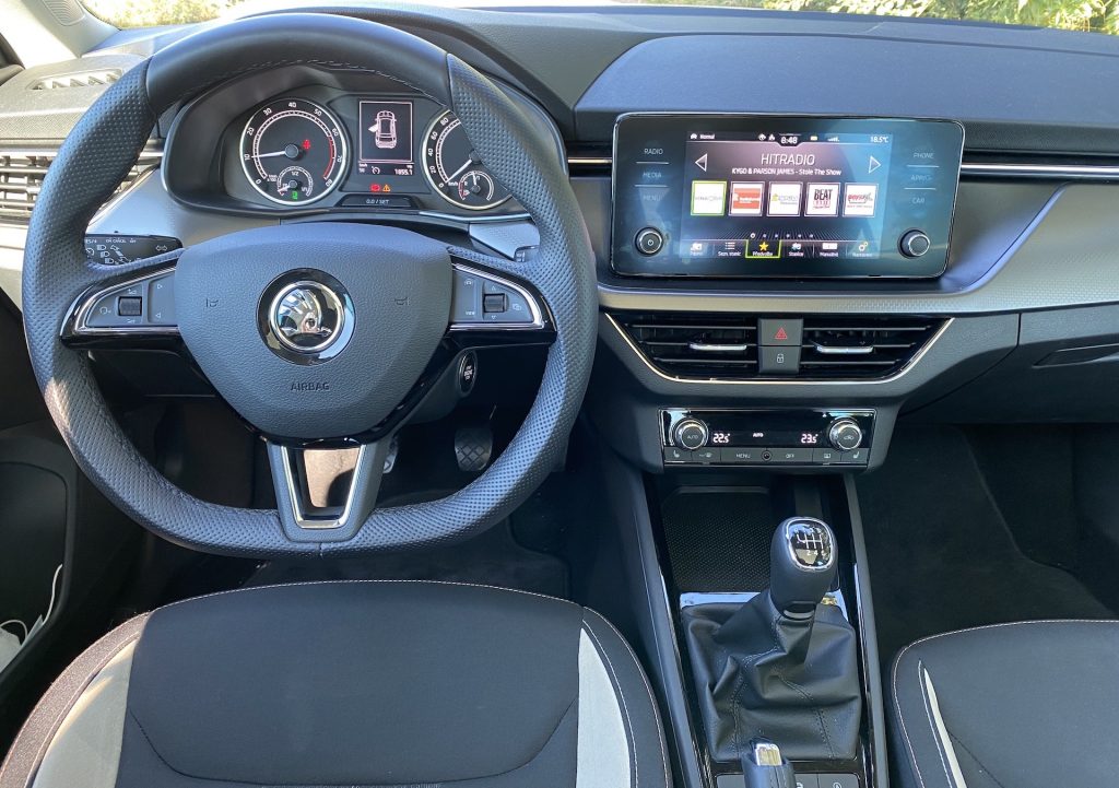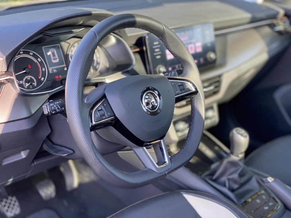 O třetí generaci Octavie, která dostala svou čtyřokou podobu po modernizaci v roce 2017, toho bylo (především v rámci negativních dojmů spojených právě s rozdělením předních světlometů) napsáno už hodně, a tak jsem si toto malé rýpnutí na úvod povídání o designu auta, které nabízí podobný prvek, prostě nemohl odpustit. Troufám si ale tvrdit, že tentokrát dané téma už není tak žhavé. Ať jsme si jen zvykli nebo se oddělené světlomety designérům z Boleslavi povedli tentokrát o dost lépe, na triko čtyřokého designu si jen tak někdo nestěžuje. A ostatně bylo už i o vzhledu nejmenšího českého SUV napsáno hodně. My konkrétně jsme dostali k dispozici provedení Style s šedou metalízou, a tak by se na první pohled mohlo zdát, že jde o nějakou šedou myš. Troufám si ale tvrdit, že to minimálně tomuto kusu vůbec neškodí. I díky kombinaci s líbivým ač poměrně výstředním designem kol v převážně černém lakování (s exkluzivním detailem v podobě hliníkových „čepiček“ ventilků s logem Škoda) náš Kamiq nevypadá vůbec špatně a rozhodně ne lacině. Celkový dojem dotváří i LED technologie osazená všude, kam se podíváš. Kamiq je mimochodem zcela prvním vozem značky (a prozatím i jediným), který nabízí dynamické (tekoucí) blinkry vpředu i vzadu. Dost možná i díky povedené kombinaci denního svícení řešeným bodovými LED diodami právě se signalizací odbočování nepůsobí „čtyřočko“ vůbec špatně. Zadní část je pak o něco uhlazenější. Celkově ale, pokud Kamiq máme definovat jako zástupce segmentu B-SUV, snad mohu lehce namítat, že spíše než plnohodnotný crossover působí jako nafouklá a jen lehce zvýšená Scala nebo první dojmem velikostně snad i jako větší Fabia. To ale není nic vyloženě výjimečného, právě tento segment poslední dobou hodně roste, a to po stránce prodejů i co se počtu zástupců týče. Stačí si připomenout třeba veleúspěšného ASX, Dusteru, Kony, Arony, S-Cross, 2008 a řady dalších. Všechna tato auta jsou spíše jen vyvýšenými deriváty zástupců nižších segmentů, jejichž hlavní devízou je vyšší posez a s ním spojený pocit bezpečí nebo dobrý rozhled.