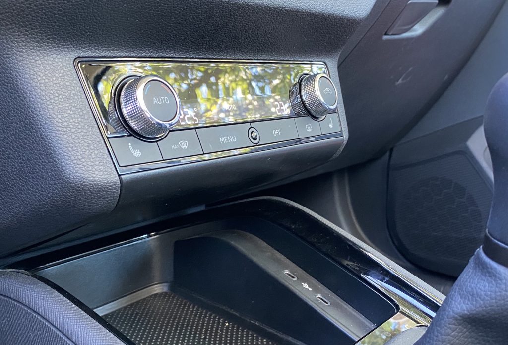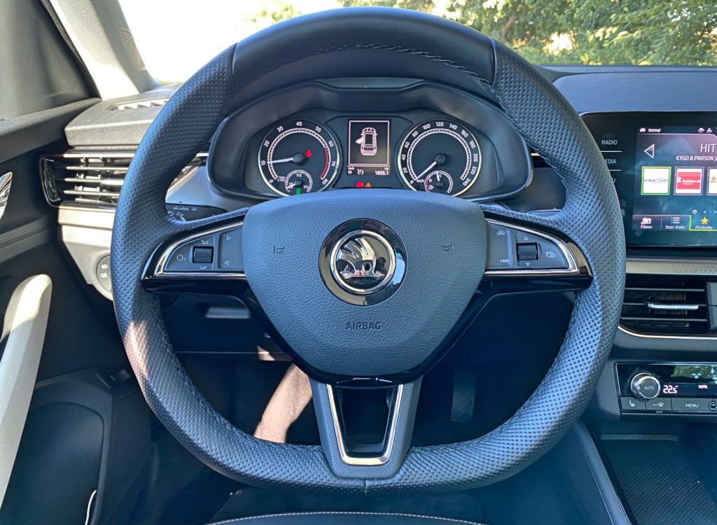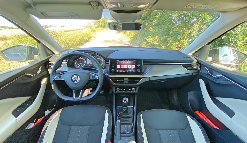 O vnitřním prostoru zástupců značky Škoda snad není potřeba se ani dlouze rozepisovat. Na druhou stranu, pokud si vzpomenu na mé dosavadní zkušenosti s novou Octavií, musím uznat, že už jde spíše o klišé. Jestli za základní a dlouhé roky standardní hodnoty škodováckých interiérů platí prostornost, funkčnost a jednoduchost, pak kromě prvního zmíněného došlo právě v případě Octavie čtvrté generace více či méně k odchýlení. Zpět ale k námi testovanému vozu, který tradiční zásady automobilky ještě stále ctí. Na své vnější rozměry je uvnitř pořád překvapivě prostorný. Co se velikosti týče, nejvíce mě překvapilo, kolik místa se nachází za mnou. Se svou spíše lehce podprůměrnou výškou (178 cm) se i po komfortním řidičském posazení za sebe v klidu posadím a umím si představit v druhé řadě i více hodin na cestě. Slabší by to samozřejmě bylo v případě plného obsazení 5 dospělými, to ale asi každý čeká. Zavazadlový prostor vyloženě přemírou objemu netrpí, i tak mu ale nelze příliš vytýkat, a to ačkoliv díky zástavbě plynové nádrže chybí prostor pod podlážkou nebo rezervní kolo. Zbytku interiéru vévodí mnou tolik opěvovaná přehlednost. Že jsem si kdysi stěžoval na absenci digitalizace a stárnoucí budíky přístrojového štítu, jejichž design se za poslední dekádu či dvě moc nezměnil, dnes si zpívám. V jednoduchosti je krása, a to platí právě tady bez diskuze. Monochromatický palubní počítač sice působí poměrně lacině, jeho ovládání prostřednictvím tlačítek na volantu je ale bezchybné. Vyhovuje mi i prostřední varianta audiosystému označovaná Bolero. 8“ dotykový displej dneska není vyloženě hitparádou, poměrně výrazný nevyužitý rámeček nelze považovat za zcela estetický a na absenci standardního USB 3.0 (pouze 2 konektorů USB-C) jsem si ještě nezvykl, za to ponechání dvou „standardních“ koleček na hlasitost a např. ladění rádia velmi hlasitě kvituji. Z moderních technologií pak potěší bezdrátová konektivita Apple CarPlay, která však v rychlosti a vybíjení baterie telefonu ještě není schopna plně nahradit zapojení přes USB. Konkrétně v našem kusu navíc chyběla bezdrátová nabíječka, což frustraci z absence standardního USB jen umocňovalo. Zcela jistě bych si za ni připlatil radši než třeba za luxusně vzhlížející, avšak reálně takřka nepoužitelnou panoramatickou (neotevíratelnou) střechu, jejíž velmi tenké zastínění nezajišťuje plnohodnotnou tepelnou izolaci. Ať ale povídání o interiéru nezakončuji negativně, pochválím ještě sedadla, která se ukázala jako příkladně komfortní. Navíc vypadají až překvapivě luxusně, a to i díky barevné kombinaci v provedení černá a světlá (béžová).