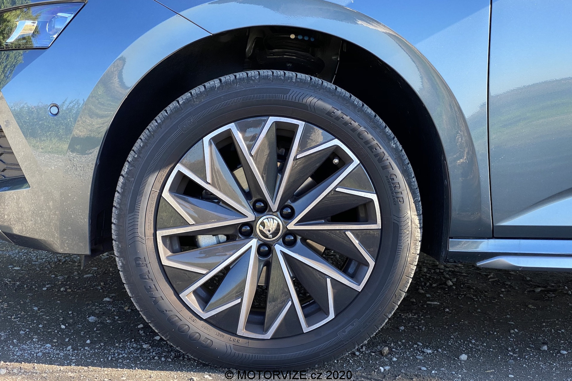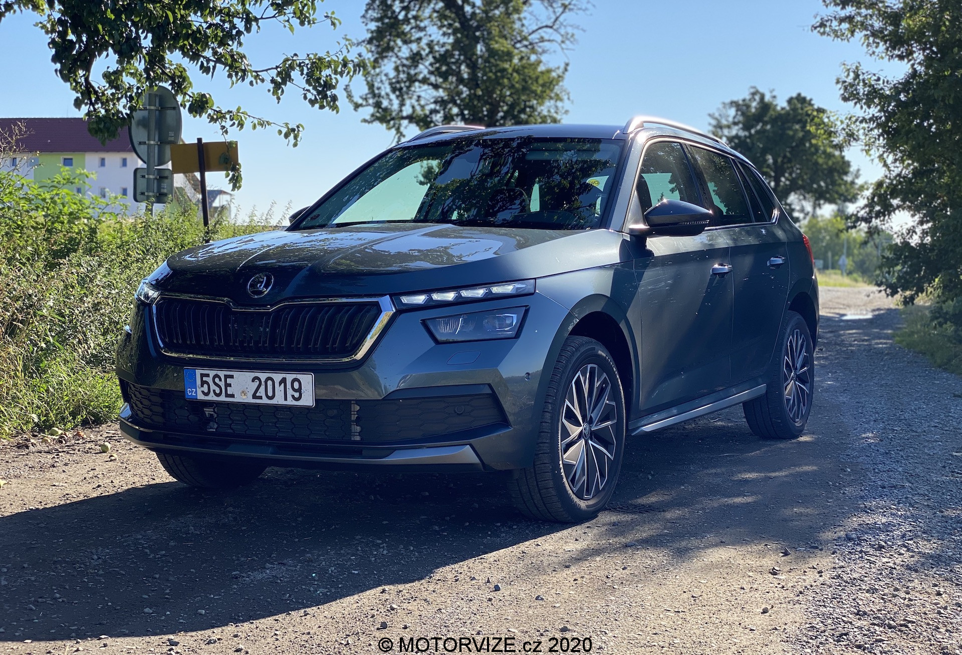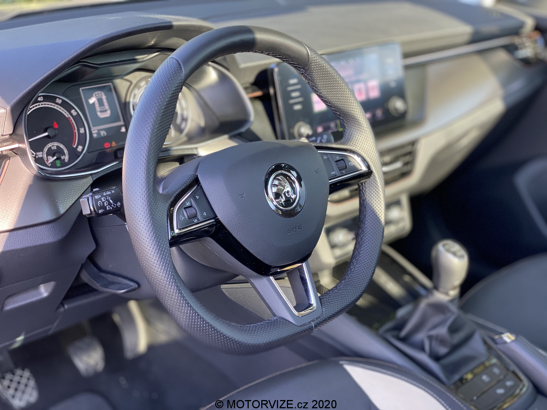 O třetí generaci Octavie, která dostala svou čtyřokou podobu po modernizaci v roce 2017, toho bylo (především v rámci negativních dojmů spojených právě s rozdělením předních světlometů) napsáno už hodně, a tak jsem si toto malé rýpnutí na úvod povídání o designu auta, které nabízí podobný prvek, prostě nemohl odpustit. Troufám si ale tvrdit, že tentokrát dané téma už není tak žhavé. Ať jsme si jen zvykli nebo se oddělené světlomety designérům z Boleslavi povedli tentokrát o dost lépe, na triko čtyřokého designu si jen tak někdo nestěžuje. A ostatně bylo už i o vzhledu nejmenšího českého SUV napsáno hodně. My konkrétně jsme dostali k dispozici provedení Style s šedou metalízou, a tak by se na první pohled mohlo zdát, že jde o nějakou šedou myš. Troufám si ale tvrdit, že to minimálně tomuto kusu vůbec neškodí. I díky kombinaci s líbivým ač poměrně výstředním designem kol v převážně černém lakování (s exkluzivním detailem v podobě hliníkových „čepiček“ ventilků s logem Škoda) náš Kamiq nevypadá vůbec špatně a rozhodně ne lacině. Celkový dojem dotváří i LED technologie osazená všude, kam se podíváš. Kamiq je mimochodem zcela prvním vozem značky (a prozatím i jediným), který nabízí dynamické (tekoucí) blinkry vpředu i vzadu. Dost možná i díky povedené kombinaci denního svícení řešeným bodovými LED diodami právě se signalizací odbočování nepůsobí „čtyřočko“ vůbec špatně. Zadní část je pak o něco uhlazenější. Celkově ale, pokud Kamiq máme definovat jako zástupce segmentu B-SUV, snad mohu lehce namítat, že spíše než plnohodnotný crossover působí jako nafouklá a jen lehce zvýšená Scala nebo první dojmem velikostně snad i jako větší Fabia. To ale není nic vyloženě výjimečného, právě tento segment poslední dobou hodně roste, a to po stránce prodejů i co se počtu zástupců týče. Stačí si připomenout třeba veleúspěšného ASX, Dusteru, Kony, Arony, S-Cross, 2008 a řady dalších. Všechna tato auta jsou spíše jen vyvýšenými deriváty zástupců nižších segmentů, jejichž hlavní devízou je vyšší posez a s ním spojený pocit bezpečí nebo dobrý rozhled.