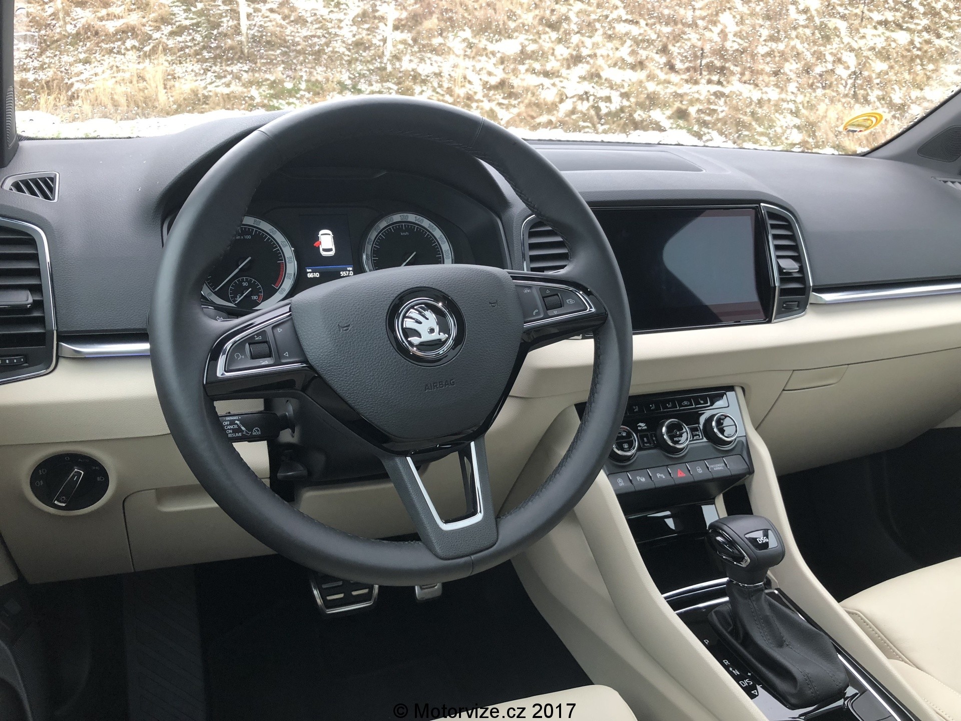 Přes počáteční výhrady k motoru jsem však po pár dnech strávených s tímto vozem přišel na to, že mupro městský i český dálniční provoz vlastně nic nechybí – motor sice žádný sportovní elánnemá, nicméně svezení je příjemné, kabina pěkně odhlučněná a absenci pohonu 4×4 mimo horské oblasti prakticky nepoznáte. Pro auto na každodenní provoz má dle mého tento vůz daleko užitečnější funkce – udržování jízdního pruhu v kombinaci s adaptivním tempomatem a hlavně automatickou převodovkou DSG znamená, že při popojíždění v koloně s klidem vyřídíte e-maily, protože auto to odřídí téměř samo. Na rozdíl od manuálu dokáže i úplně zastavit, pokud ale není rozjezd okamžitý, je potřeba pro opětovné rozjetí zmáčknout plynový pedál.
