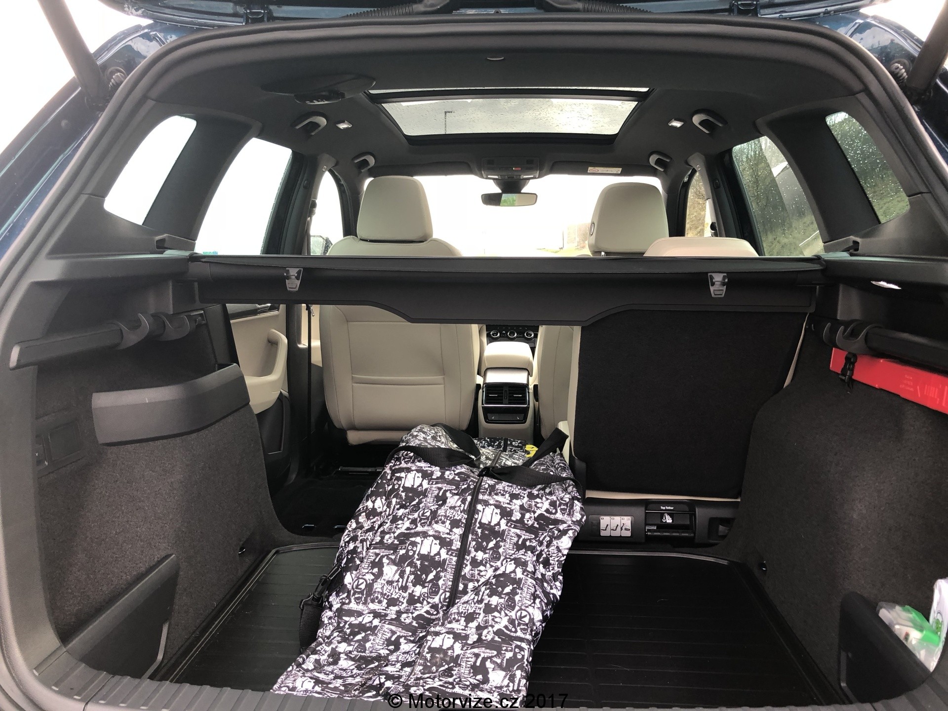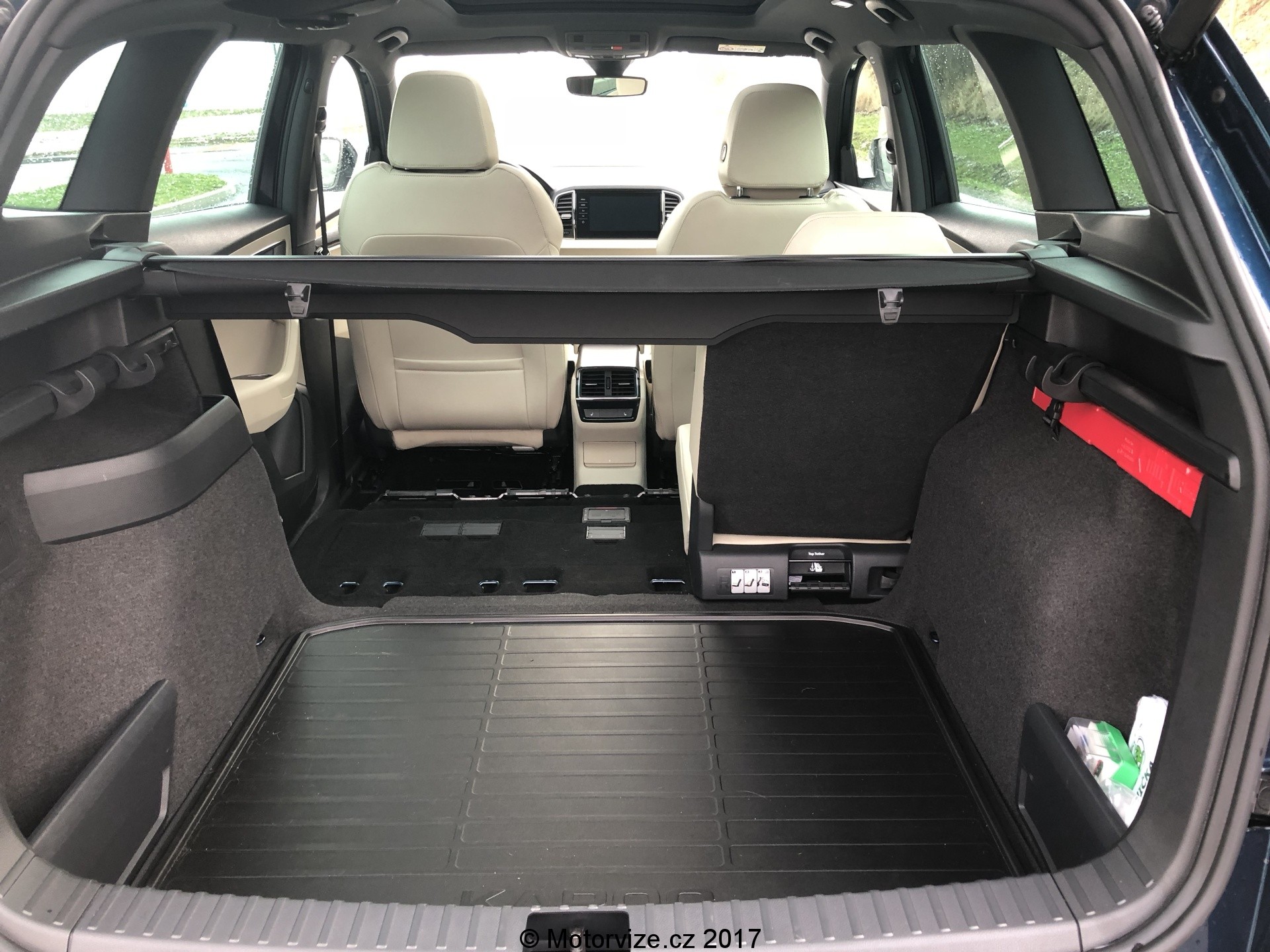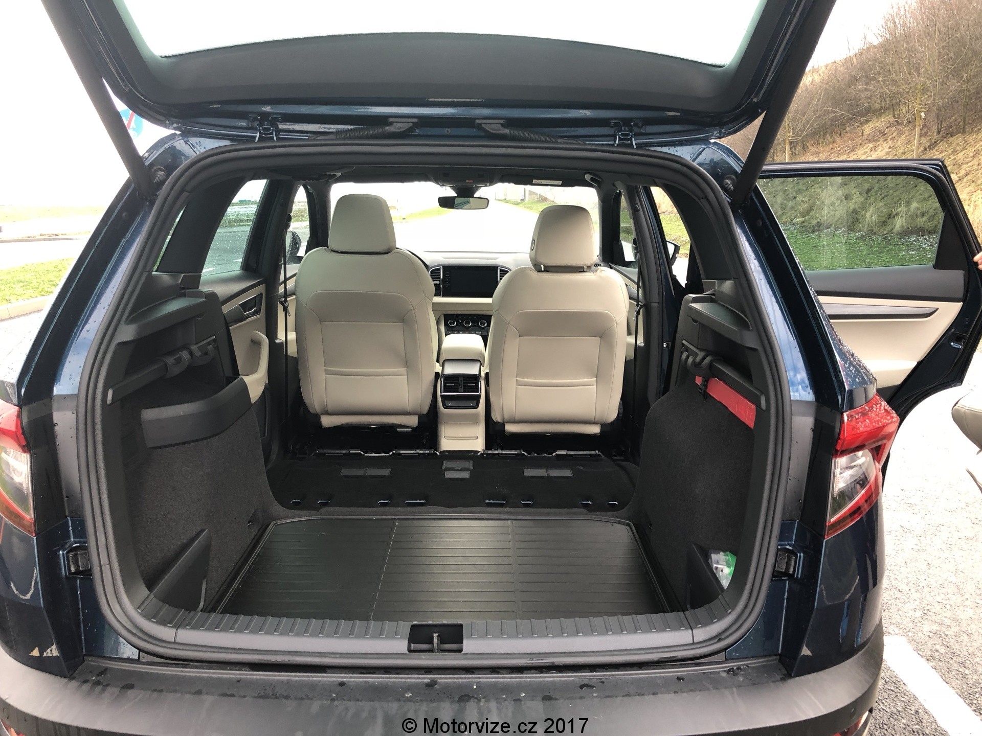 Zavazadelník je znatelně větší než u Yetiho a zachoval si i praktické háčky a síťky k ukotvení volně pohybujících se předmětů. Objednat lze i oboustranné víko kufru v kombinaci látka/plast pro převoz špinavých předmětů. V kufru je 12V zásuvka, o odnímatelných zadních sedadlech jsem se již zmiňoval, za zmínku stojí také, že mohou být i vyhřívaná a sytém je vymyšlený tak, že jejich odstraňování nezpůsobuje žádné komplikace. Celkově jsou sedadla lehká a jejich vyjmutí i zpětná instalace je otázka minuty. Dveře zavazadelníku lze mít také elektricky ovládané spolu s “virtuálním pedálem”, tedy otevíráním po mávnutí nohou pod nárazníkem. Zde má Karoq plusové body, fungovalo to opravdu bezchybně. Oproti některým koncernovým vozům je pak i kamera na pátých dveřích ostřikovaná, což je velmi praktické.