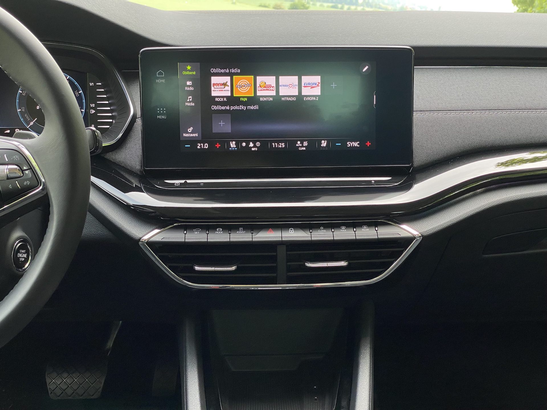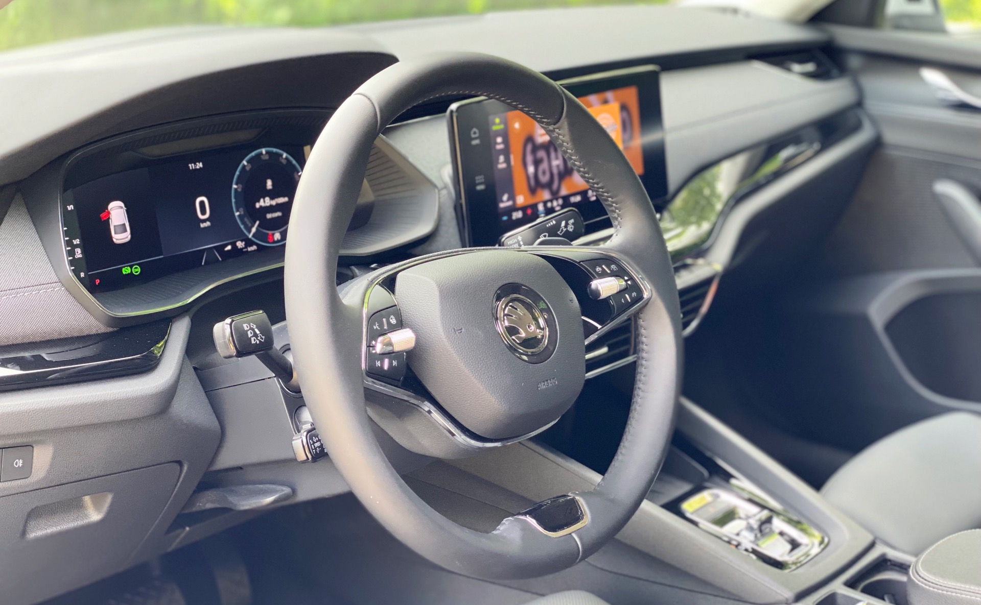 A moderna pokračuje i po nasednutí. Na první pohled zaujme nový, dvouramenný volant, digitální kaplička přístrojů a také „obrovský“ středový displej. Nová Octavia bude pro mnohé i uvnitř příjemným překvapením. Vše je na svém místě a poměrně rychle se rozkoukávám po základních funkcích. I přes třetí společné svezení ale stále nemám zažité pokročilejší ovládání. Především nastavování různých možností kapličky přístrojů před řidičem bych nenazval intuitivním. Zvyknout se dá na všechno, ale většinou je tohle zvykání rychlejší a vše bych čekal o něco intuitivnější. Samozřejmě, že po delší době za volantem si asi jednotlivé postupy majitel osvojí, konkurence mi přijde ale intuitivnější, a to jsem už měl možnost v Octaviích nějáký čas strávit. Pokud bych mohl ještě něco trochu zkritizovat, byly by to použité materiály na středovém tunelu a ve výplních dveří. Octavia už není „levným“ autem a ceny lehce atakují částky okolo 900 000 Kč. Právě z toho důvodu mě tvrdé, levné plasty nepotěší, byť jejich zpracování považuji za příkladné a žádné pazvuky nepozoruji. Jen je jejich využití „škoda“, úmyslně s malým „š“, protože sedadla, volant i palubní deska jsou o dvě třídy výš tak, jak si cenovka žádá. Jako celek je interiér pěkný, čistý, moderní a především prostorný. Osobně přestávám chápat význam Superba, protože ta trocha místa navíc podle mého názoru již není potřeba. Nová Octavia nabízí hodně prostoru ve srovnání s konkurencí a naprostý dostatek pro reálné využití. Karoserie kombi je ještě o kousek lepší především na zadních sedadlech, ale to může být jen pocit. Ať tak, či onak stísněností v této české modle nikdo trpět nebude.