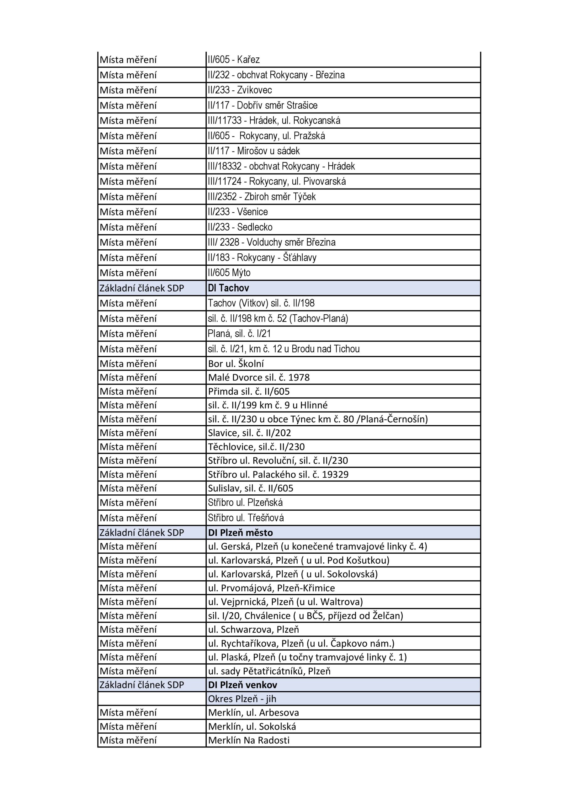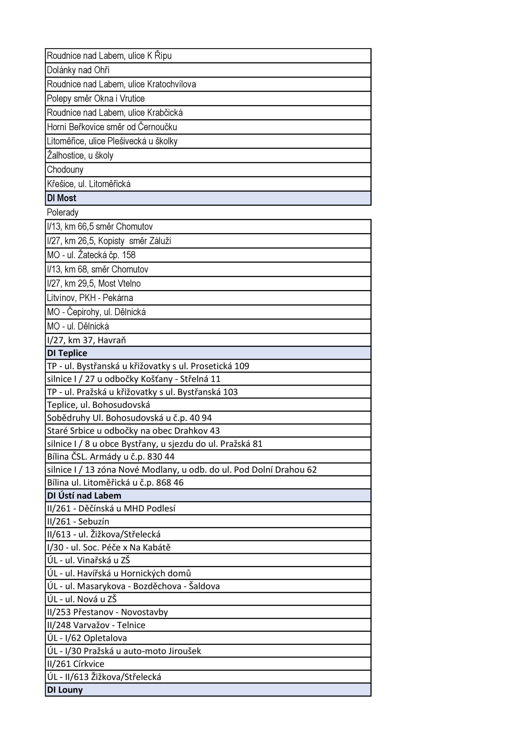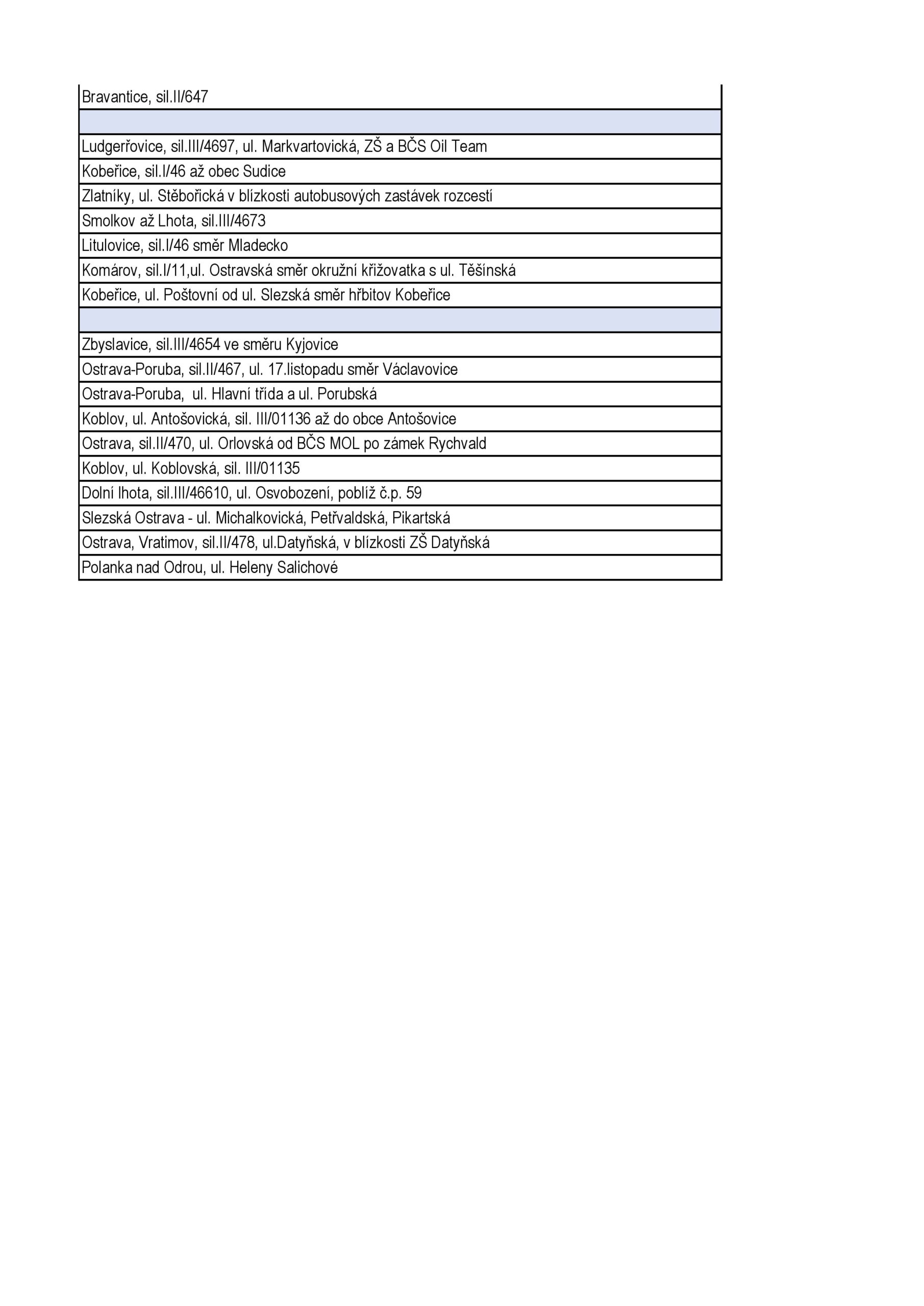 - lokality, na které dlouhodobě upozorňují místní obyvatelé