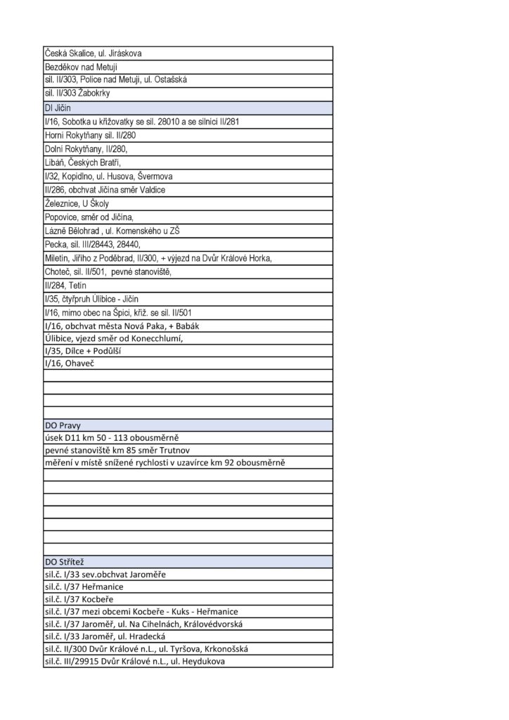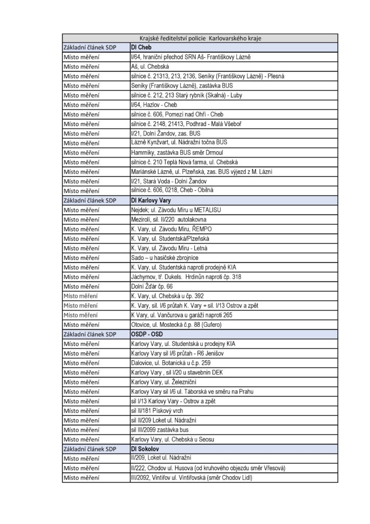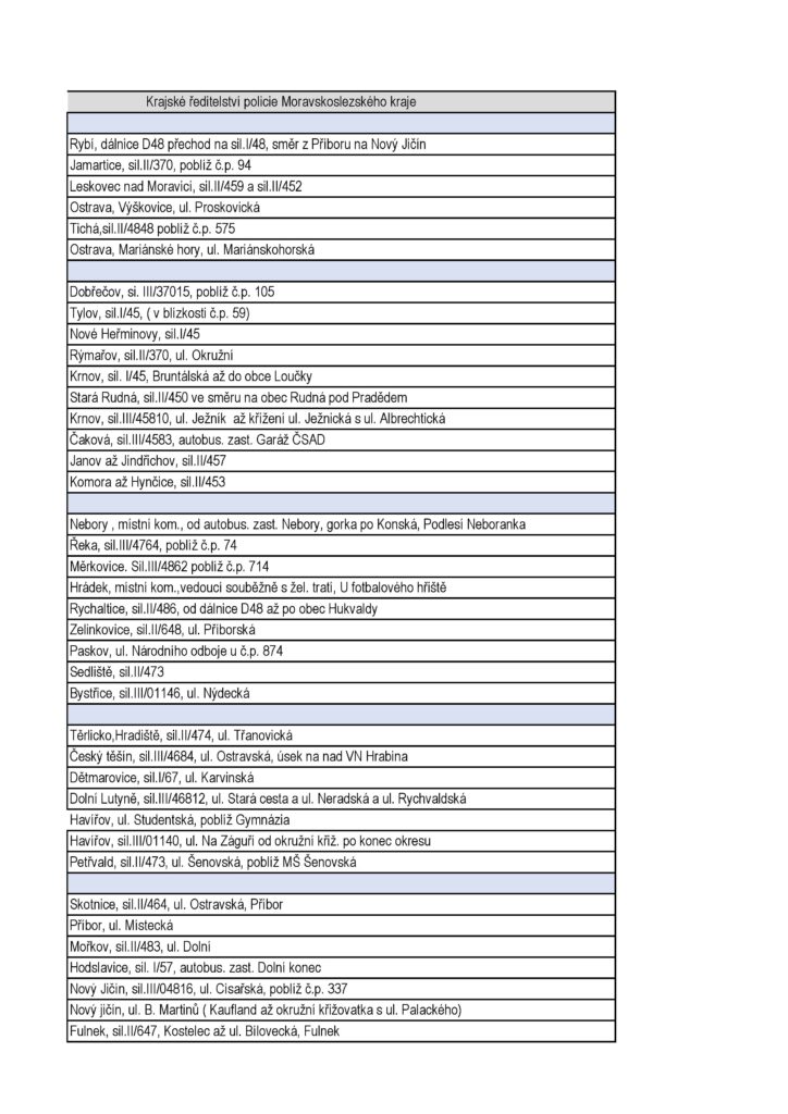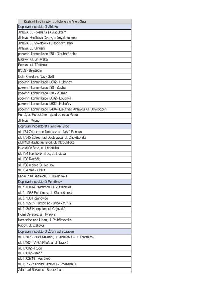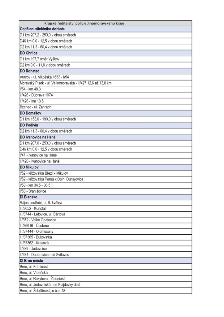 Z oficiálních podkladů je patrné, že letošní Speed Marathon pokrývá prakticky všechny typy rizikových úseků. Nejde jen o „klasická“ místa, kde by kontrolu čekal každý, ale i o lokality, které mohou řidiče nepříjemně překvapit.