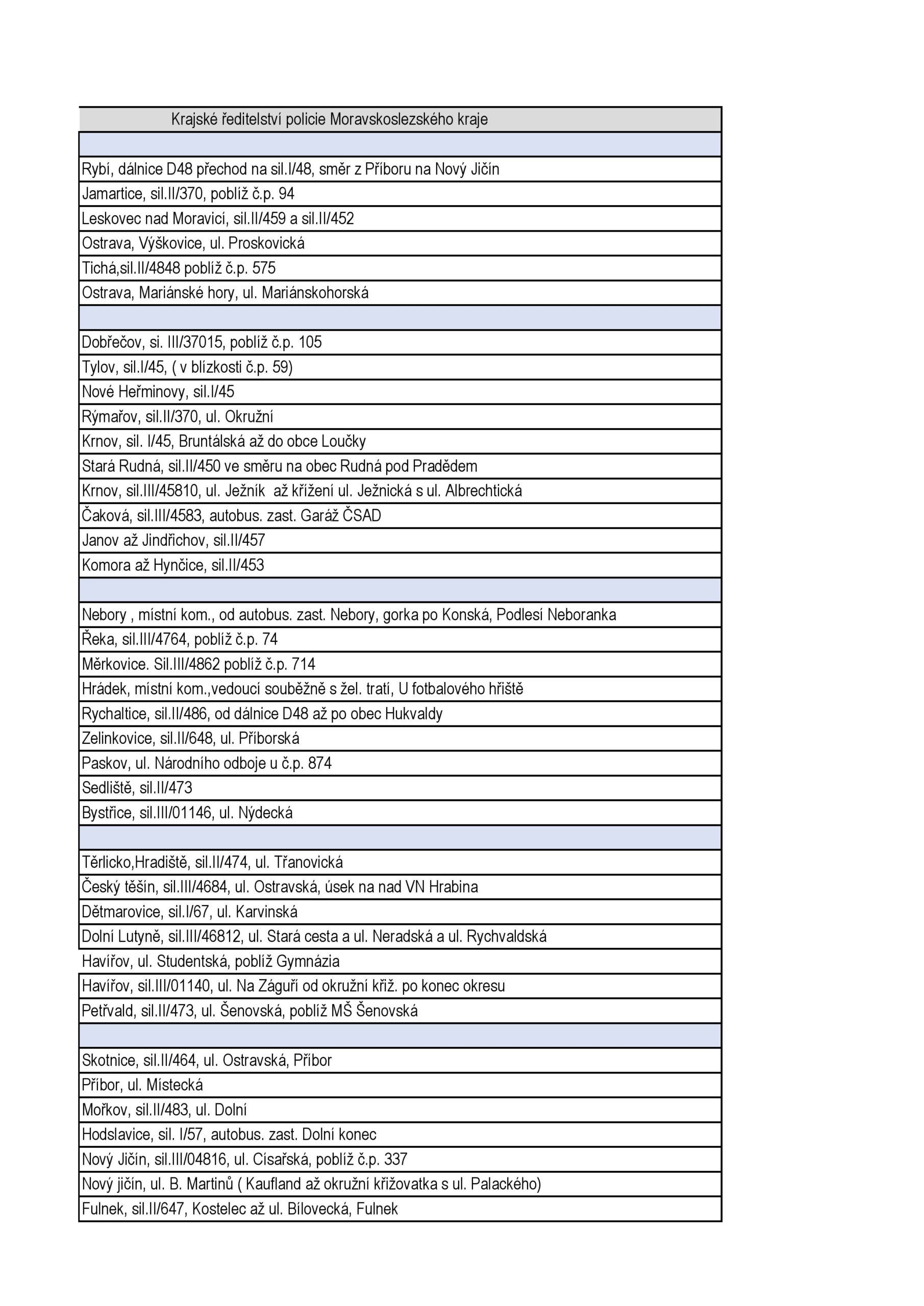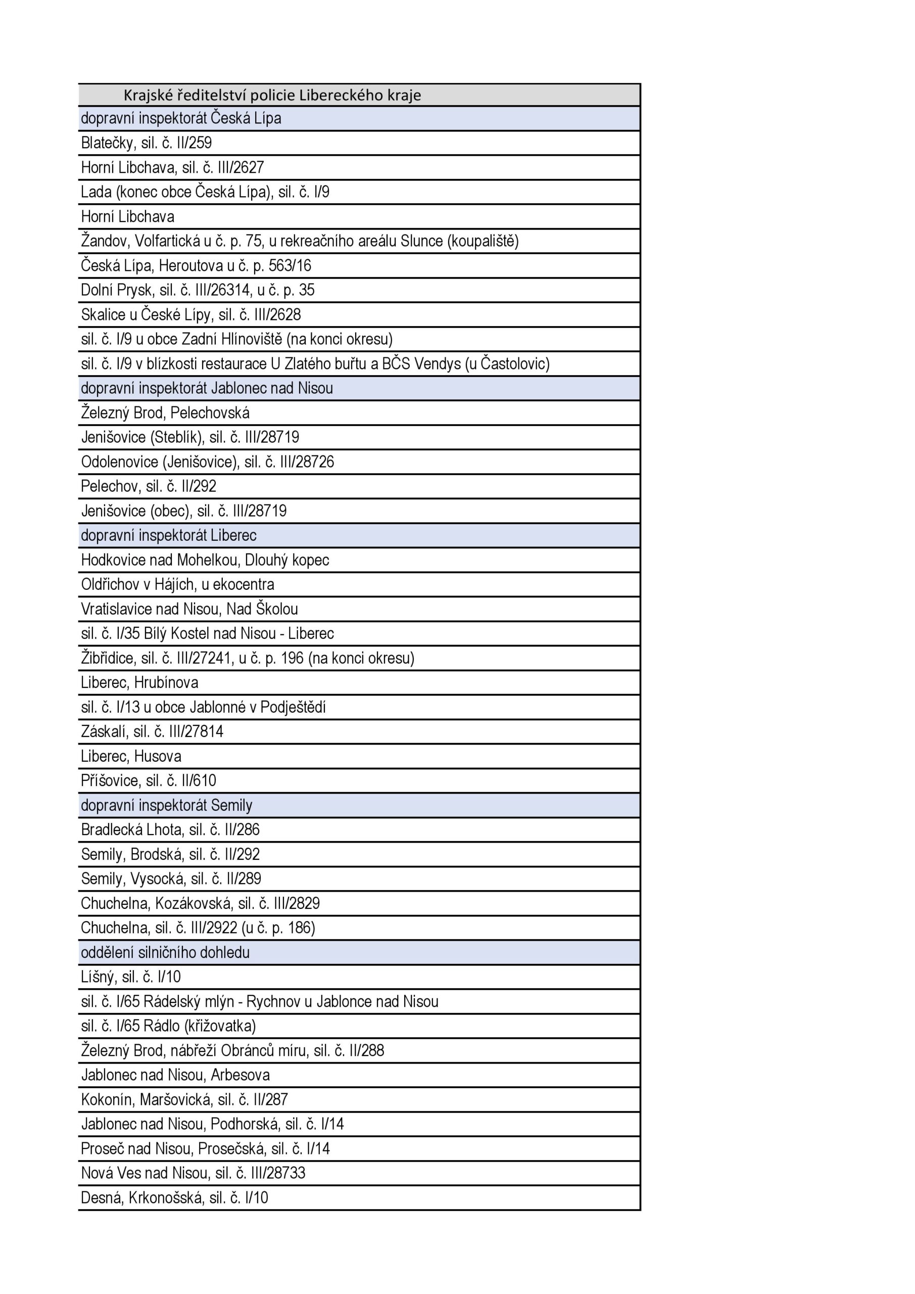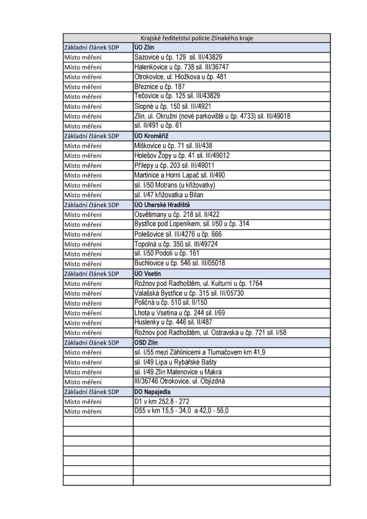 Z oficiálních podkladů je patrné, že letošní Speed Marathon pokrývá prakticky všechny typy rizikových úseků. Nejde jen o „klasická“ místa, kde by kontrolu čekal každý, ale i o lokality, které mohou řidiče nepříjemně překvapit.
