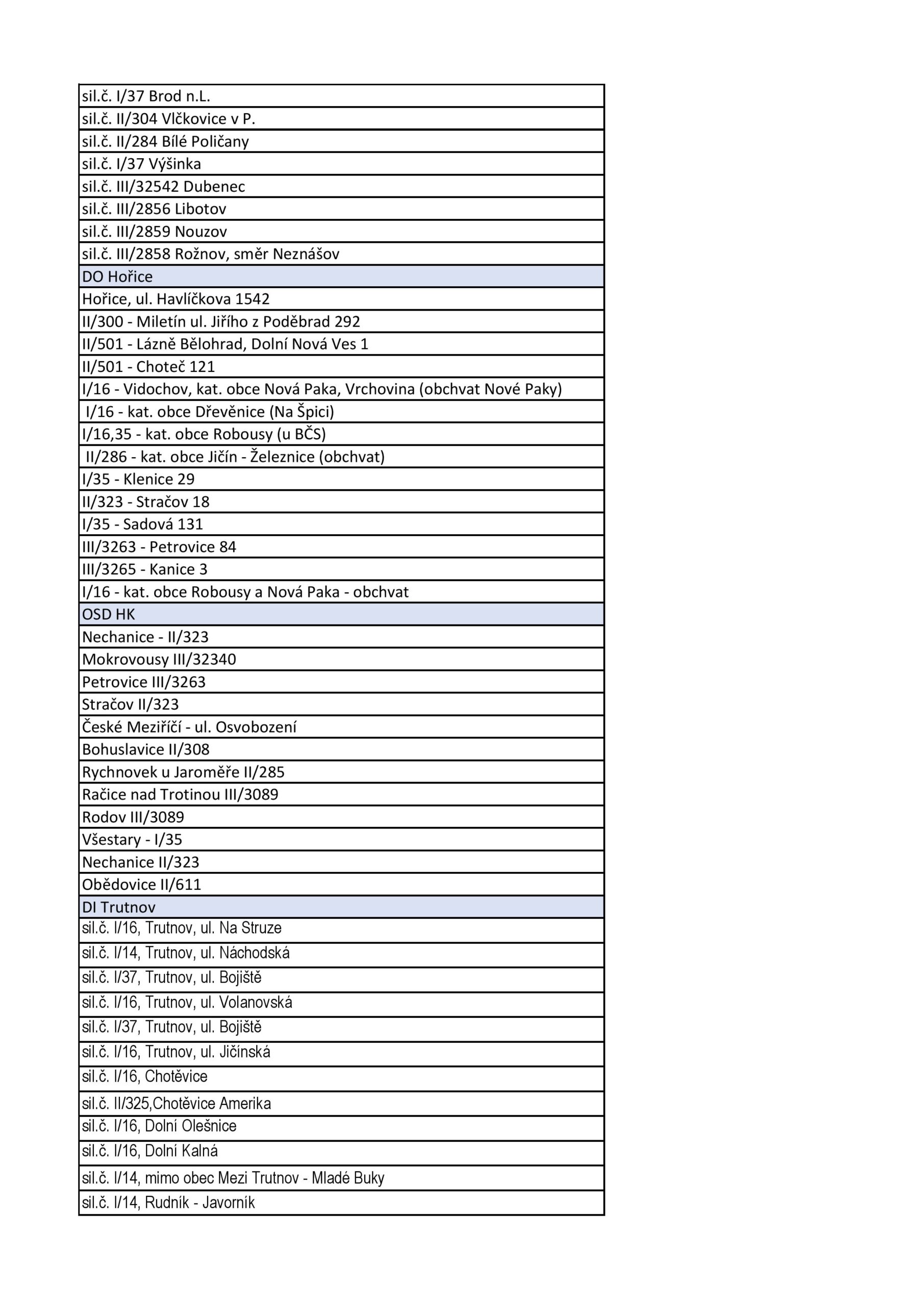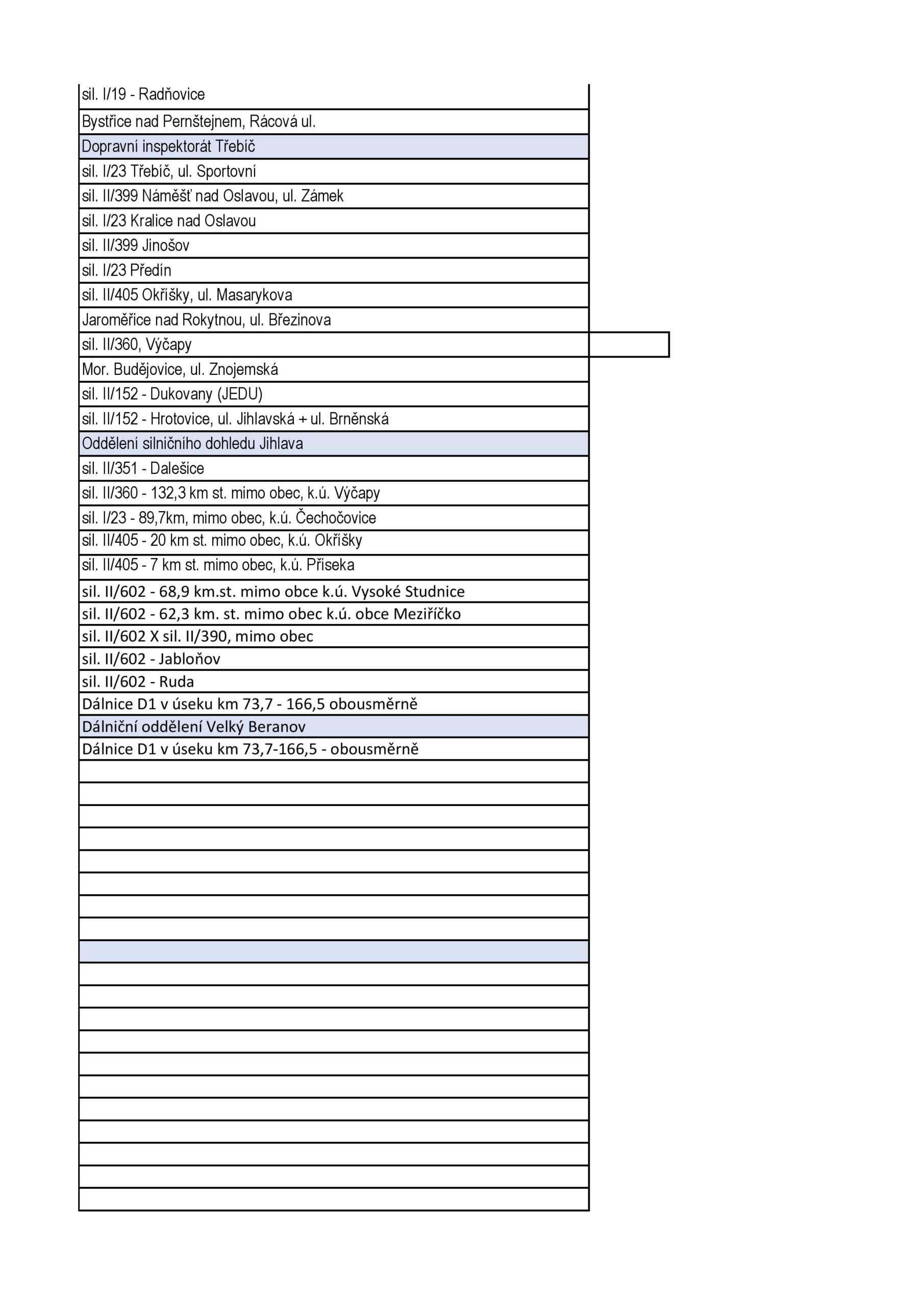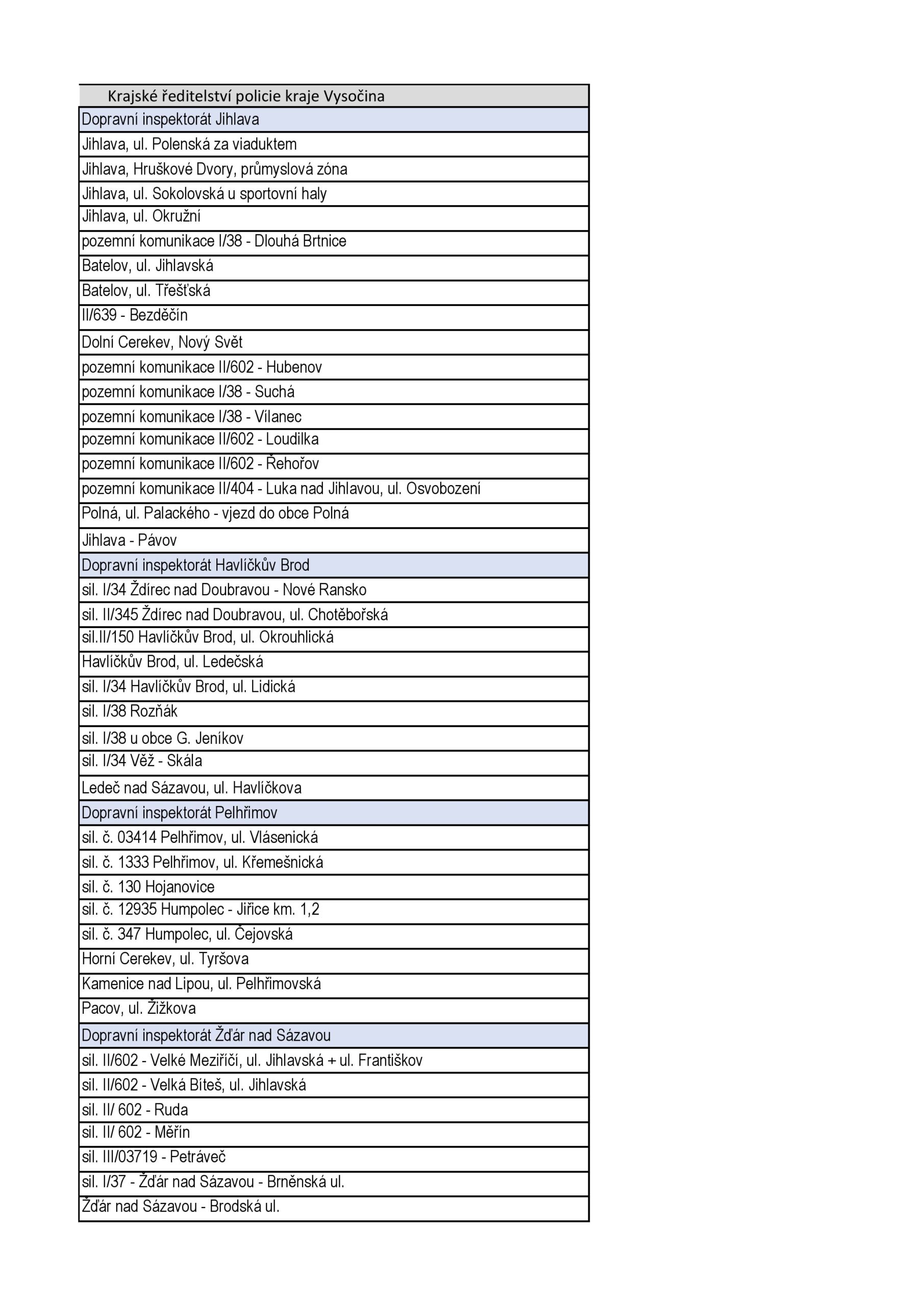 - místa s historií dopravních nehod