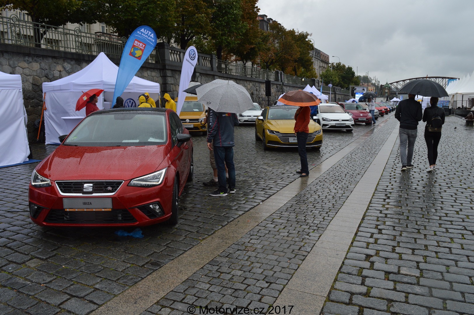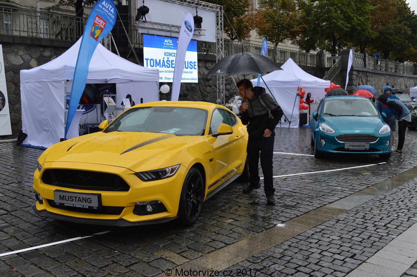 Autor: Jakub Kameníček · Fotografie: Jakub KameníčekJak asi tušíte z nadpisu, nikdo s tím nepočítal, nikdo se na to netěšil, ale bohužel (či bohudík) byla akce z minulého týdne provázena sychravým, uplakaným počasím. Nicméně my jsme tak či tak plánovali událost navštívit a také se tak stalo. Akce se rozprostírala na dvou březích Vltavy: z jedné strany podél Rašínova nábřeží a z té druhé v blízkosti toho Hořejšího. Kromě prohlídky aut od 21 vystavovatelů, od Fiatu, přes Audi až k Tesle (eon.cz), zde byl také poměrně bohatý kulturní program po celé čtyři dny, během kterých akce probíhala. K vidění zde byli například umělci Vladimír 518, Tomáš Klus, Dan Bárta či hudebníci ze skupiny Monkey Business. Fotbaloví fandové by si dnes, v tento deštivý pátek přišli taky na své, jelikož se v 1 hodinu odpoledne konala na východním břehu Náplavky autogramiáda sportovců z u nás věhlasného fotbalového klubu AC Sparta Praha.