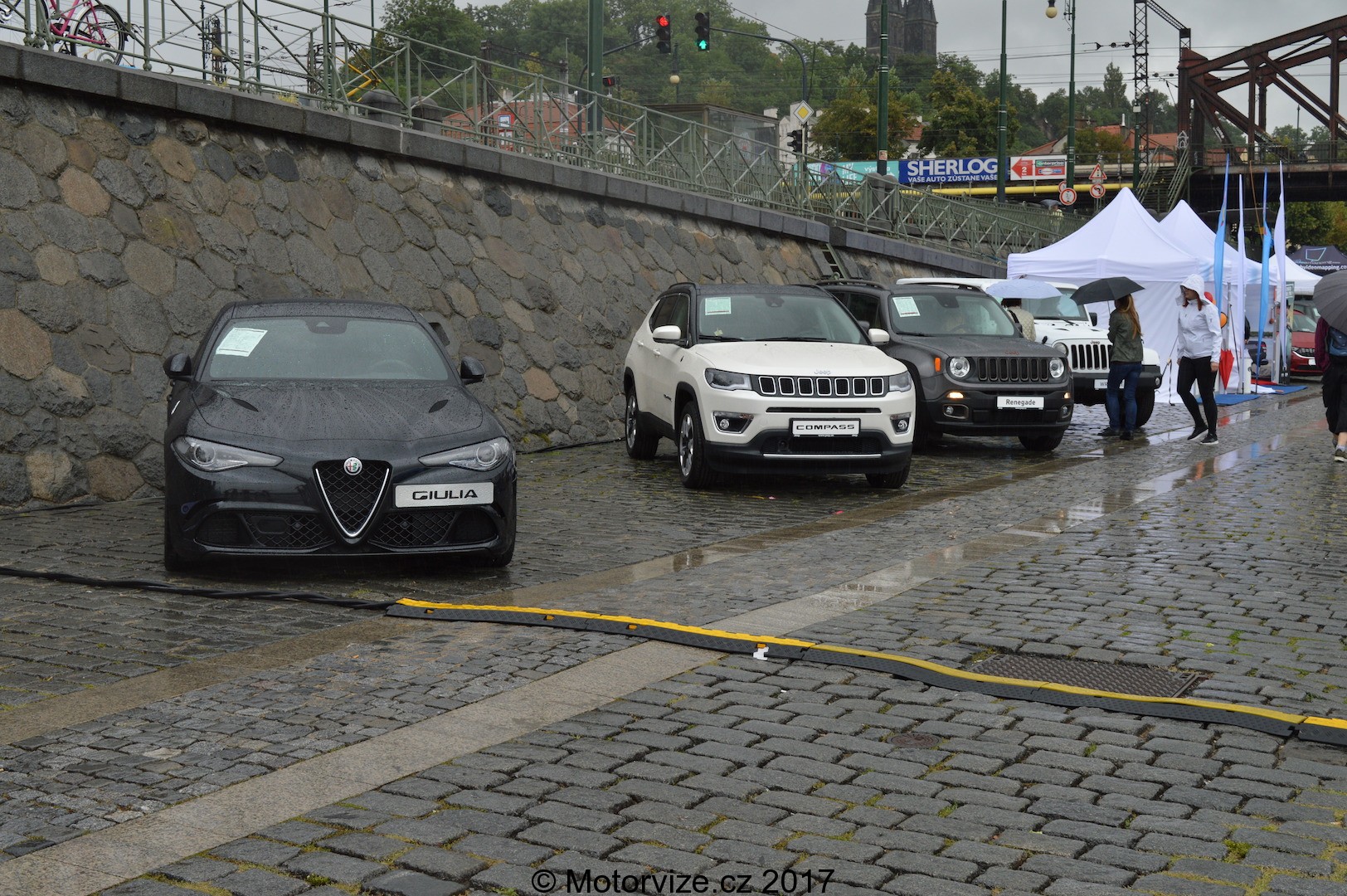 Dále, neméně zajímavě, jak se bližíme k Železničnímu mostu, vídáme staré „známé“ i ty relativně stále nové tváře od značek Dacia, Opel či auta z koncernu FCA: Jeep, Fiat, Alfa Romeo, se svými esy v rukávu- modelem Giulia Quadrifoglio a nyní ještě více aktuální AR Stelvio – SUV, které se za volantem vůbec tak netváří (jako SUV), a které bych mile rád někdy třeba otestoval i na vlastní kůži…