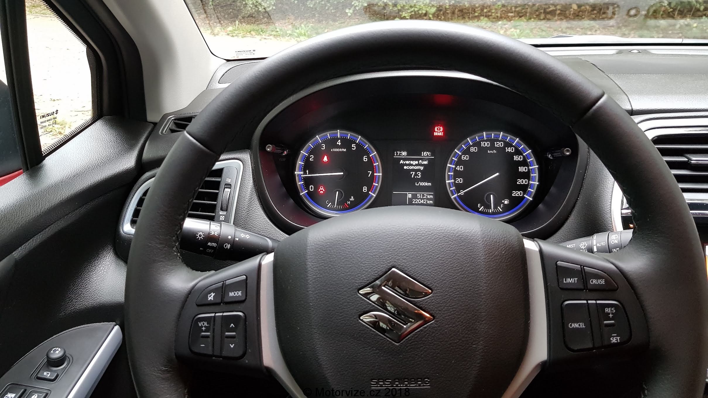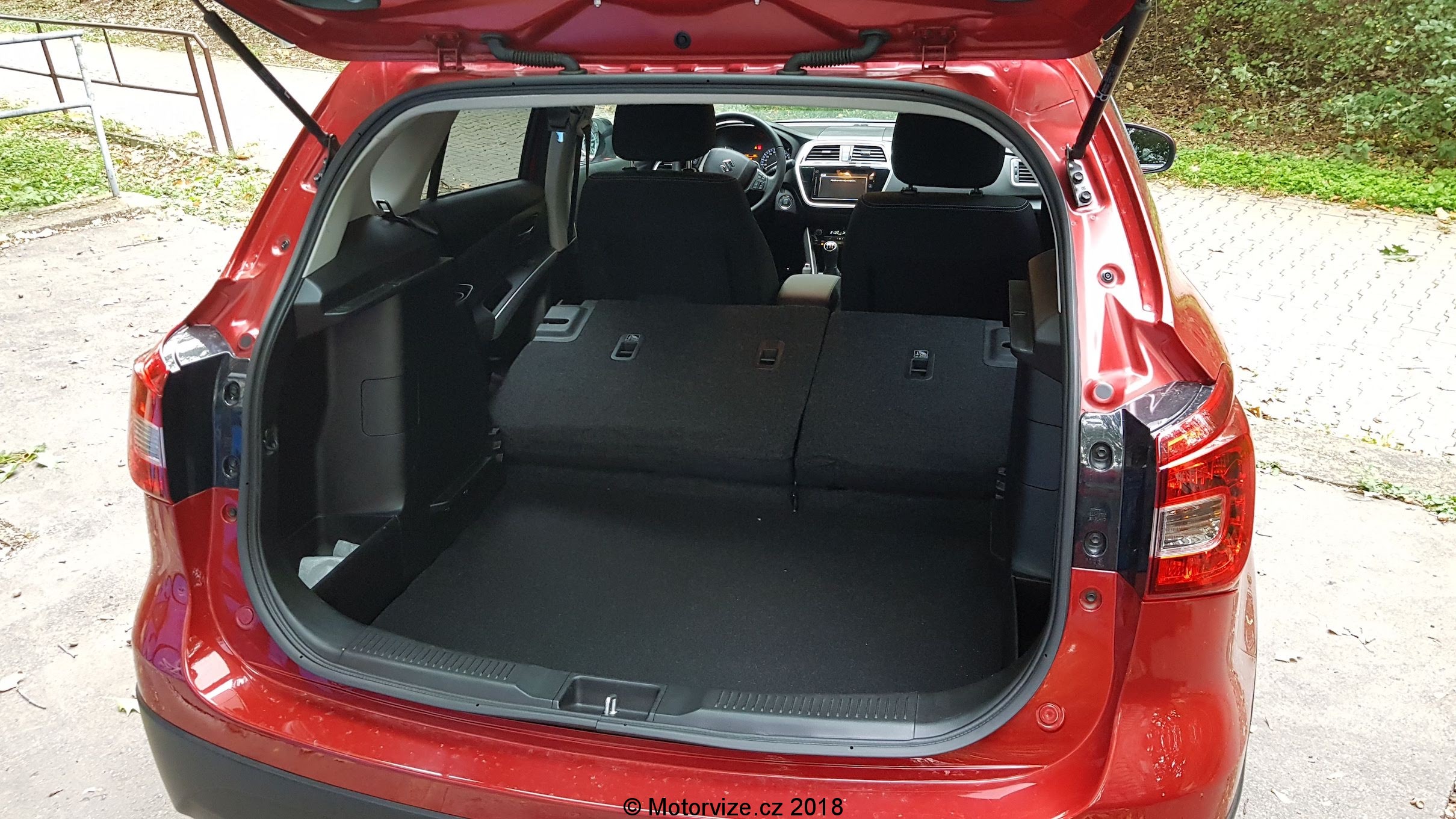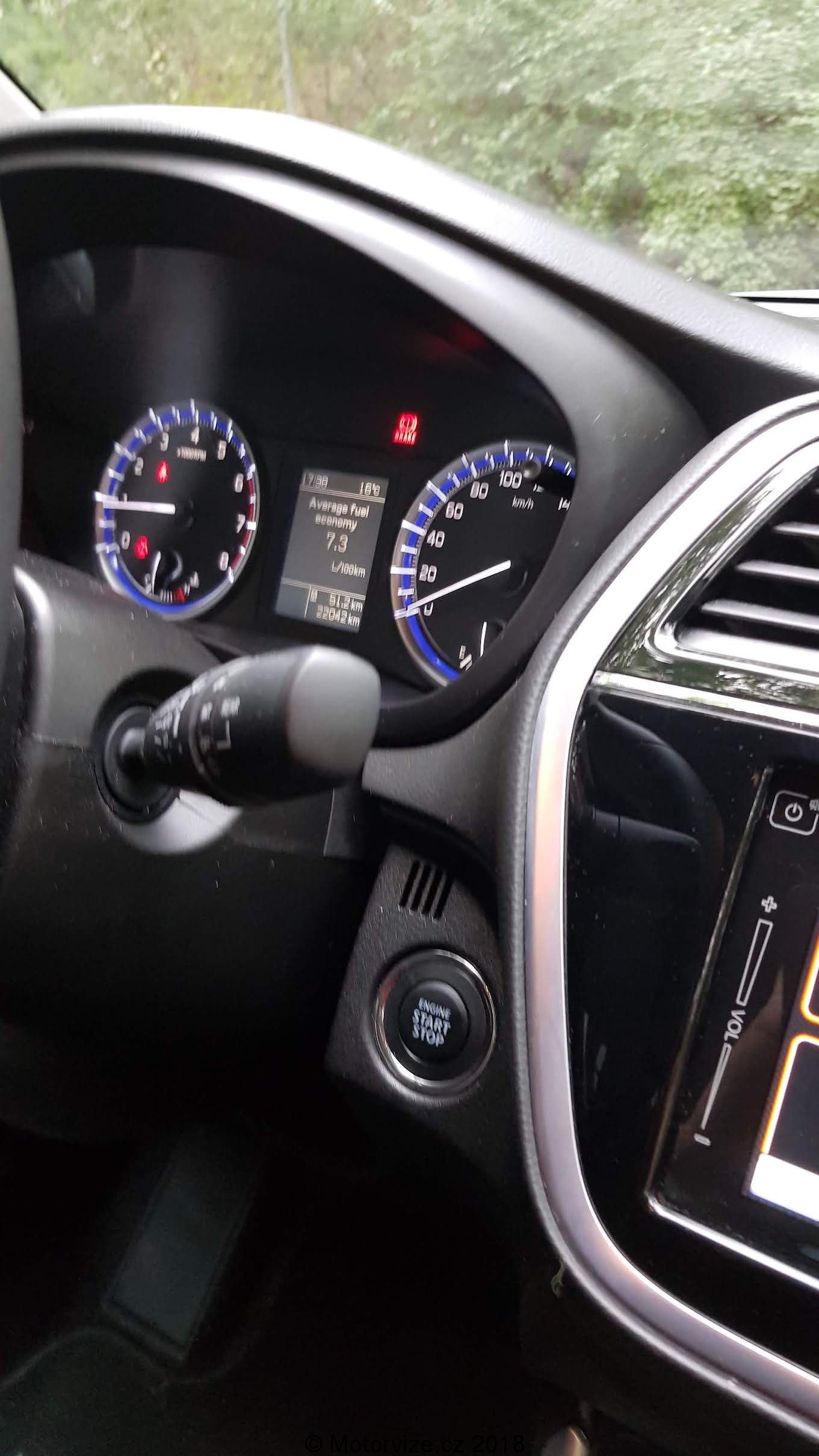 Interiér S-crossu nepatří mezi ty nejmodernější, plasty působí levnějším dojmem, ale zpracování je na vysoké úrovni a nechybí zde nic, co je dnes standardem. Začnu ale od sedadel. Ta jsou výše umístěna a v základním provedení jsou na můj vkus příliš měkká, nedokážu si v nich představit třeba 4 hodiny na dlouhé cestě. I když podle všeho příplatková sedadla vypadají lépe. Ani boční vedení není nijak výrazné hlavně to na sedákách. Toto „tak malé“ SUV naopak oplývá skvěle využitým prostorem v interiéru. Všude je dostatek místa, na kolena, na ramena, a to jak vpředu, tak vzadu. Možná by si zasloužil drobné zvětšení podélný prostor pro zadní cestující a nebylo by zde absolutně co vytknout. Popravdě tak dobře vyřešený vnitřní prostor jsem nečekal. Na nedostatek si nemůže stěžovat ani zavazadlový prostor, který má dvojitou podlahu. Má v základu 430 litrů a po sklopení zadních sedadel se zvětší na 875 litrů, ve kterých se dá převézt již ledasco. S-cross je vybaven výdobytky moderních techologií, takže zde nechybí veliký dotykový displej ve středu interiéru, jež lze jednoduše vypnout. U suzuki jsou si vědomi toho, že v době chytrých telefonů a rychlého mobilního internetu je relativně zbytečné dávat do nových aut vestavěnou navigaci, a že pro mnoho uživatelů je lepší mít ve voze možnost zrceadlení obrazovky svého telefonu ať už přes Apple car nebo Android Auto právě na středový displej. Na základní obrazovce informačního systému jsou tak 4 velká „tlačítka“ pro rádio, multimédia, telefonování a připojení smartfonu. Jak prosté a úžasné. Jen reakce na dotyk by mohli u systému být svižnější. Vedle displeje jsou umístěna ovládací dotyková tlačítka a posuvník na hlasitost audia. Ten jsem popravdě viděl poprvé a jeho funkce se mi líbila, protože jsem nemusel při potřebě změny hlasitosti několikrát ťuknout plus či mínus, ale jen jsem přejel nahoru či dolu a hlasitost se změnila. Nicméně až potom jsem si všiml, že se hlasitost dá ovládat i tlačítky na levé straně volantu. Vlastně celkově musím pochválit ergonomii ovládacích prvků, Suzuki vsadila na velká plnohodnotná tlačítka a mechanické ovladače. Možná jen u palubního počítače je takové netypické. Ovládá se pomocí „tyčinek“ v přístrojové desce za volantem. To je asi v pořádku pro řidiče, který si vybere jeden údaj a nemá potřebu jej měnit. Já jsem hračička, co si stále potřebuje překlikávat mezi aktuálními údaji auta, takže spokojen být nemohu. Zakladní audiosystém bych hodnotil jako podprůměrný, při vyšší hlasitosti se ozývají pazvuky, reproduktory různě rezonují. Co naopak fungovalo perfektně, bylo ovládání telefonu hlasem. V naší malé české kotlině se moc nestává, že by ovládání hlasem fungovalo v češtině i s diakritikou tak pěkně. Stačí zmáčknout tlačítko na spodní straně volantu, vyslovit povel třeba „zavolat Honza Novotný“, vybrané číslo se zobrazí na informačním displeji a hlas vyzve k potvrzení a pak už jen sám volá. Překvapení na mé straně.
