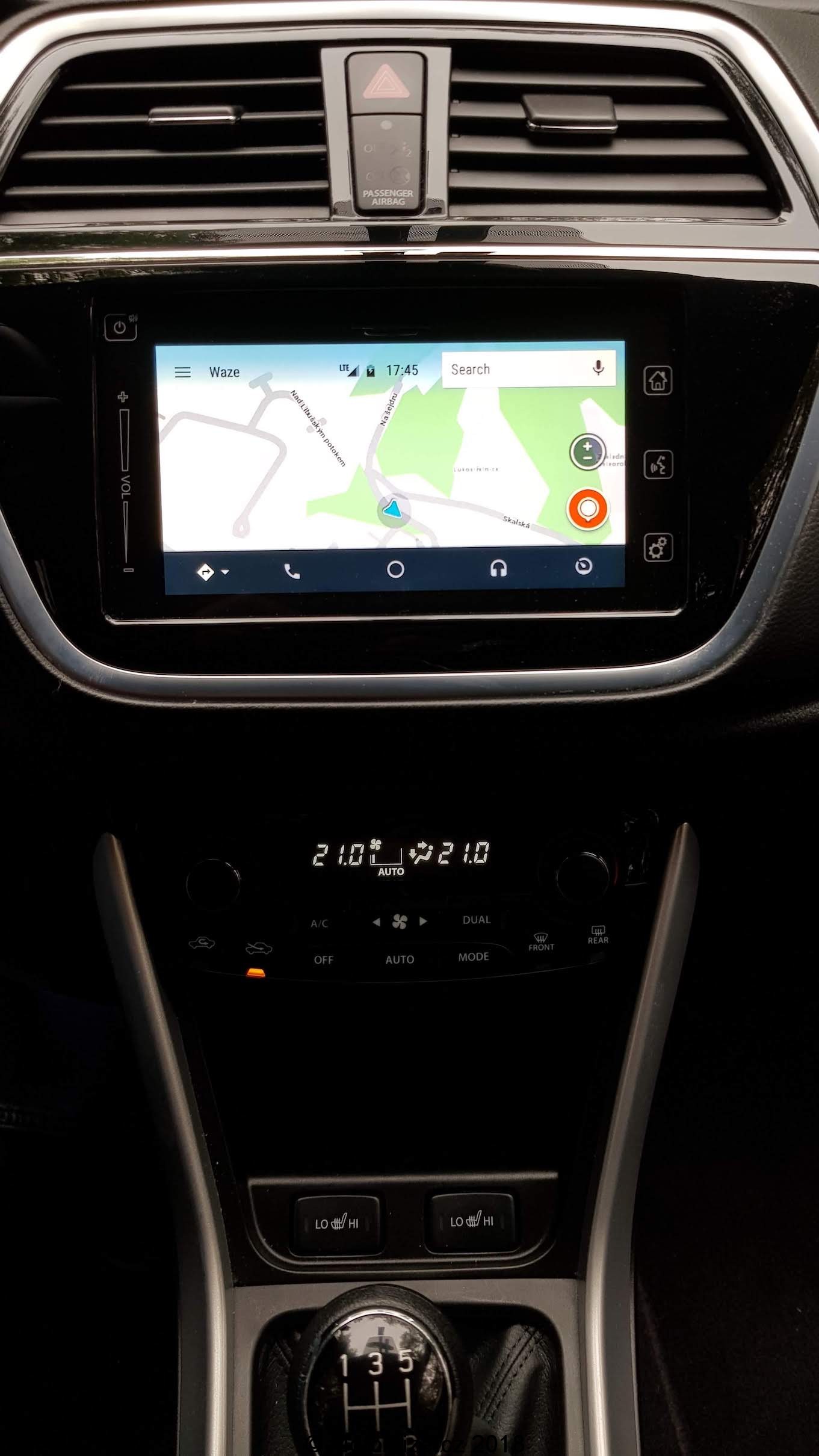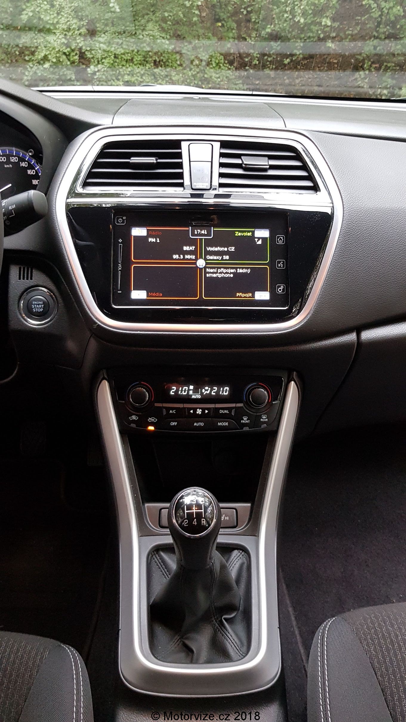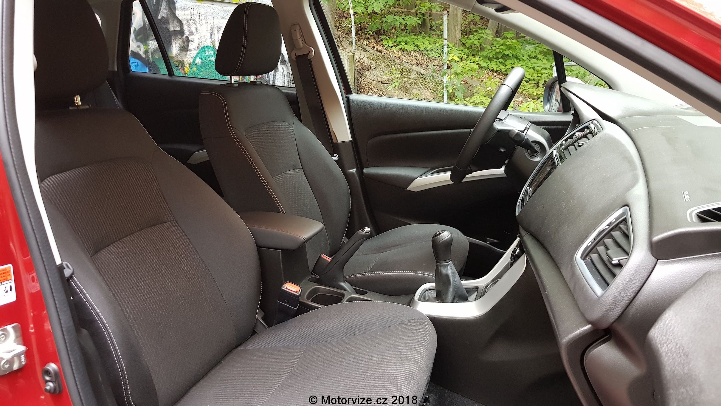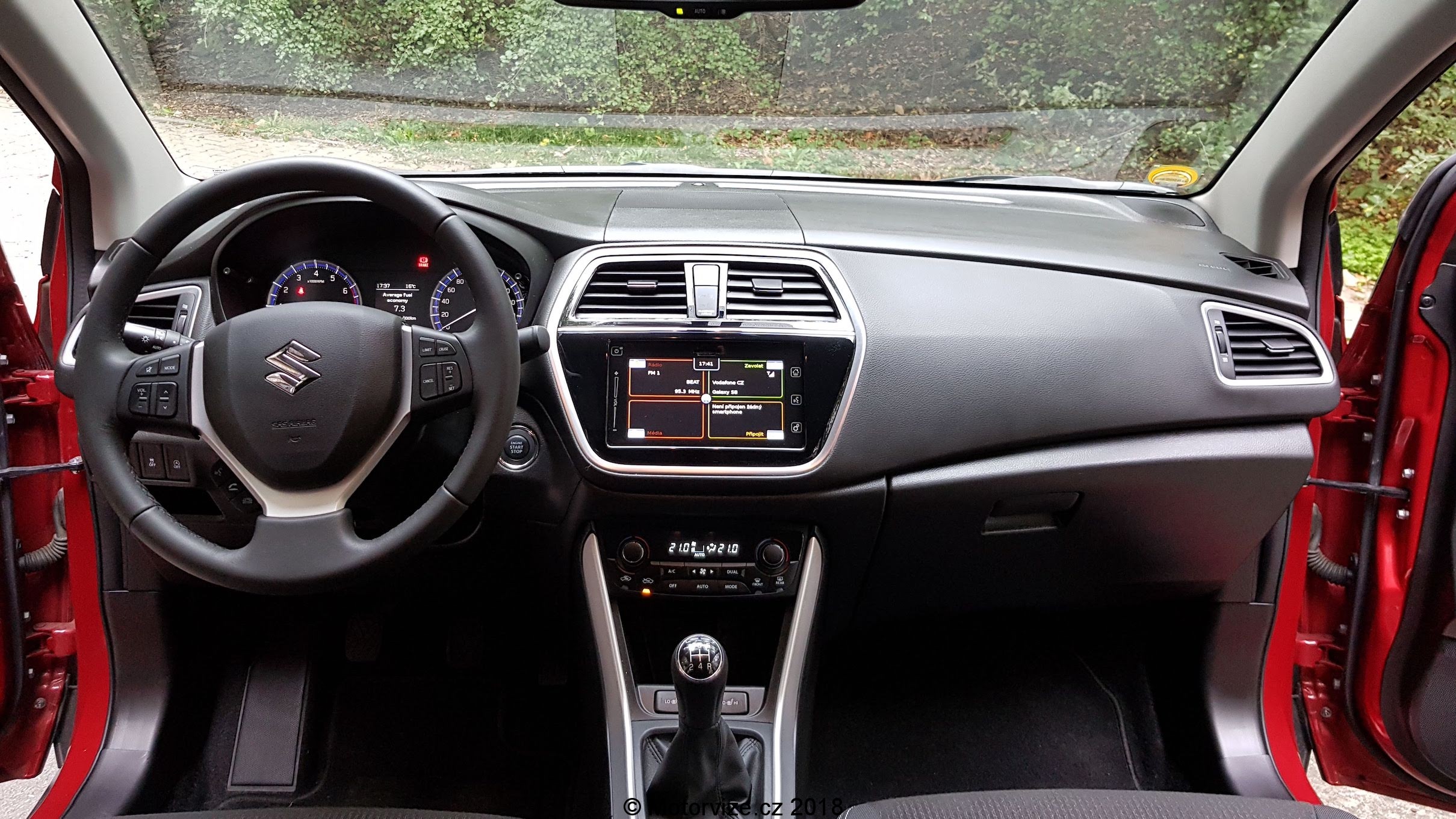 Interiér S-crossu nepatří mezi ty nejmodernější, plasty působí levnějším dojmem, ale zpracování je na vysoké úrovni a nechybí zde nic, co je dnes standardem. Začnu ale od sedadel. Ta jsou výše umístěna a v základním provedení jsou na můj vkus příliš měkká, nedokážu si v nich představit třeba 4 hodiny na dlouhé cestě. I když podle všeho příplatková sedadla vypadají lépe. Ani boční vedení není nijak výrazné hlavně to na sedákách. Toto „tak malé“ SUV naopak oplývá skvěle využitým prostorem v interiéru. Všude je dostatek místa, na kolena, na ramena, a to jak vpředu, tak vzadu. Možná by si zasloužil drobné zvětšení podélný prostor pro zadní cestující a nebylo by zde absolutně co vytknout. Popravdě tak dobře vyřešený vnitřní prostor jsem nečekal. Na nedostatek si nemůže stěžovat ani zavazadlový prostor, který má dvojitou podlahu. Má v základu 430 litrů a po sklopení zadních sedadel se zvětší na 875 litrů, ve kterých se dá převézt již ledasco. S-cross je vybaven výdobytky moderních techologií, takže zde nechybí veliký dotykový displej ve středu interiéru, jež lze jednoduše vypnout. U suzuki jsou si vědomi toho, že v době chytrých telefonů a rychlého mobilního internetu je relativně zbytečné dávat do nových aut vestavěnou navigaci, a že pro mnoho uživatelů je lepší mít ve voze možnost zrceadlení obrazovky svého telefonu ať už přes Apple car nebo Android Auto právě na středový displej. Na základní obrazovce informačního systému jsou tak 4 velká „tlačítka“ pro rádio, multimédia, telefonování a připojení smartfonu. Jak prosté a úžasné. Jen reakce na dotyk by mohli u systému být svižnější. Vedle displeje jsou umístěna ovládací dotyková tlačítka a posuvník na hlasitost audia. Ten jsem popravdě viděl poprvé a jeho funkce se mi líbila, protože jsem nemusel při potřebě změny hlasitosti několikrát ťuknout plus či mínus, ale jen jsem přejel nahoru či dolu a hlasitost se změnila. Nicméně až potom jsem si všiml, že se hlasitost dá ovládat i tlačítky na levé straně volantu. Vlastně celkově musím pochválit ergonomii ovládacích prvků, Suzuki vsadila na velká plnohodnotná tlačítka a mechanické ovladače. Možná jen u palubního počítače je takové netypické. Ovládá se pomocí „tyčinek“ v přístrojové desce za volantem. To je asi v pořádku pro řidiče, který si vybere jeden údaj a nemá potřebu jej měnit. Já jsem hračička, co si stále potřebuje překlikávat mezi aktuálními údaji auta, takže spokojen být nemohu. Zakladní audiosystém bych hodnotil jako podprůměrný, při vyšší hlasitosti se ozývají pazvuky, reproduktory různě rezonují. Co naopak fungovalo perfektně, bylo ovládání telefonu hlasem. V naší malé české kotlině se moc nestává, že by ovládání hlasem fungovalo v češtině i s diakritikou tak pěkně. Stačí zmáčknout tlačítko na spodní straně volantu, vyslovit povel třeba „zavolat Honza Novotný“, vybrané číslo se zobrazí na informačním displeji a hlas vyzve k potvrzení a pak už jen sám volá. Překvapení na mé straně.