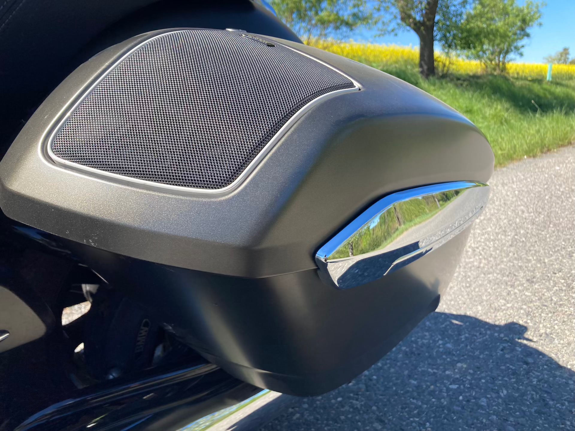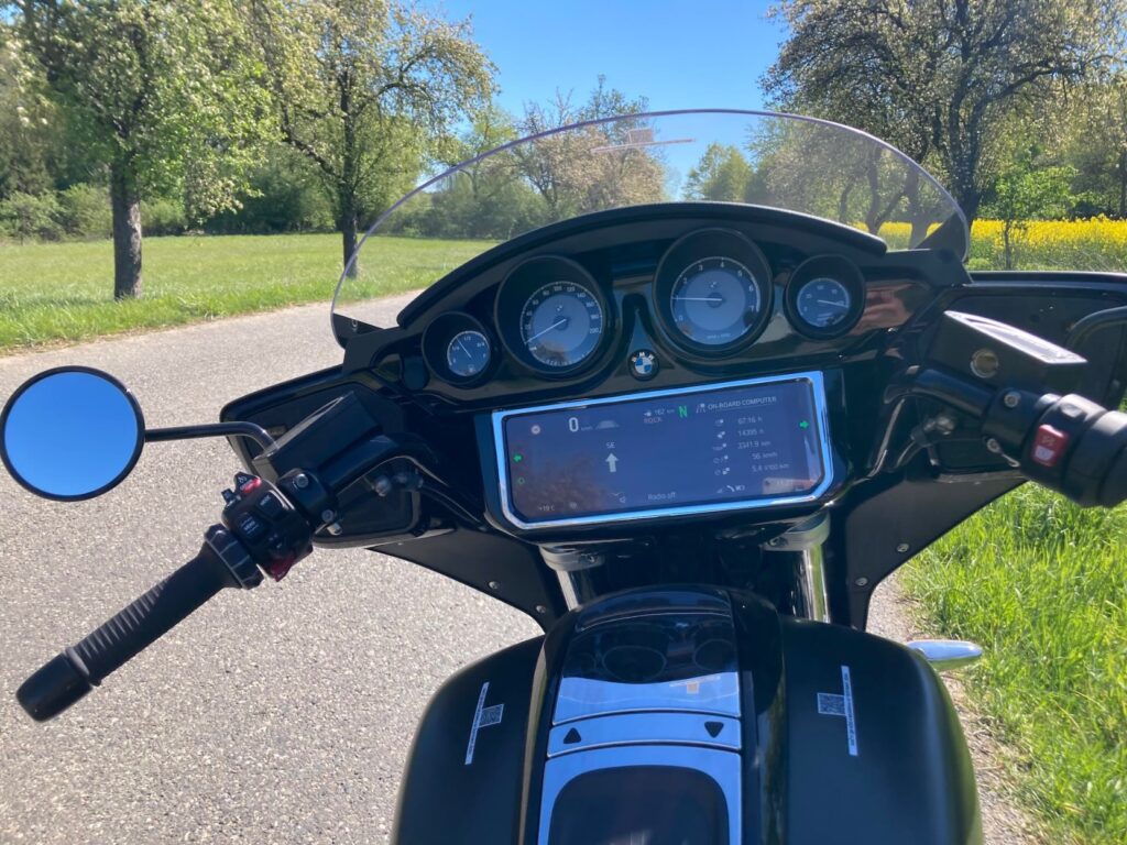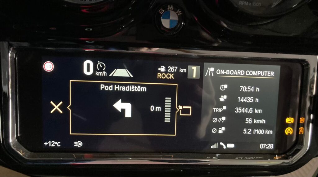 Už jsem zmínil displej, ten je opravdu obří. Barevných 10,25 palce s technologií TFT. Displej nabízí velmi dobrou grafiku, dobře čitelné informace a kompletní přehled o všech hlavních parametrech motorky. Samozřejmostí je konektivita s telefonem a hlavně, přes telefon si můžete pouštět hudbu přímo do nádherných, hlasitých repráků od marshallu. Plus samozřejmě můžete zobrazit navigaci, veškeré jízdní údaje, nebo jen profilový obrázek, což je v jemných odstínech hnědé vyvedený profil Big Boxera. Vychytávka je i přímo na nádrži umístěná schránka na telefon s možností nabíjení. Všechno to funguje perfektně, ale stejně budete většinu času koukat na staré dobré analogové budíky v horní části “kokpitu”. Specialitkou je ukazatel rezervy výkonu. I když to není ten nejvýkonnější motor, krouťák je naprosto úžasný a na maximální využití výkonu se dostanete snad jen při předjíždění. Pozorovat ukazatel je ale skvělá zábava.