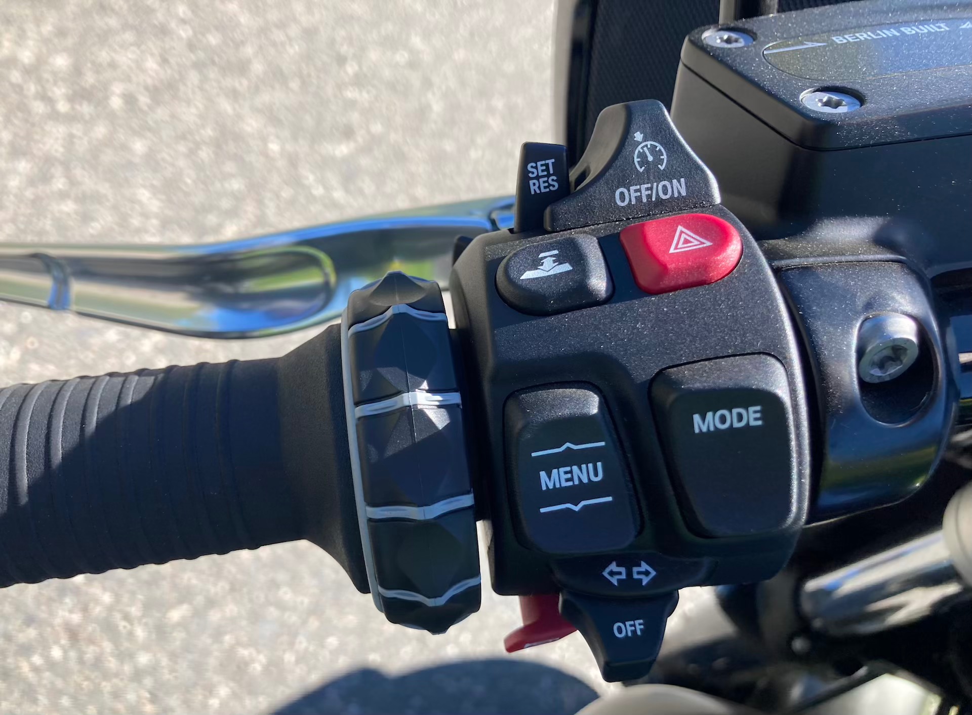 Jakmile se uvelebíte v sedačce, je čas startovat. Není potřeba hledat klíče, stačí, že je máte v nějaké kapse. I když retro, motorka je plná nových technologií a bezklíčkové zapalování je jednou z nich. Na začátek je potřeba dostat R18 ze stojanu. Tady poznáte, že motorka, která má provozní hmotnost 398 kg, není žádné chrastítko. V nulové rychlosti si musite dát pozor na balanc. Motorka je naštěstí dobře vyvážená a i když je těžiště dost nízko, chvilku trvá, než si na tu hmotnost zvyknete. Teď už jen stisknout tlačítko pro aktivaci elektroniky a startovací tlačítko, které oživí mohutný “Big Boxer”. Startování je super zážitek. Pokaždé, znovu a znovu jsem si užíval, jak se obrovský boxer převalí z jedné strany na druhou, škubne motorkou, jak když do vás kopne mula, a pak začne dunivě bublat. Chvíli se opájím zvukem motoru, který chvěje celou motorkou a řadím zpátečku. Tuhle vychytávku určitě oceníte. Upřímně, bez zpátečky si vlastně ježdění s Baggerem ani nedokážu představit. Zpátečka se řadí pákou na levé straně motoru. Na palubní desce (ta obrazovka už se jinak nazvat nedá) se objeví indikace zařazené zpátečky a pak už jen stačí zmáčknout tlačítko startéru. Motorka se začne pomalu a plynule sunout dozadu, takže se nemusíte bát zastavit a zaparkovat ani u zdi ve svahu.