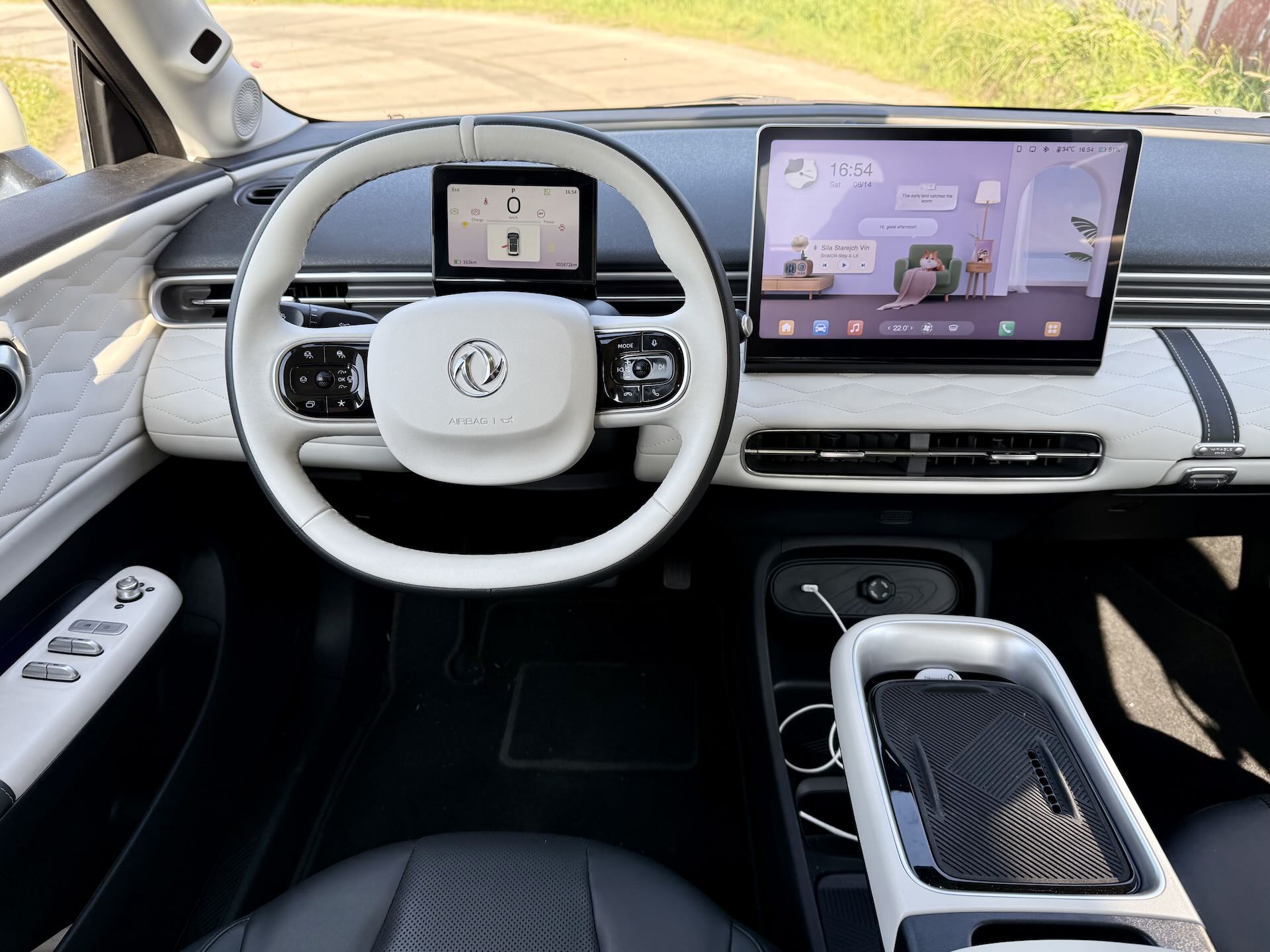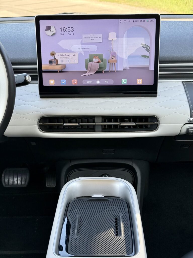 Samostatnou zmínku si zaslouží i animovaná „palubní kočička“ v infotainmentu. Reaguje na dotek, mění výrazy a občas přihodí krátký motivační citát. Na první pohled drobnost, ale v praxi detail, který si rychle najde své fanoušky – v mém případě především u dcery, která si ji okamžitě zamilovala. I díky takovým maličkostem působí BOX přívětivě a rodinně.
