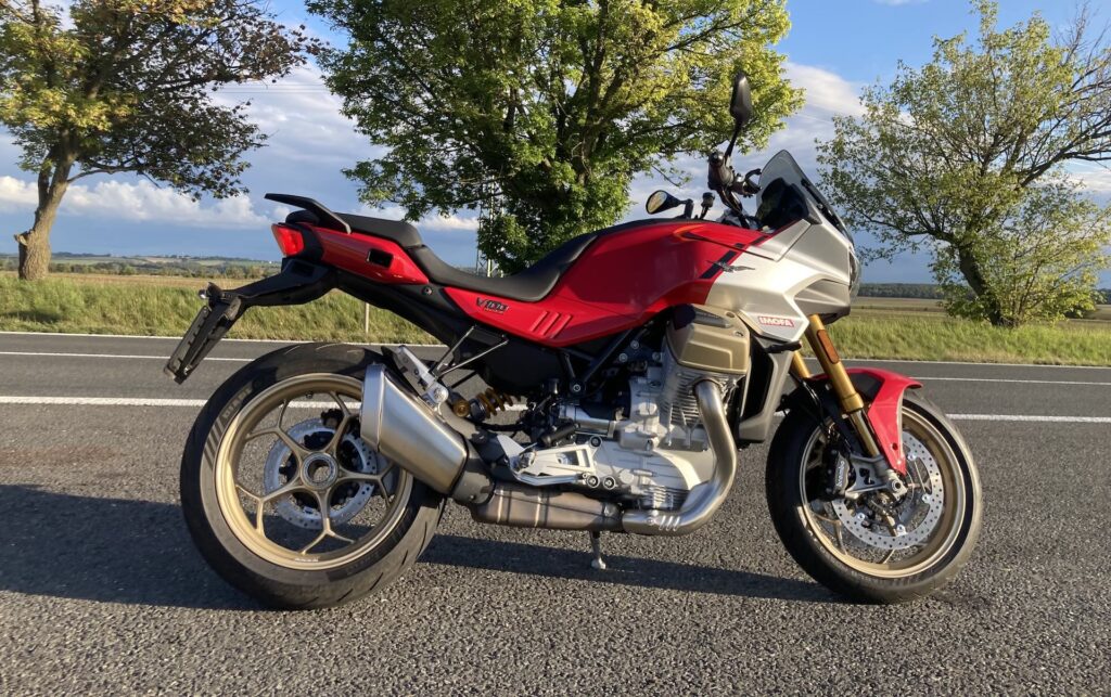 Autor: Jiří Babický · Fotografie: Jiří BabickýSportovně‑cestovní V100 Mandello byla v roce 2022 přelomem pro značku Moto Guzzi. Inženýři ze Severní Itálie vyvinuli zcela nový kapalinou chlazený dvouválec o objemu 1 042 cm³, který dodává 115 koní a 105 Nm. V100 Mandello je technicky špička toho, co Moto Guzzi nabízí. Moderní motorka se šestiosým inerciálním měřícím modulem, adaptivní aerodynamikou, rychlořazením, pokročilým informačním systémem, jízdními režimy atd. Prostě má všechno, na co si vzpomenete a ještě něco navíc. Ročník 2025 přináší další zajímavé úpravy oproti těm předchozím a zase posunují technickou dokonalost o kousek výš. Všechny verze dostaly tišší převodovku, motor splňuje normu Euro 5+ a přibyl středový kryt chladiče. Já jsem dostal na testování vrcholnou verze V100 Mandello S, která dostala navíc radarový systém PFF Rider Assistance s funkcemi forward collision warning, blind‑spot monitoru, asistenta změny jízdního pruhu a semi‑aktivní odpružení Ohlins. A jaké byly mé dojmy?