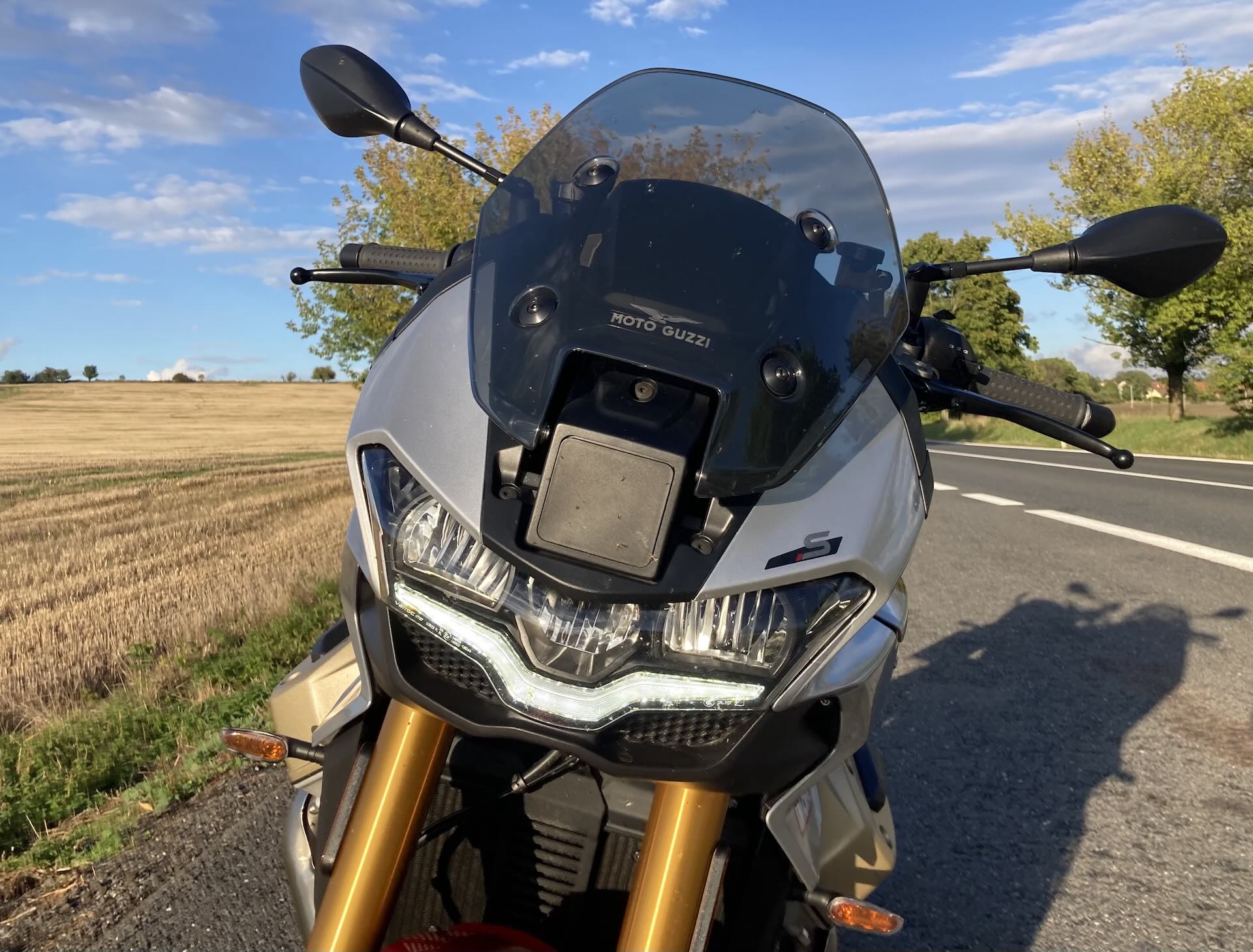 Během ostré jízdy se V100 Mandello S ochotně skládá do zatáček, příjemně široká řídítka dávají jezdci vynikající páku k rychlým korekcím směru a motorka si drží stopu i v dlouhých táhlých zatáčkách. Prostě paráda. I při ostrém brzdění se motorka nepropadá a na asfaltu drží jak přilepená. Výkon motoru a průběh výkonu je třešničkou na dortu a dokáže motorku vytáhnout ze zatáčky ve velmi širokém spektru otáček. Při najíždění do zatáčky zase skvěle fungují a odvádějí prvotřídní práci radiální čtyřpístkové třmeny Brembo M4 32. Přední brzda má ohromnou sílu a jemný nástup, ABS jsem během testu neaktivoval ani při velmi prudkém brzdění, nebo jsem si toho nevšimnul. Ať tak či tak, brzdí to jak čert. K bezpečnosti přispívá šestiosá IMU, která řídí náklonové ABS a kontrolu trakce. Pro rok 2025 dostává S verze radarový systém PFF, jenž upozorňuje na vozy v mrtvém úhlu a při hrozící kolizi. Trochu škoda je, že Guzzi zatím nenabízí adaptivní tempomat, ale i to brzo přijde. Super je hlídání mrtvého úhlu, na které vás upozorňuje světlo v zrcátkách. Super užitečná věcička do hustého provozu a na předjíždění pomalu se vlekoucích plechovek. Trochu méně praktické mi přišlo varování před čelní a zadní kolizí. Přední radar – až bude umožňovat adaptivní tempomat – bude určitě užitečný, jen bych uvítal možnost nastavení, kdy začne fungovat varování před kolizí. Občas se signalizace zapne, i když se dostanete blízko za auto a chystáte se předjíždět. Občas znamená skoro vždycky. Asi je to vzhledem k bezpečnosti správně, ale jedete na sportovní motorce, ne v rodinném automobilu na výlet s maminkou. Naštěstí je signalizace decentní a neobtěžuje.
