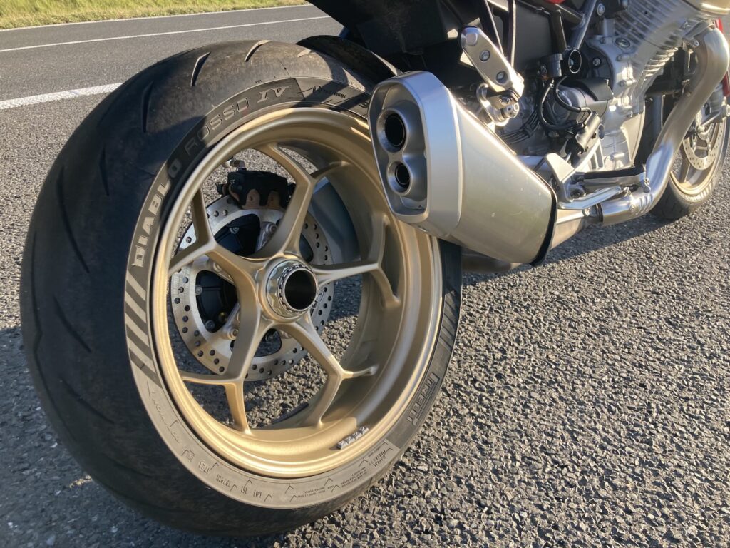 Díky krátké stavbě a nízko uloženému těžišti působí téměř jako středně velký naháč – ochotně mění směr a v zatáčkách se sklápí lehce a stabilně. Jízda po klikatých okreskách je radost – motorka řeže zatáčky a díky pevnosti rámu a preciznímu vedení stopy můžete překlápět ze strany na stranu svižně, rychle a s absolutní kontrolou. Na dálnici se ukáže cestovní charakter. Sedlo je pohodlné, ergonomie uvolněná a vzduchový štít odklání proudění. Ve městě je dvouválec kultivovaný a neremcá, ani když ho trápíte na nízké otáčky.