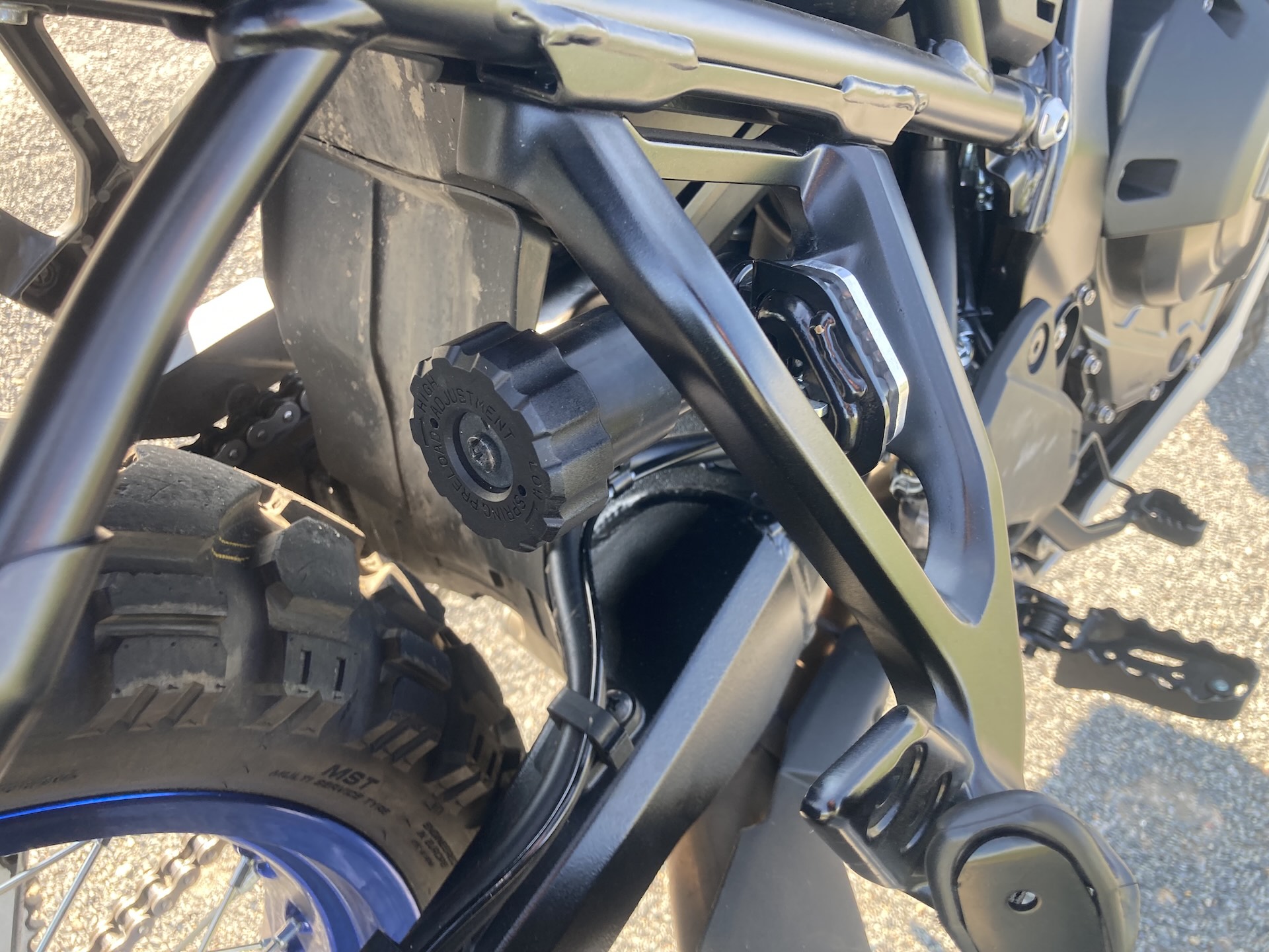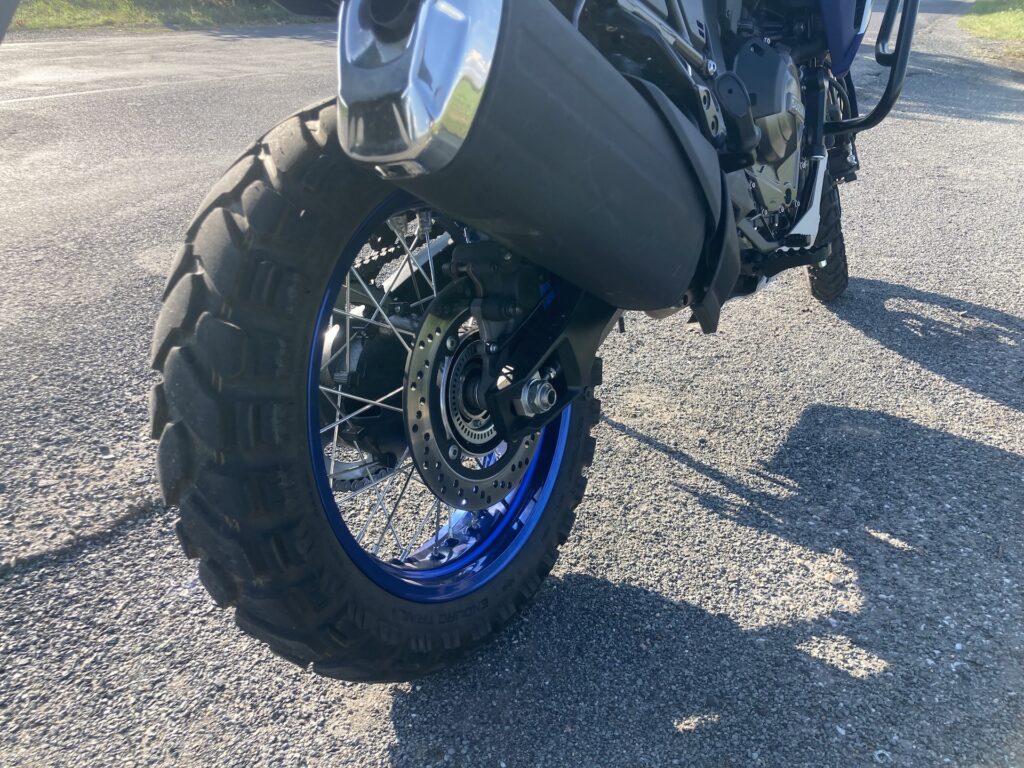 Robustní konstrukce motocyklu je patrná na první pohled. Trubkový ocelový rám s odnímatelným pomocným rámem je zcela nově vyvinutý pro tento model, navržený s ohledem na odolnost v terénu. Vpředu najdeme 21palcové vyplétané kolo, vzadu 17palcové, obě obuté do univerzálních pneu s dobrým výkonem jak v terénu tak na silnici.