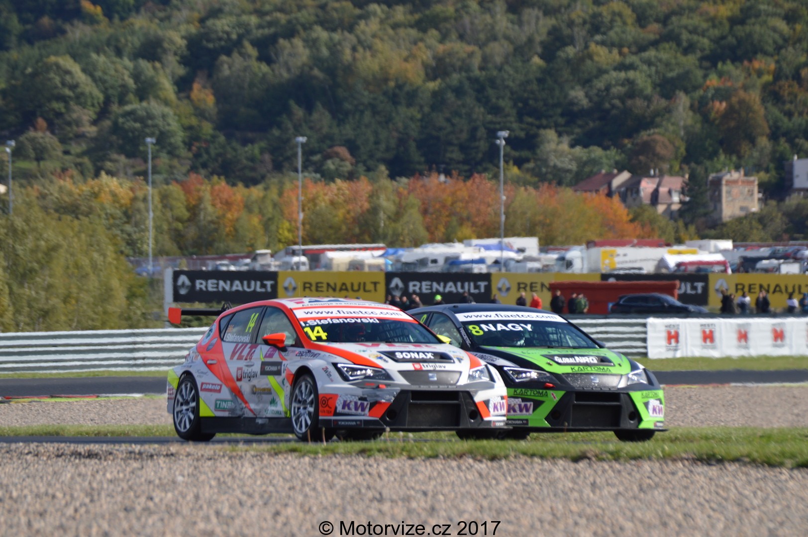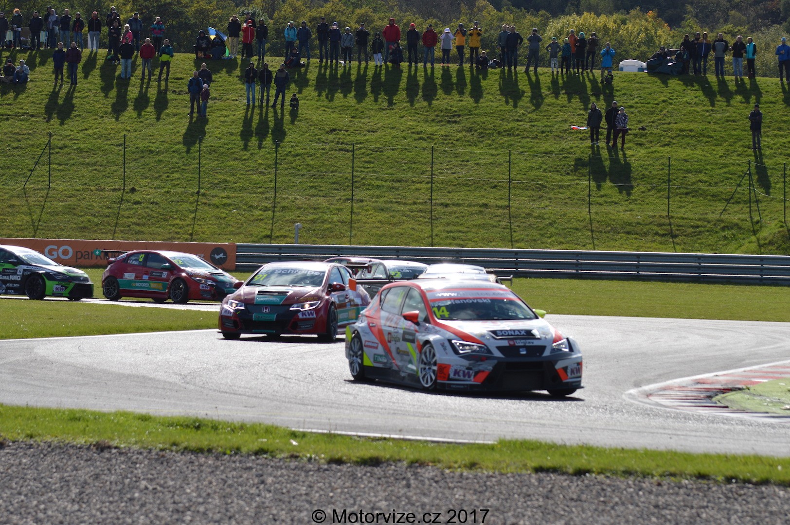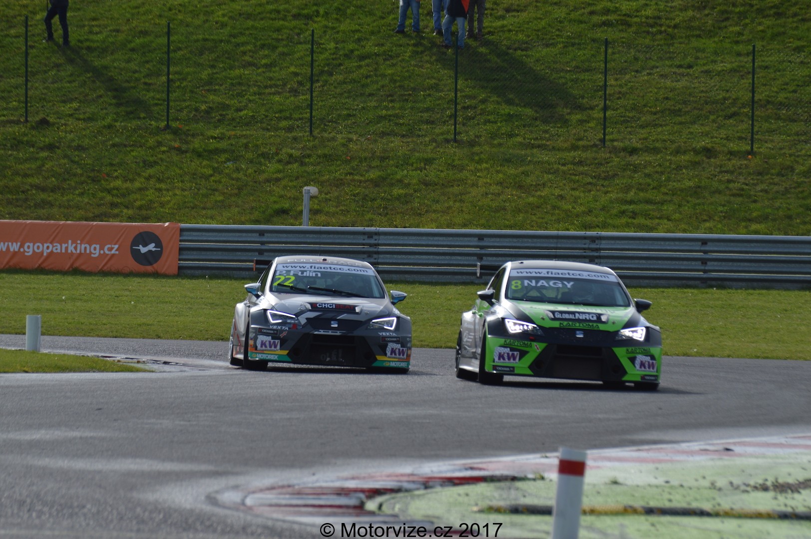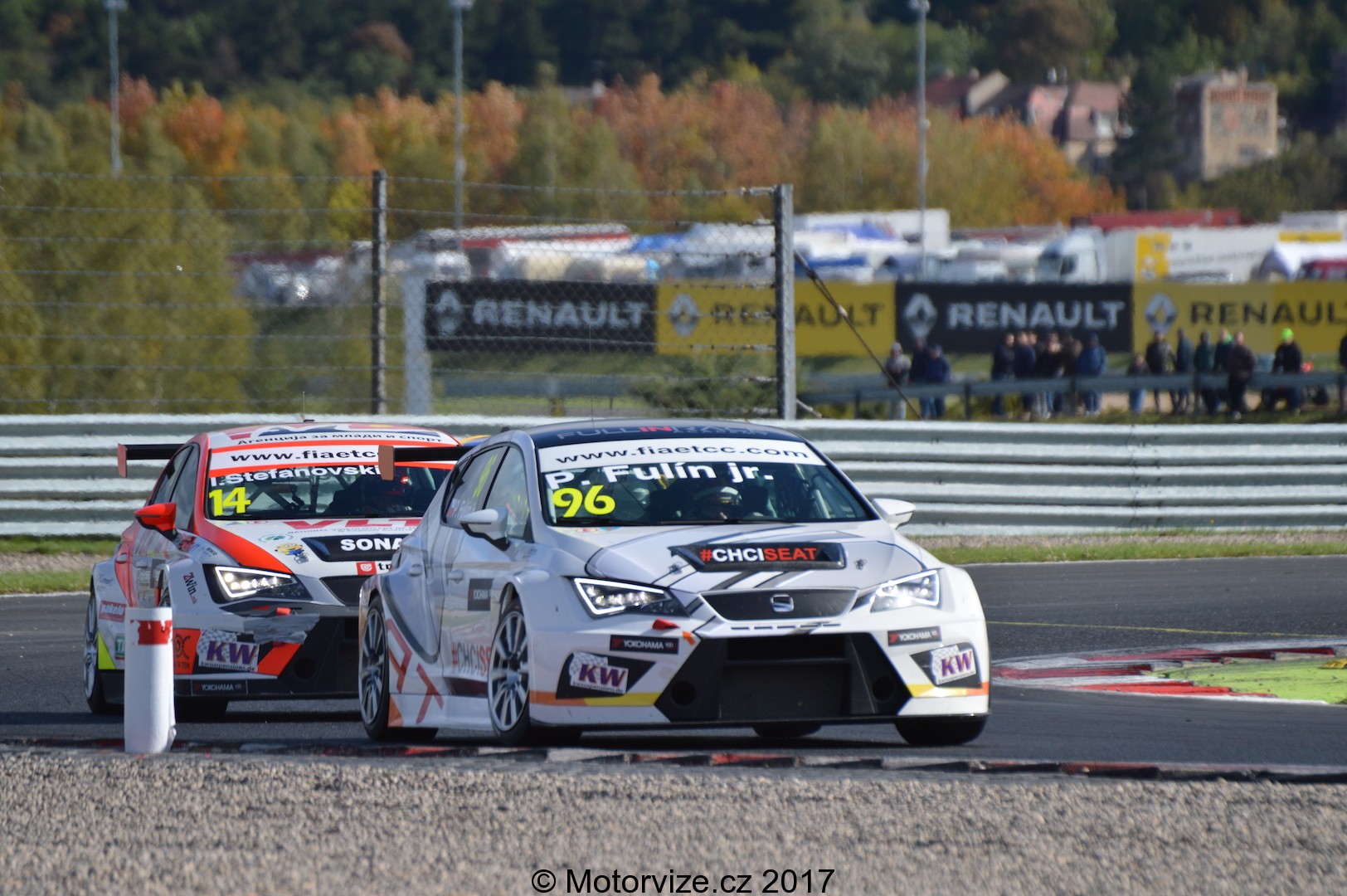 To nejzajímavější a nejdůležitější je asi zhodnotit diváckou atraktivitu. Už v úvodu jsem zmínil, že se Mostečtí opravdu snaží. Zároveň jsem si ale posteskl, že časy továrních cupů už jsou asi nenávratně pryč. ETCC je jeden z mála podniků, který se v posledních letech podařilo do Čech přitáhnout. O to víc jsme za tuto příležitost rádi, že v šampionátu startuje jedno velké české želízko v ohni – Petr Fulín. Fuldu oficiálně podporuje české zastoupení Seat, i jemu vděčíme za velké rozšíření a povědomí o těchto závodech. No a teď už pojďme konečně na tu trať. Neváhali jsme a samozřejmě jsme se ze startu přesunuli do první zatáčky nebo spíše lépe řečeno šikany, kterou zde zhruba 10 let majitelé vybudovali kvůli zvýšení bezpečnosti na trati. Pro závodníky jde tak o poměrně náročnou a zatěžkávající „první zkoušku“ ihned po startu závodu. Cestovním vozům sice dělá značně menší problém napasovat se do prvních dvou zatáček, nicméně i tak byly občas vidět zajímavé, byť minimální doteky. Petru Fulínovi se vcelku dařilo, většinu prvního závodu si pohlídal druhé místo, v druhé polovině o něj však po lehkém kontaktu přišel a o zmenšení náskoku v celkovém bodování bylo postaráno. To nejdramatičtější bitva celého roku tak měla přijít opravdu až na závěr.