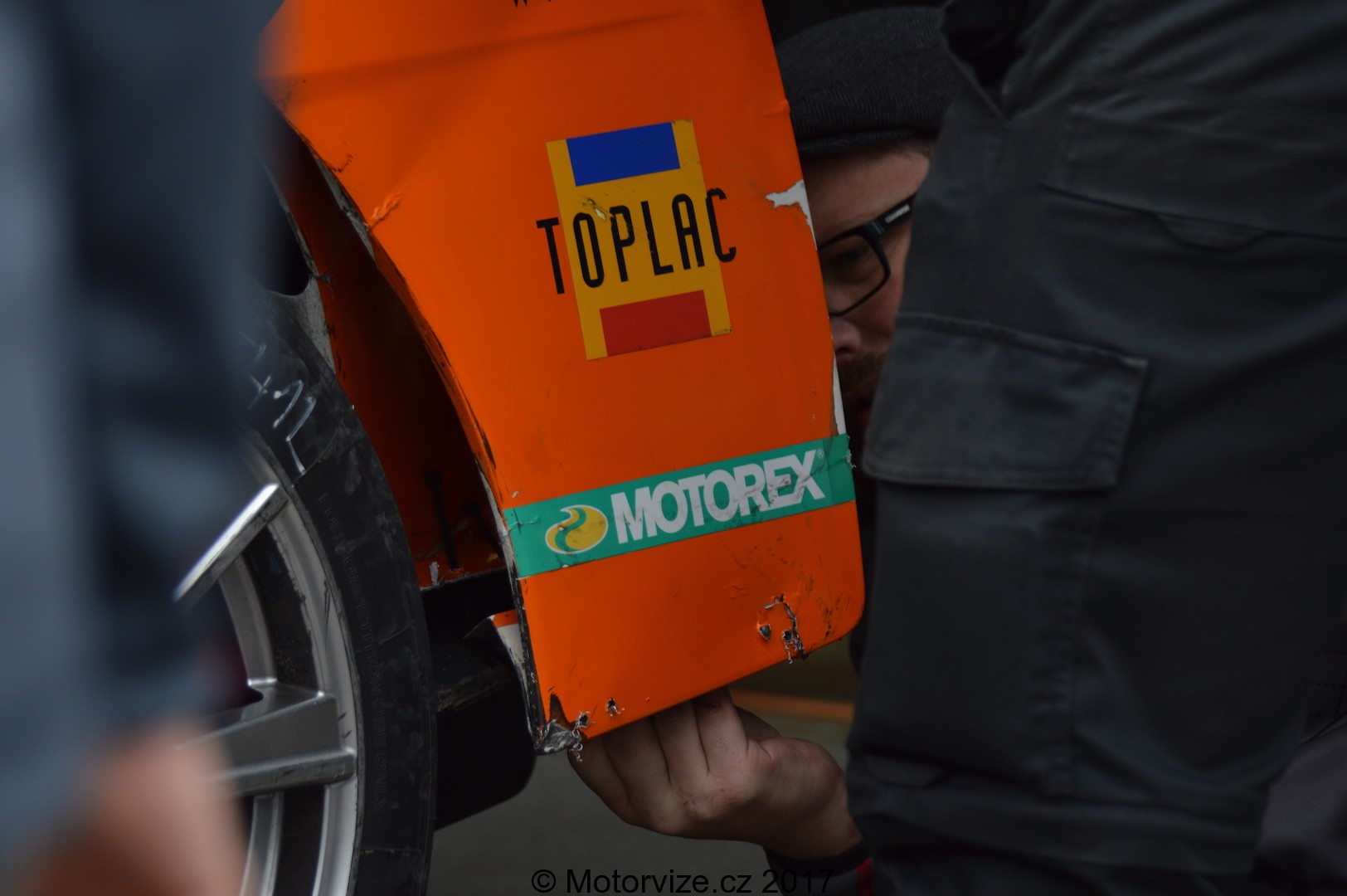 I když prostoje v průběhu ETCC rozhodně nejsou přehnanou slabinou, pro všechnu audienci byl po vzoru ostatních víkendů v Mostě připraven opět zajímavý doprovodný program. Tentokrát nešlo ani tolik o kaskadérské kousky, pokud teda myslíme ty „při zemi“. Zpět k tradicím, i tak by se nedělní poledene na severozápadu Čech dalo popsat. Zasteskli jste si při letošním ETRC (tahačích na okruhu) po letecké akrobatické show? Pak jste si ji mohli v klidu a pořádně vynahradit právě poslední závodní víkend v Mostě. Zatímco na podiu se teprve předávaly ceny třem nejlepším v dopoledním klání, nad námi už se pohyboval v kolikrát neuvěřitelných kouskách kaskadérský pilot. Pro motoristického nadšence to hlavní přicházelo ale až o pár minutek později. Sotva jsme se naobědvali, řada přišla na tzv. „repair session“. Málokdo ví, že oba závody ETCC od sebe dělí jen několik desítek minut. Jak je to možné? Naprosto jednoduše. Týmy mají na opravy svých závodních vozů pouhých 10 minut, pak se znovu musí závodníci vydat na startovní rošt. Pokud jste někdy sněli vidět výměnu brzdových destiček nebo velmi rychlé upevnění/opravu zadního nárazníku, tak jste měli skvělou možnost právě u Petra Fulína. Mechanici se rozhodně nenudili a my taky ne.