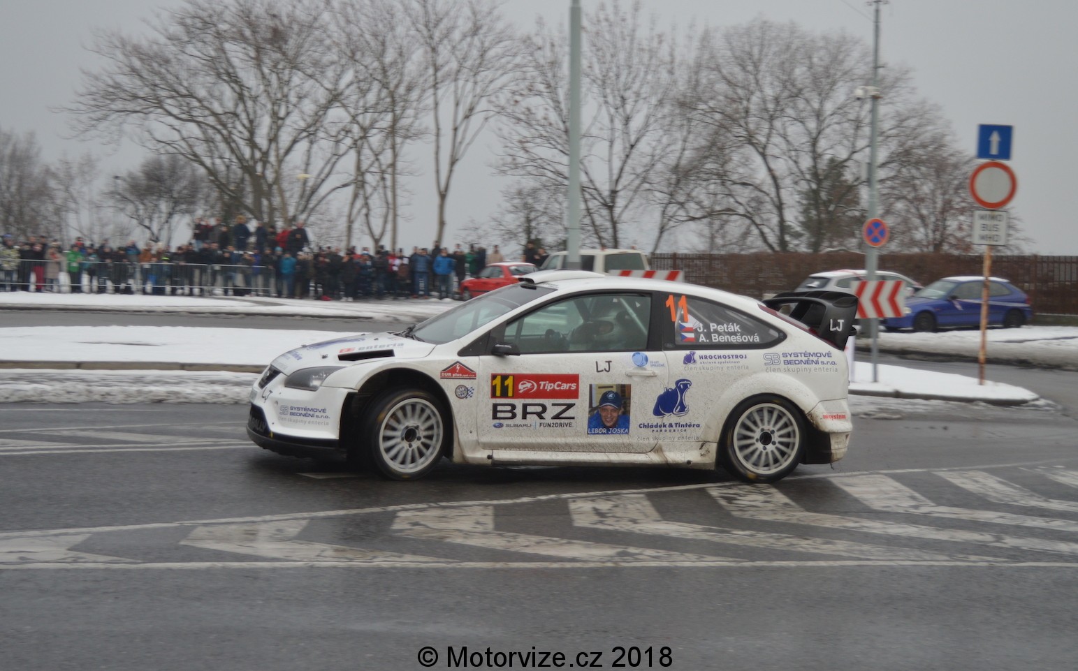 Myslím, že nadpis tohoto odstavce hovoří sám za sebe. První rychlostka startuje už v brzkých 8:30. Nebyli bychom to ale my, členové redakce, kdybychom i o volnou sobotu nevstávali před sedmou hodinou ranní a nevyráželi s předstihem na další rally. Než se ale vydáme k trati, dovolte mi malou odbočku. Pražský rallysprint totiž hraje svou specifickou roli v českém rally kalendáři. Možná bych si i trochu protiřečil, právě tato soutěž totiž vlastně do žádného “oficiálního” kalendáře nepatří. Abych byl přesný, nepatří do žádného šampionátu (ani rallysprint série ani MČR v rally). I tak má ale, co se důležitosti týče, své jednoznačné zastoupení na tuzemské závodní scéně. Své na tom dokazuje i startovka nebo třeba návštěvnost, která se každoročně pohybuje v řádu desetitisíců. Historicky je potřeba zmínit, že od nešťastné a osudné nehody polského závodníka Kuzaje už pár let uplynulo a samotná úroveň soutěže se od dané doby výrazně zvedá. Teď už ale zpět na RZ 1 Točná, jež startuje první prosincovou sobotu v 8:30. Já osobně dorážím na místo s předstihem pouhých 10 minut. Nevýhoda jinak krásné trati je zcela bez pochyby pouze jedno jediné divácké místo, ze kterého je možné závodníky sledovat. To má mimochodem ještě pro jistotu pouze jednu příjezdovou cestu a omezené možnosti k parkování. Zpět k objektivní reportáži z rally – pomalu se ozývá burácení motorů a řítí se první závodník. Jak zřejmě víte, jedná se o aktuálního mistra Evropy, Rusa Alexeje Lukyanuka. Nestačím se divit, ani u druhého či třetího závodníka jako by nešlo o klasické rally. I když silničáři trať celé zkoušky posypali, pořád to ráno dost klouzalo. Toho si byla vědoma i většina závodníků a obzvlášť v jedné z prvních zatáček, kde jsem já s kolegy stál, byli všichni nad míru opatrní. Snad bych z Točné odjížděl i trochu zklamaný, ale…
