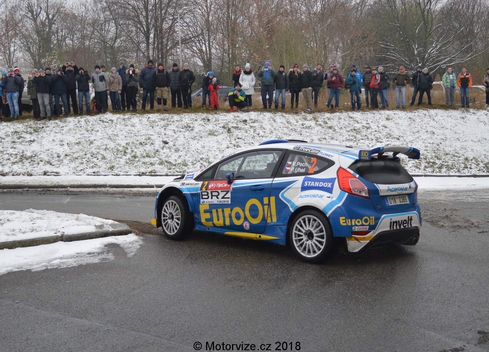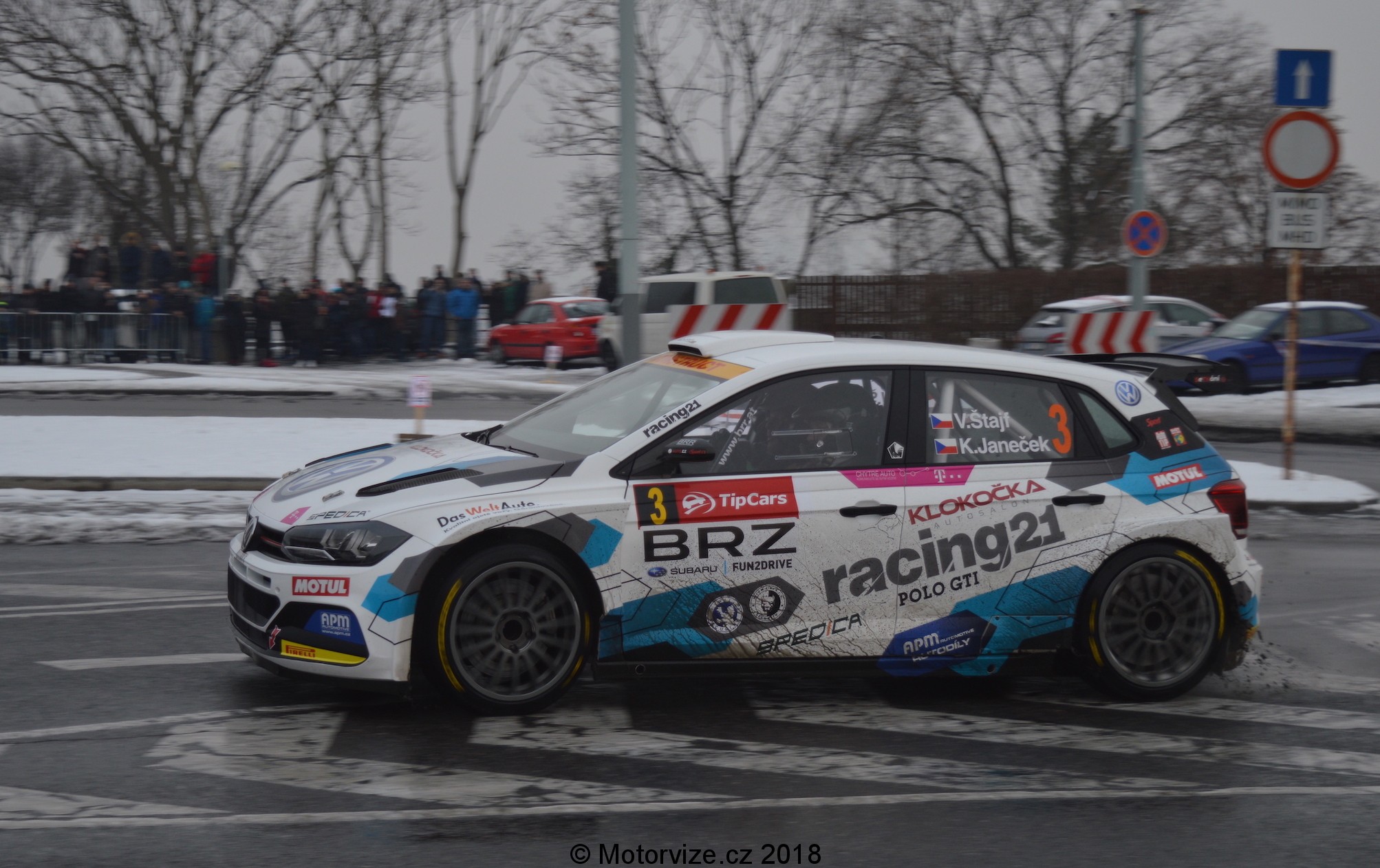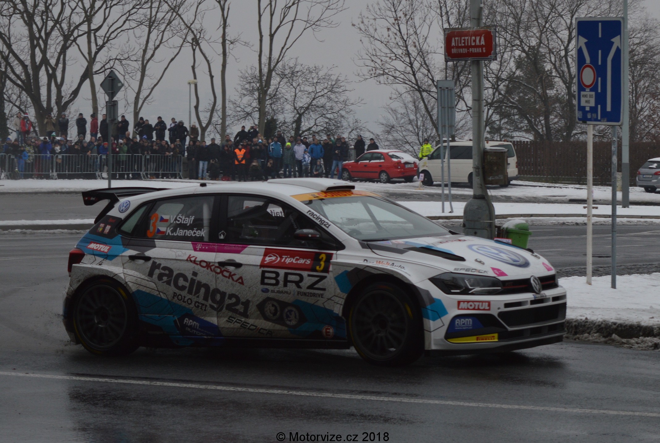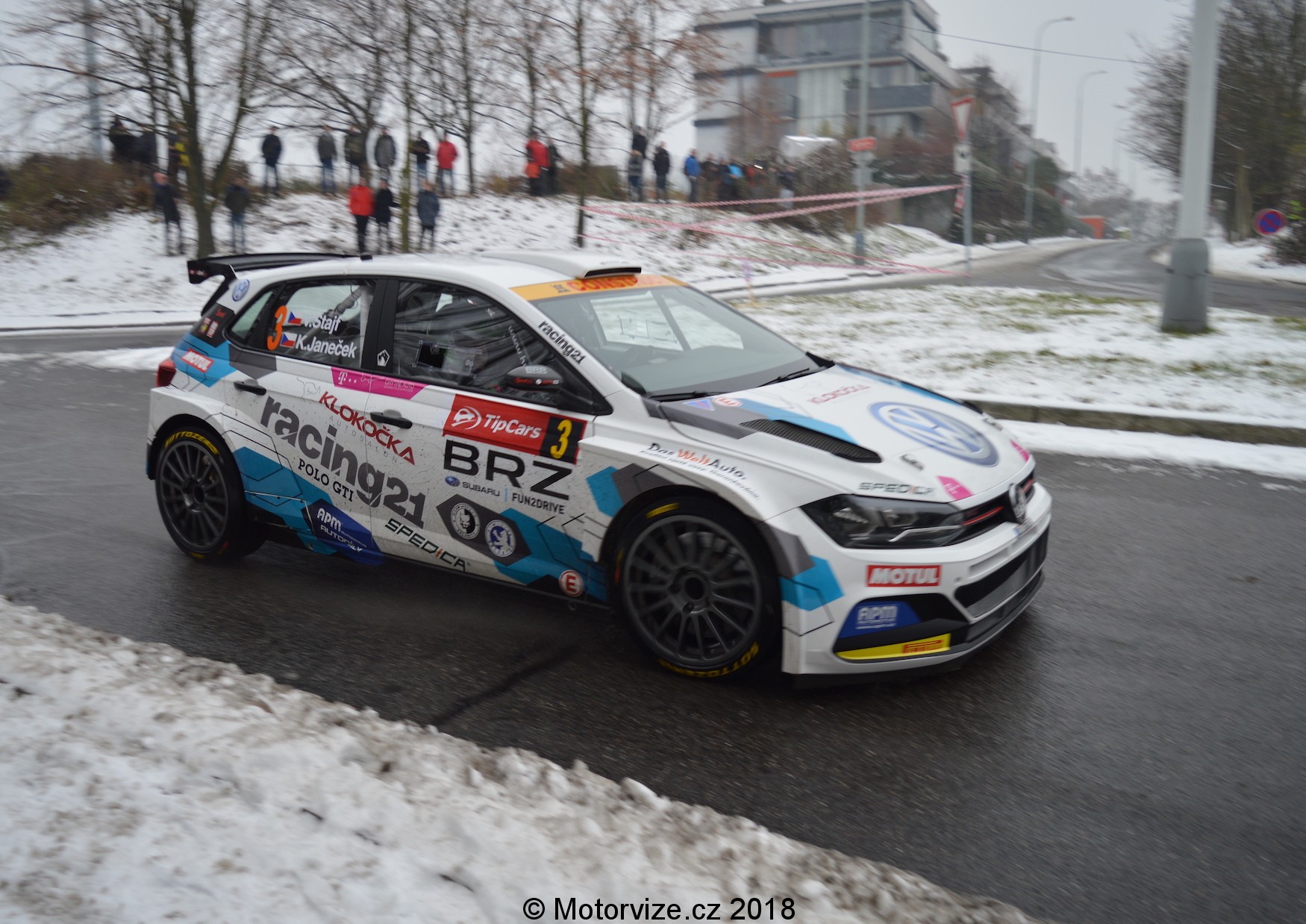 Autor: Jan Novotný · Fotografie: Jan NovotnýTakovým malým a zároveň velkým ukončením každé rally sezóny alespoň v Čechách je bez pochyby Tipcars Pražský rallysprint. V roce 2018 tomu nebylo jinak. I tak by se ale letošní ročník dal označit za plný překvapení. K tomu prvnímu nám stačí už jen pohled do startovky ještě před samotným startem. Na první dobrou nás trkne startovní číslo 3, se kterým vyjíždí Vojta Štajf. Pokud si ťukáte na čelo nebo snad pochybujete o Vojtovo zkušenostech, pak rozhodně nepochybujte o jednom z prvních vyrobených exemplářů VW Polo R5, jemuž bylo svěřeno toto startovní číslo. Druhým z výjimečných aut byl Hyundai i20 R5 v podání Ondry Bísahy. Celkově pak nejednoho z nás, fanoušků a nadšenců, překvapí hned 21 vozů kategorie R5 na startu, 4 WRCy a 2 S2000. Zkrátka tu máme v součtu hned 27 vozů vrcholných tuzemských kategorií. Co vše ale bylo k vidění v Praze a jejím blízkém okolí na cestách pod prvním prosincovým sněhem?