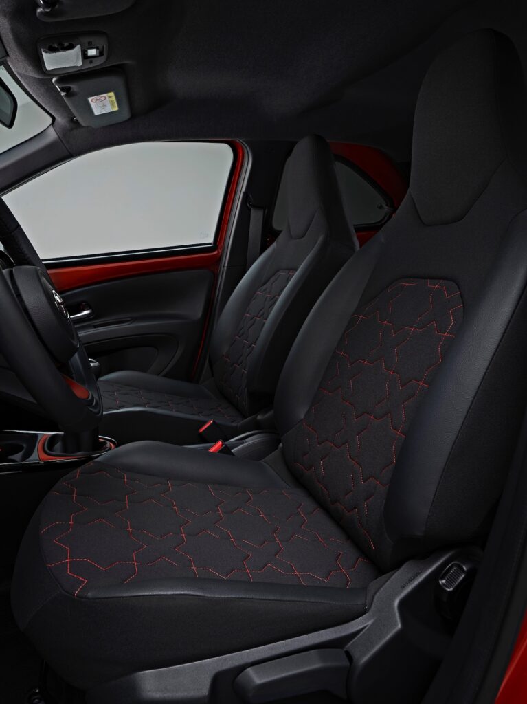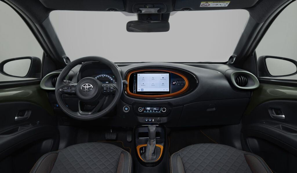 Světlá výška kompaktního crossoveru se zvýšenou karoserií narostla oproti předchozí generaci o 11 mm, a tak Aygo X dodává řidiči více jistoty na každém povrchu. Poloha sedadel se zvýšila o 55 mm ve prospěch lepšího očního kontaktu s ostatními účastníky silničního provozu, zejména cyklisty a chodci. Kromě toho se o 10 % zvětšil úhel předního A-sloupku (nyní 24°) v zájmu co nejlepšího výhledu ven.