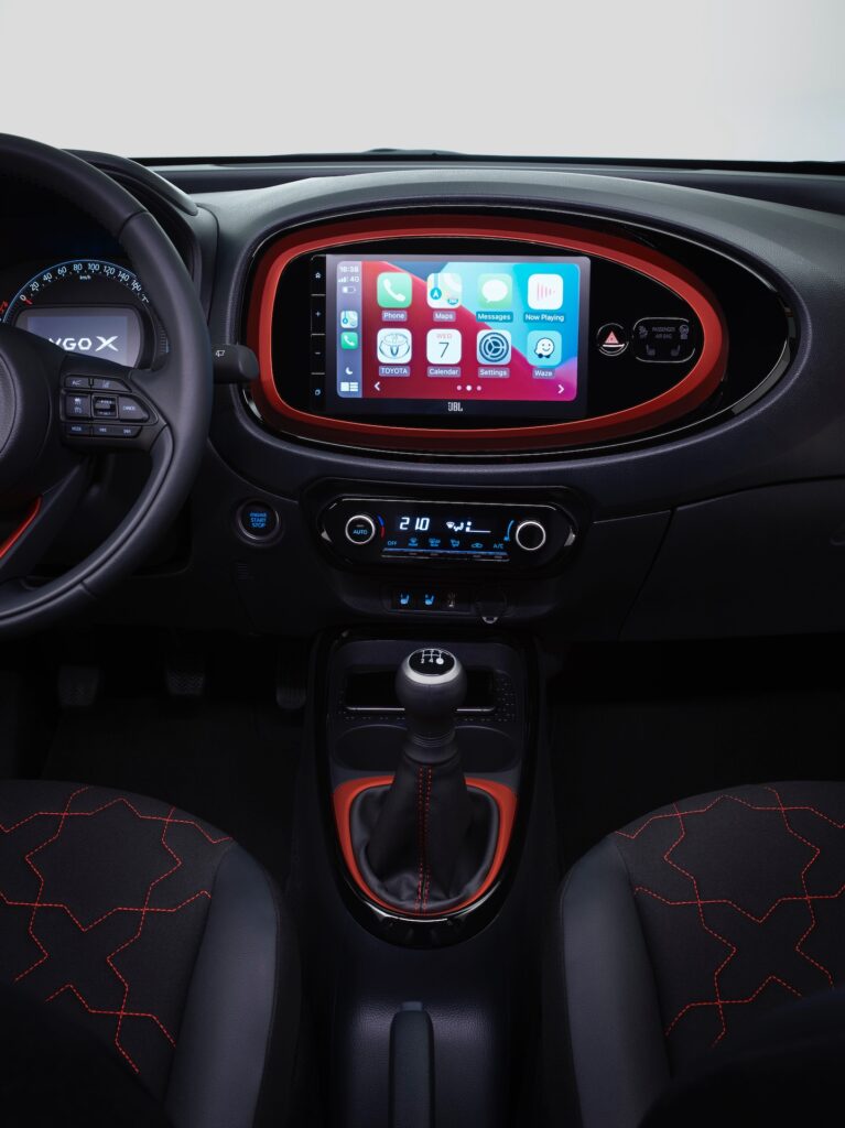 Aygo X je kompaktním vozem, v jehož výbavě najdeme i některé z důležitých moderních technologií. Se svojí Toyotou Aygo X bude každý zákazník propojen prostřednictvím systému Toyota Smart Connect a mobilní aplikace MyT. Toyota Smart Connect zahrnuje velký 9″ dotykový displej s vysokým rozlišením, difuzní osvětlení a bezdrátové nabíjení, a nabízí tak zákazníkům bezproblémové uživatelské prostředí s doplňkovou mobilní aplikací MyT. Pomocí aplikace MyT může majitel sledovat různé analýzy vozidla, jako např. analýzu jízd, stav paliva v nádrži, varování nebo sledování polohy vozidla. Nejnovější multimediální systém od Toyoty ve vyšších výbavových liniích dále nabízí navigaci na bázi cloudu, která zprostředkuje dynamické informace o trase na bázi on-line služeb. V průběhu času budou uváděny nové služby prostřednictvím on-line aktualizací, a tak bude touto cestou do systému automaticky dodáván nový software i online služby. Systém Toyota Smart Connect dále nabízí kabelové i bezdrátové připojování chytrých telefonů prostřednictvím technologií Android Auto a Apple CarPlay.