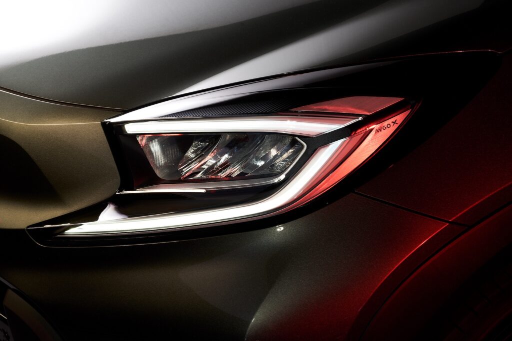 Pro nejnovějšího zástupce třídy minivozů se rovněž uvádí vyspělý systém full-LED světel, který uvedenou technologii zpřístupňuje většímu počtu zákazníků. Světla denního svícení a směrová světla sestávají ze dvou světlovodů lemovaných jemnou žhnoucí září k akcentování ikonického profilu Ayga za všech světelných podmínek. Aygo X znamená velký skok kupředu ve smyslu bezpečnosti, kdy tento model ze segmentu minivozů bude poprvé na všech trzích standardě vybaven bezpečnostním systémem Toyota Safety Sense. Nejnovější paket Toyota Safety Sense používá jednookou (monokulární) kameru ve spojení s milimetrovým radarem. Předkolizní bezpečnostní systém (PCS) s funkcí rozpoznávání vozidel navíc nyní funguje i za vyšších rychlostí. Premiéru v Toyotě Aygo X má funkce rozpoznávání chodců ve dne i v noci, rozpoznávání cyklistů za denního světla, asistenční systém pro zmírňování rizika kolize na křižovatkách, adaptivní tempomat, asistent pro udržení v jízdním pruhu a nouzový asistent řízení.