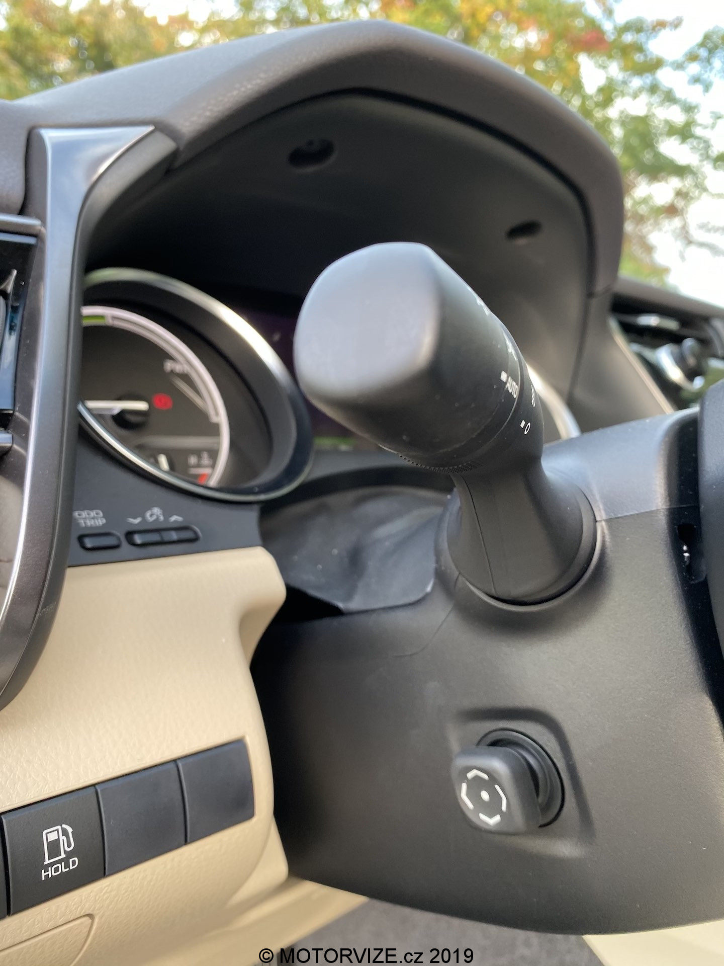 Hybridní technologie umožňuje využít rychlého nástupu výkonu elektromotoru s jeho velkou energetickou účinností a kombinovat ho s velkým dojezdem spalovacího motoru, resp. s energií uloženou v benzínu. Toyota to zvládá skvěle – není problém jet kilometry pouze na elektrickou energii, většinu popojíždění a manévrování zvládnout v naprosté tichosti a bez emisí a ušetřit tak nejen okolí ale také dost paliva. Celé je to řízené zcela automaticky, řidič se jen může naučit ovlivnit činnost soustavy stylem jízdy či požadavkem na výkon. K tomu skvěle napomáhá ručička potřeby energie, ze které je jasně patrné, kdy se zapne spalovací motor. Po městě lze jezdit na elektrickou energii velkou část provozu – a když už se zapne motor, nageneruje se energie do baterií – byť ne úplně naplno – aby bylo místo v bateriích na sbírání té nejcennější, kinetické, energie z brždění. Při velmi defenzivní jízdě se bohužel baterie dobíjí jen pozvolna – paradoxně až při méně plynulé jízdě, kdy se mnohem intenzivněji brzdí, se baterie začne plnit do svého maxima. Problém pak je, že při mém stylu jízdy prakticky nikdy nefungovalo tlačítko EV, jenž vůz přepne do čistě elektrického provozu. Tady nerozumím tomu, proč třeba po stisku tlačítka nezačne spalovací motor baterii více plnit, aby během pár minut mohly být baterie připraveny. Pedál brzdy má také svoje hybridní specifikum – zhruba třetina jeho dráhy ovlivňuje úroveň rekuperace a až při větším sešlápnutí přijdou na řadu kotoučové brzdy – to znamená jistý přechod a “neplynulost” při stisku, ale ve většině případech zvládne zpomalení regenerace energie.