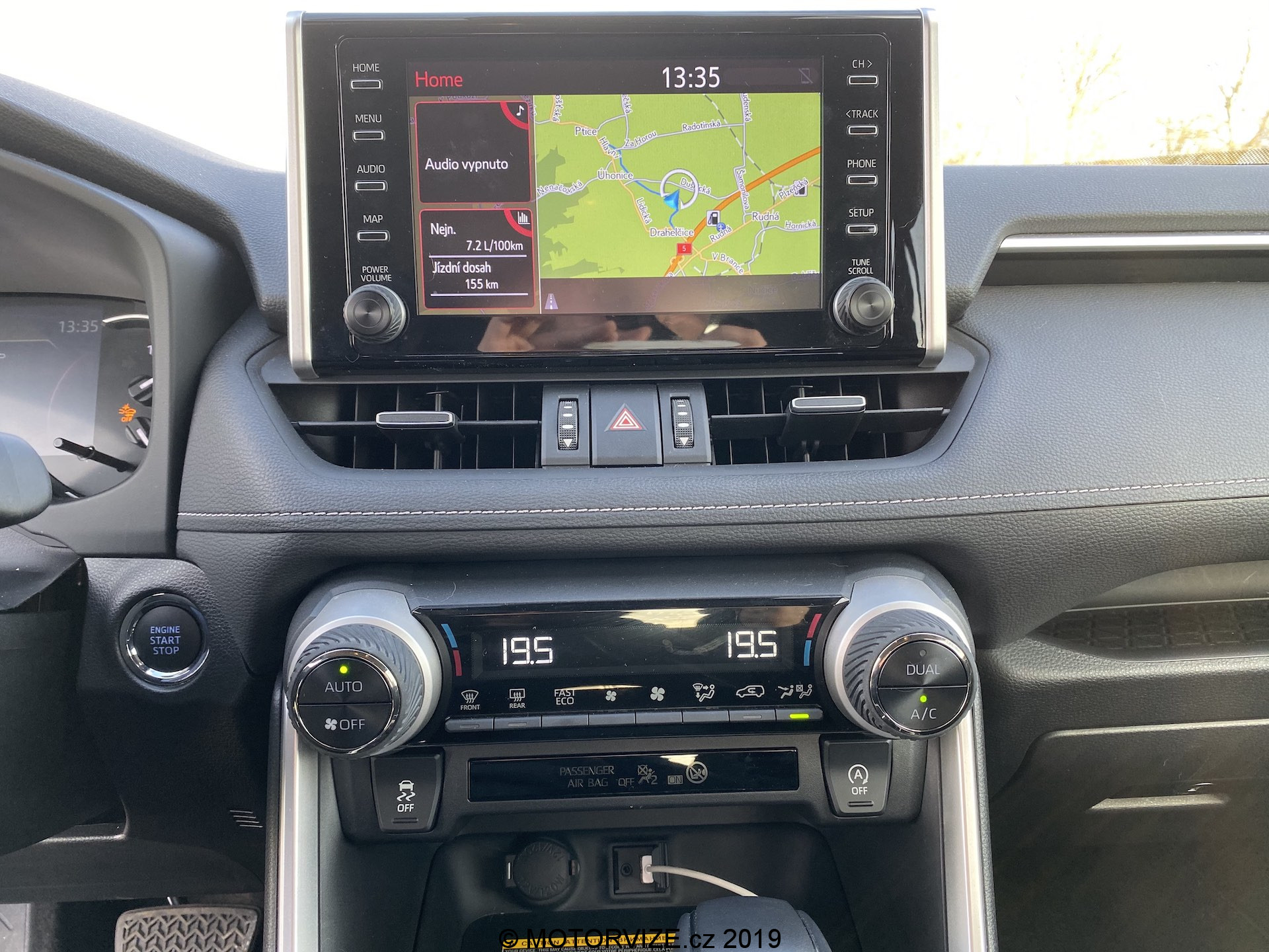 Interiér vozu tentokrát nebyl v obvyklé „plné polní.“ Výbava vozu dle mého názoru ale odpovídala obvyklému zájemci o tento model. A opět, jediné, co jsem postrádal, byla kožená a vyhřívaná sedadla, jinak bych s ohledem na bohatý výčet základní výbavy nepotřeboval připlácet vůbec nic. Multimediální systém s se základní mobilní konektivitou zde samozřejmě je, stále ještě ale bohužel neumí Apple CarPlay či Android Auto a my tak jen čekáme na vyplnění slibů výrobce. Automatická klimatizace, tempomat a palubní počítač jsou základem, nic víc v podstatě není třeba. Samozřejmě v rytmu doby nabízí i Toyota armádu bezpečnostních asistentů, jako je varování před vyjetím z jízdního pruhu, varování před překážkou atd. Nenarazil jsem na nic, co by v interiéru chybělo. Osobně musím připomenout snad jen halogenové světlomety, v daném cenovém spektru si už život bez vyhřívaných sedadel a FULL LED či bi-xenonových světlometů nedokážu představit. Celý vůz je koncipován na komfort, prostor, pohodlí a užitnou hodnotu. Tomu možná malinko odporuje celkové odhlučnění interiéru. Ačkoliv jsem obecně kvitoval vylepšené chování variátoru, hluk přenášený dovnitř nejen od motoru ale i od okolí byl přeci jen o něco více nepříjemný než u přímé konkurence. Standardně se velikostí kufru nezabývám, ale tady jsem byl opravdu mile překvapen a to především velmi praktickým tvarem úložného prostoru, bez zbytečných překážek. Objem v litrech mě nadále nezajímá, ale musím říct, že je kufr obrovský, praktický a dovedete do něj bez problému naskládat vše, co bude třeba na rodinnou dovolenou, ryby, nebo cestu na chatu. Pokud jste ale milovníkem zimních radovánek, je třeba upozornit na absenci středového tunelu nebo dělení zadních sedaček v jiném poměru než 60:40 – to se v Japonsku ještě příliš nenosí.