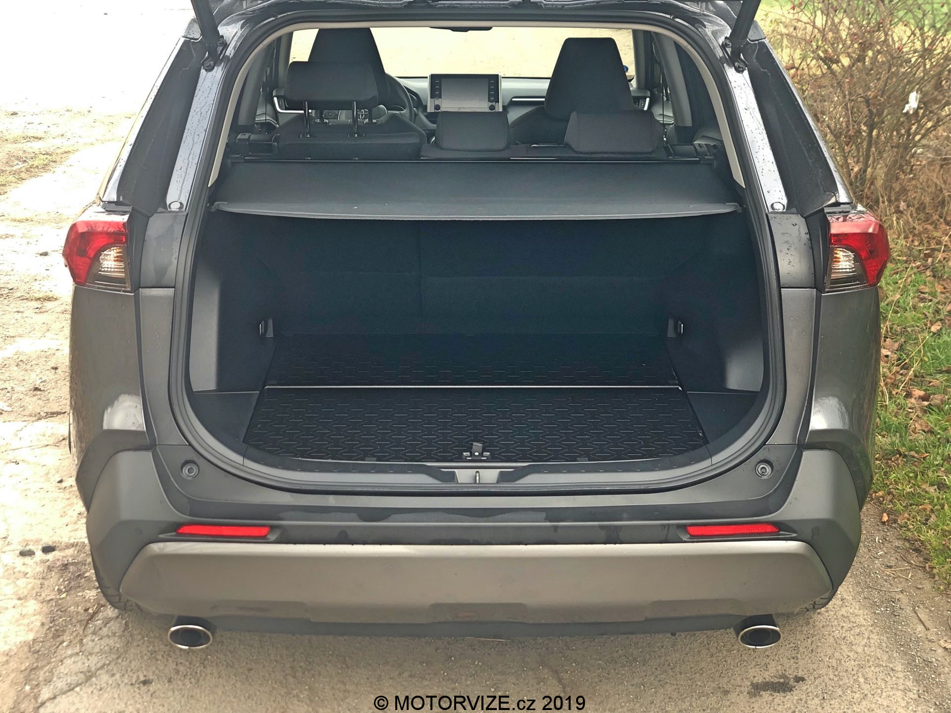 Toyota na to šla vždy po svém a nutno říct, že tenhle přístup stále funguje. Sebevědomý design současné generace dává tušit, že se tady nebavíme o nějakém pozérovi s drsným pozlátkem. Nová RAV4 se drží současného trendu a vkusně kombinuje ostré a složité tvary. Přední nárazník se jedním slovem dá popsat jako zamračený, ale tak pěkně – nasupeně. Je to kombinace několika poměrně složitých geometrických tvarů a na mě dělal právě ten správný dojem. Boční pohled jasně definuje příslušnost dané třídě díky evidentně vyšší stavbě podvozku a s ohledem na zbytek vozu relativně jednoduchému tvaru bočního profilu. Příjemně tak osvěžuje zadní část s rozšířenými blatníky a ostře tvarovanými zadními světly, jenž v kombinaci s designovým křídlem na střeše pěkně ladí a dále přitvrzuje „muziku.“ Zadní části dominují světla jednouchá, ale pěkně tvarovaná, která jsou opticky propojená chromovou lištou táhnoucí se celou šíří pátých dveří. Nárazník je jednodušší než ten přední, ale díky světlé spodní části a dvěma koncovkám výfuků přiměřeně odlehčuje poměrně velký a masivní tvar, který zde logicky napříč výrobci vzniká. Mě poslední RAV4 příjemně překvapila a i v relativně konzervativní barevné kombinaci (lakování v šedé metalíze) ve mně zanechala pozitivní dojem.