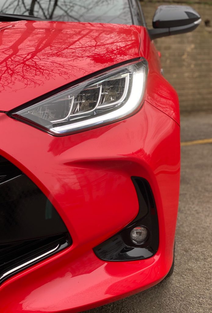 Asi největším nebo spíše nejviditelnějším lákadlem nové Toyoty Yaris je bezpochyby její vzhled. Tady designéři vsadili na opravdu dynamický, organický a agresivní “look”, který se jim podle mého názoru velmi povedl. A tak čtvrtá generace vypadá zatím nejlépe v historii tohoto modelu. Výrobce nabízí hned 14 barevných provedení. Na našem testovacím exempláři se velmi dobře vyjímala jasně červená “Tokyo” se stylovým černým lakováním střechy, střešních sloupků a zpětných zrcátek, které tak ještě více vyzdvihuje křivky spodní části karoserie. Nicméně i v ostatních dostupných barevných odstínech vypadá auto neméně povedeně. Jako za nejvýraznější a nejjasnější prvky v designu exteriéru bych osobně označil především čelní a zadní světlomety a s nimi i dynamicky působící prolisy v bočním profilu karoserie, a také na kapotě a na střeše vozu. Námi testovanému kusu též velmi slušely 17palcové disky z lehkých slitin v dvoubarevném provedení broušeného kovu v kombinaci s černým lesklým lakováním.