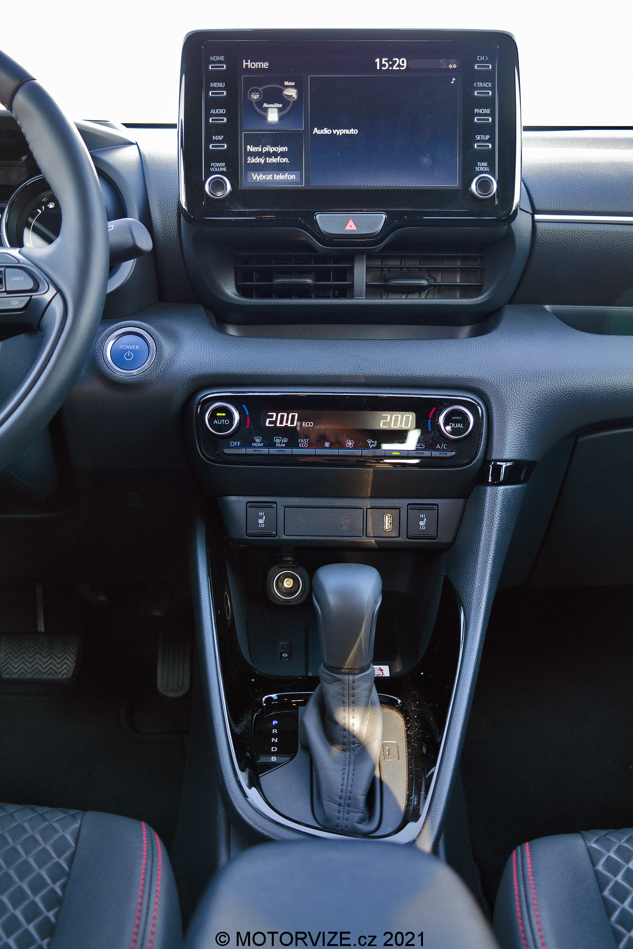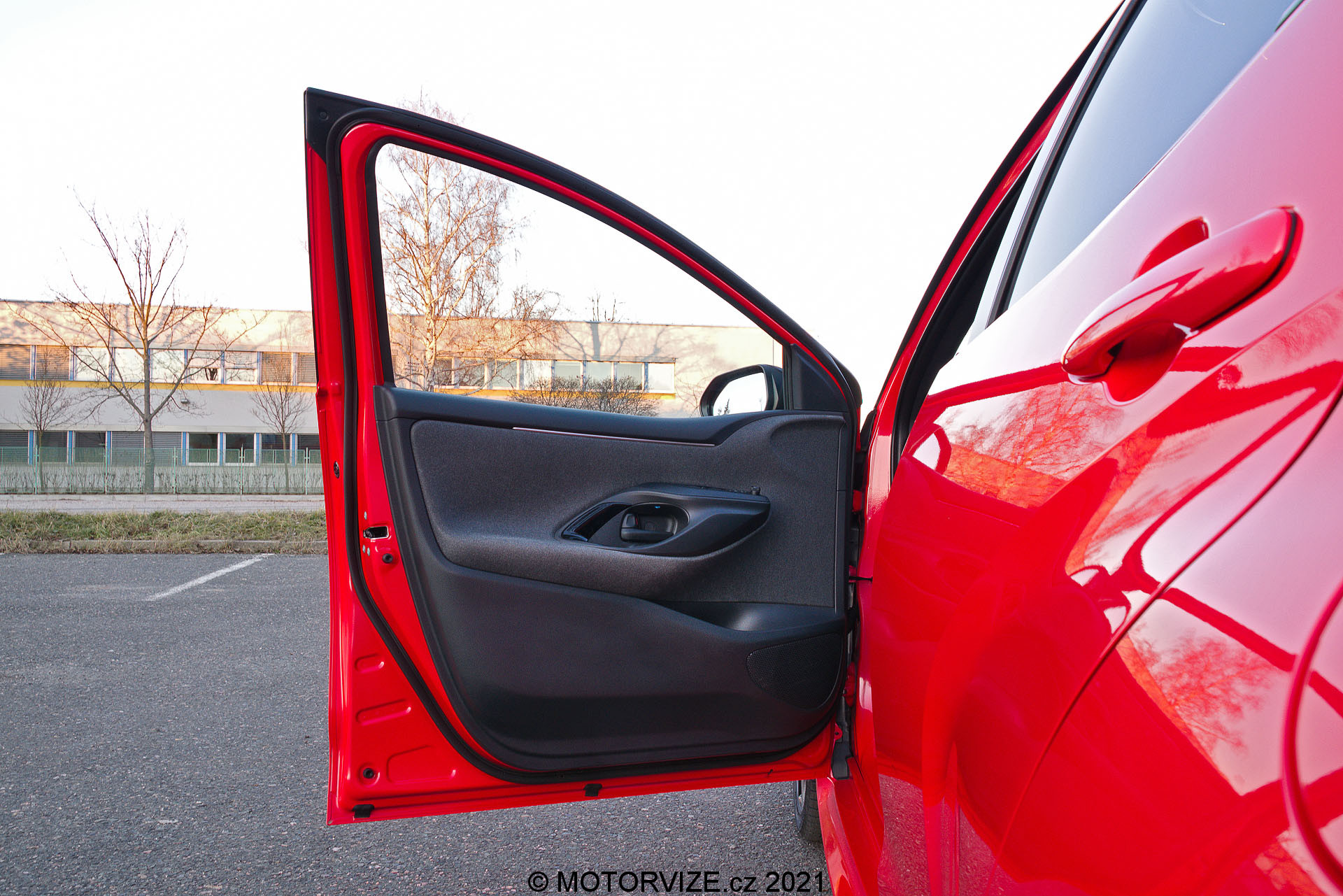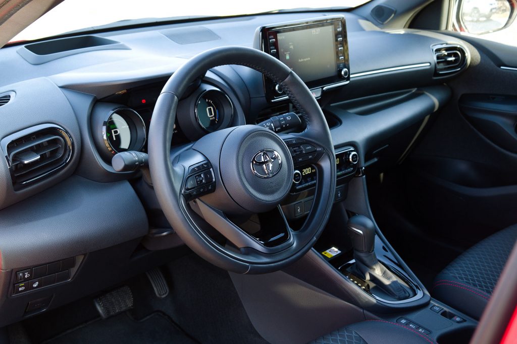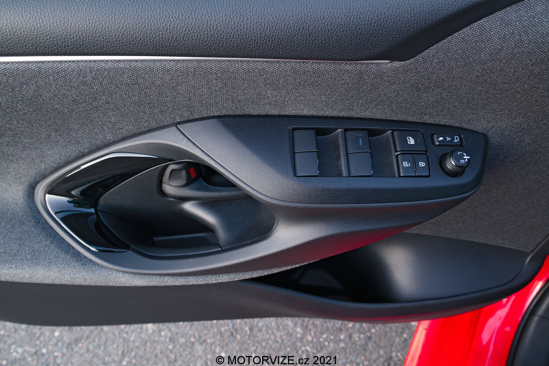 Po usednutí za volant je na první pohled zřejmé, že nový Yaris zažil výraznou modernizaci právě v interiéru, a to v rozvržení ovládacích prvků, úložných prostor i samotného prostoru pro cestující. Ve všech těchto parametrech je nová generace výrazně lepší, komfortnější a dospělejší než ty předchozí. Nicméně asi nejvýznamnější posun a vylepšení doznala palubní deska, která dostala nový 8palcový, středový displej infotainmentu, který lze ovládat dotykově a částečně i fyzickými tlačítky. Dalšími zajímavými prvky na palubní desce jsou digitální přístrojový štít a také, což je s podivem na danou třídu, dokonce i moderní head-up displej. Oba dva jsou skvěle přehledné a dobře se doplňují. Kdybych pak měl vyjmenovat pár drobností, které mě u nového Yarisu mrzely, tak je to jistě kvalita materiálů v interiéru a neobvykle, poměrně zvláštně řešená madla dveří. Ta mi nepřipadala úplně jako nejšťastněji pojatá a spokojil bych se daleko raději s tradičním konceptem madla a kliky dveří, na který jsme zvyklí u jiných vozů na trhu ale i samotných modelů značky Toyota. Tak či tak, výše vytýkané materiály jsou v mých očích nejvýraznějším mínusem interiéru nové Toyoty Yaris. Bohužel téměř všechny plastové díly jsou bez měkčené povrchové úpravy. Ačkoliv jsme stále v segmentu B, kde vyloženě prémiové materiály či nepřebernou míru luxusu nikdo neočekává, i přesto je v tomto směru napřed většina konkurentů, jako například Renault Clio, Peugeot 208, Opel Corsa či dokonce odcházející generace Škody Fabia, u nichž je oplastování interiéru na znatelně vyšší úrovni anebo při nejmenším působí celkově o něco hutnějším a bytelnějším dojmem.