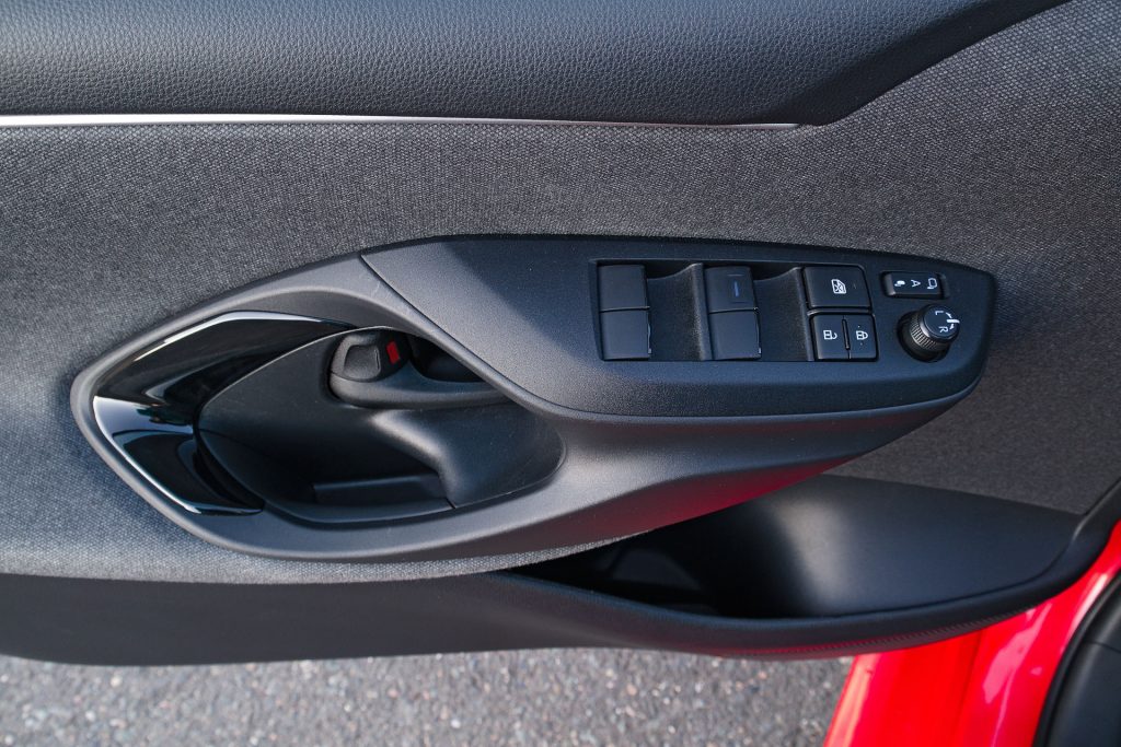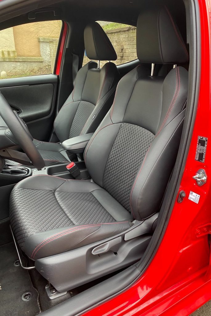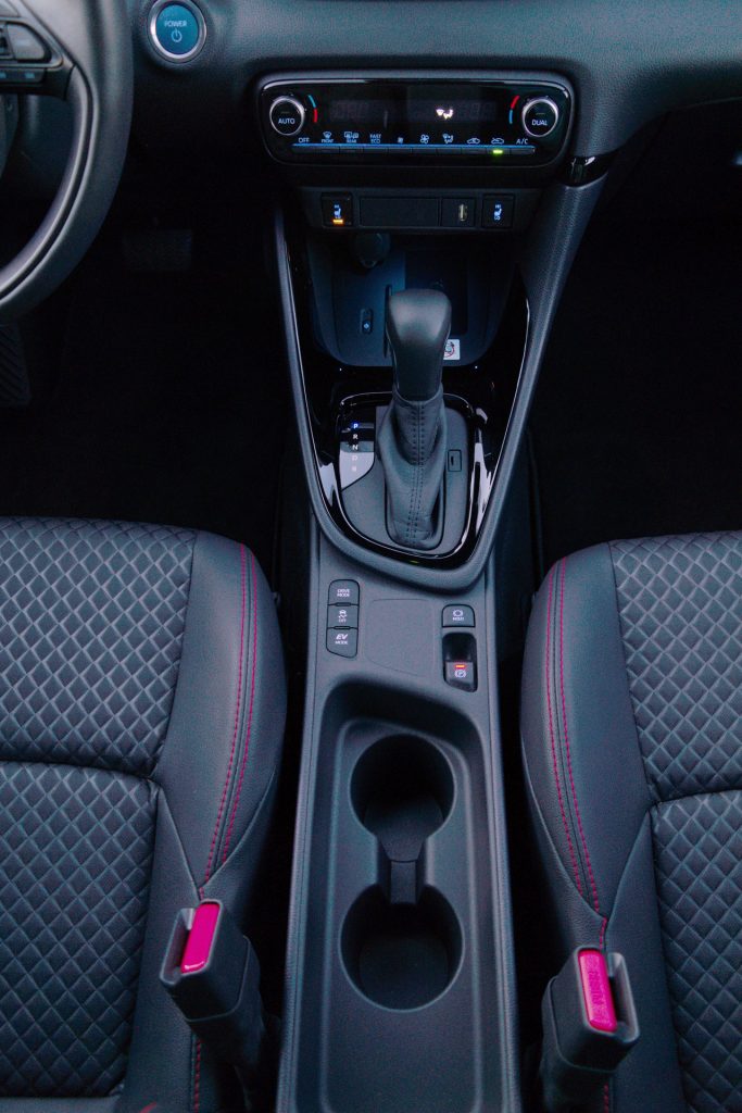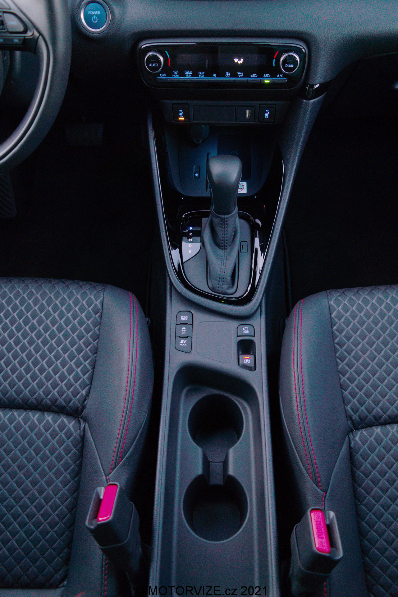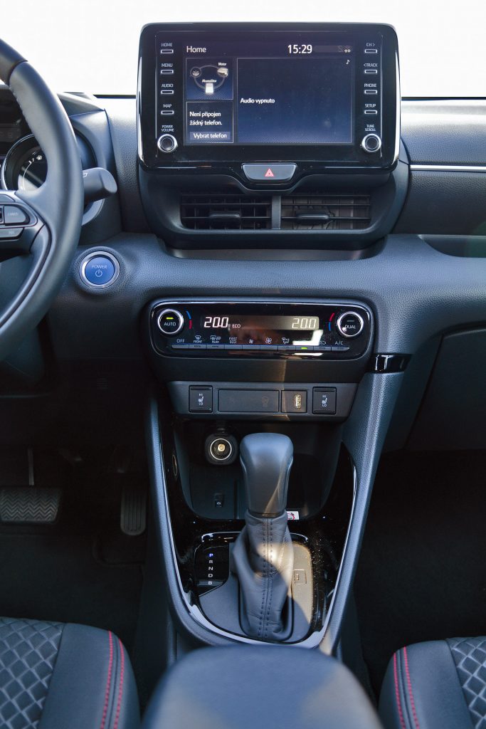 Po usednutí za volant je na první pohled zřejmé, že nový Yaris zažil výraznou modernizaci právě v interiéru, a to v rozvržení ovládacích prvků, úložných prostor i samotného prostoru pro cestující. Ve všech těchto parametrech je nová generace výrazně lepší, komfortnější a dospělejší než ty předchozí. Nicméně asi nejvýznamnější posun a vylepšení doznala palubní deska, která dostala nový 8palcový, středový displej infotainmentu, který lze ovládat dotykově a částečně i fyzickými tlačítky. Dalšími zajímavými prvky na palubní desce jsou digitální přístrojový štít a také, což je s podivem na danou třídu, dokonce i moderní head-up displej. Oba dva jsou skvěle přehledné a dobře se doplňují. Kdybych pak měl vyjmenovat pár drobností, které mě u nového Yarisu mrzely, tak je to jistě kvalita materiálů v interiéru a neobvykle, poměrně zvláštně řešená madla dveří. Ta mi nepřipadala úplně jako nejšťastněji pojatá a spokojil bych se daleko raději s tradičním konceptem madla a kliky dveří, na který jsme zvyklí u jiných vozů na trhu ale i samotných modelů značky Toyota. Tak či tak, výše vytýkané materiály jsou v mých očích nejvýraznějším mínusem interiéru nové Toyoty Yaris. Bohužel téměř všechny plastové díly jsou bez měkčené povrchové úpravy. Ačkoliv jsme stále v segmentu B, kde vyloženě prémiové materiály či nepřebernou míru luxusu nikdo neočekává, i přesto je v tomto směru napřed většina konkurentů, jako například Renault Clio, Peugeot 208, Opel Corsa či dokonce odcházející generace Škody Fabia, u nichž je oplastování interiéru na znatelně vyšší úrovni anebo při nejmenším působí celkově o něco hutnějším a bytelnějším dojmem.