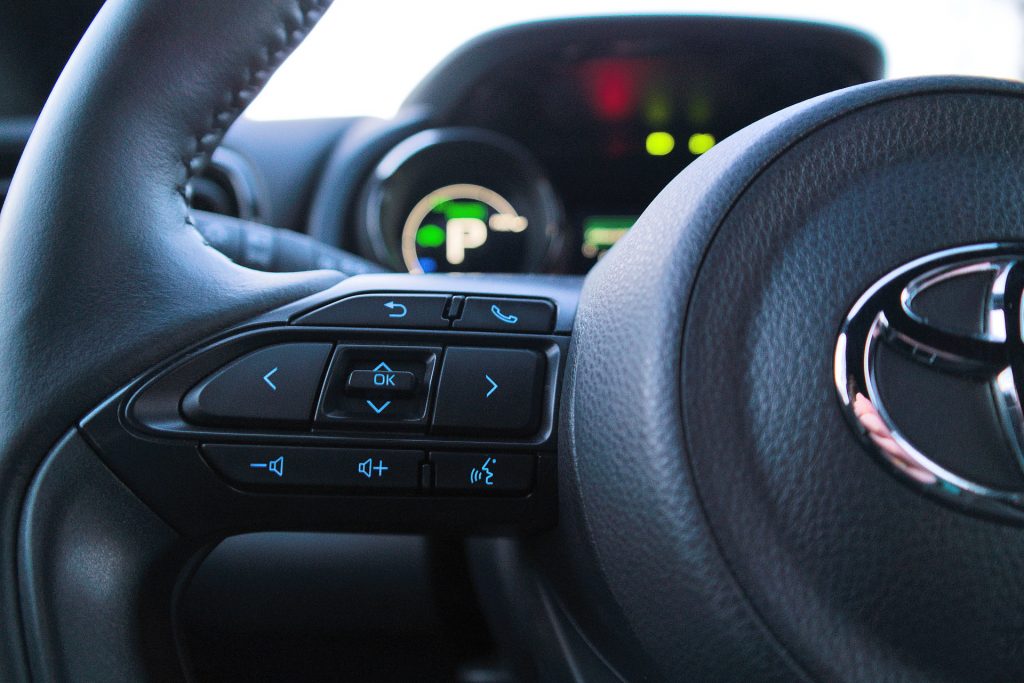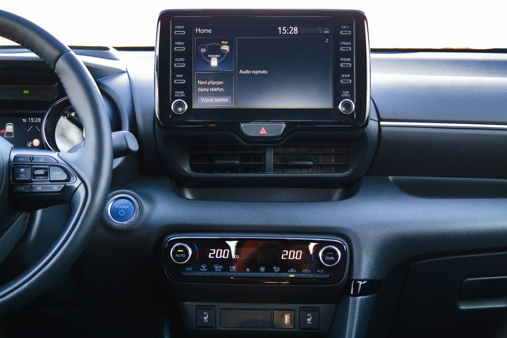 Kdybych se však pokusil vžít do kůže vývojářů a rozpočtářů automobilky Toyota, naprosto bych pochopil, že to, co ušetřili na kvalitě materiálů v interiéru, zainvestovali do jiného vybavení ve voze. A s touto úvahou bych se celkem trefil, myslím si. Alespoň tak na mě nový Yaris v nejvyšší výbavě Premiere Edition zapůsobil. Ano, možná nemá nejkvalitněji vypadající interiérové materiály, ale celkem snažně to vynahrazuje pokročilou vybaveností ve voze. Ať už je to onen výše zmíněný head-up displej nebo například jízdní asistenty, jako například adaptivní tempomat s plně funkčním asistentem jízdy v pruhu (který zde funguje na výbornou) a jiné další bezpečnostní asistenty. To vše bylo v námi testovaném automobilu a na velmi vysoké úrovni. Jedním z příjemných prvků, který se většinou doposud objevoval spíše u vozů vyšších tříd a který našemu Yarisu nechyběl, bylo modré ambientní osvětlení v kapsách pro nohy a v úložné přihrádce na telefon ve středové konzoli. Dále Yaris nabízí MirrorLink, Apple CarPlay i AndroidAuto konektivitu. Z tohoto důvodu se v Toyotě rozhodli upustit od implementace továrního navigačního systému “Go”. A tak, pokud chcete v novém Yarisu, používat navigaci, budete se muset spolehnout pouze na tu ve vašem mobilním zařízení, připojeném skrze nějaké z výše uvedených rozhraní.