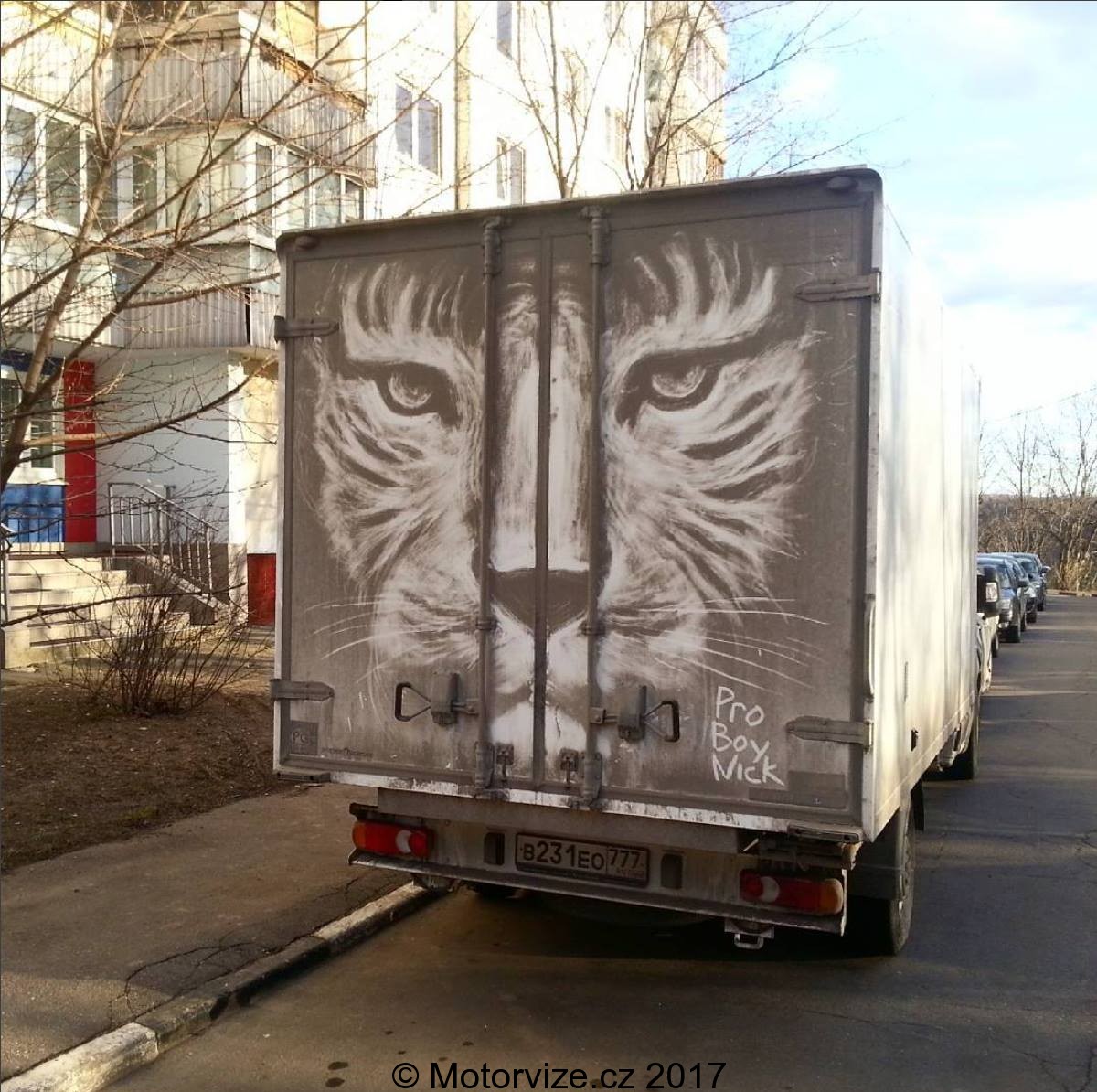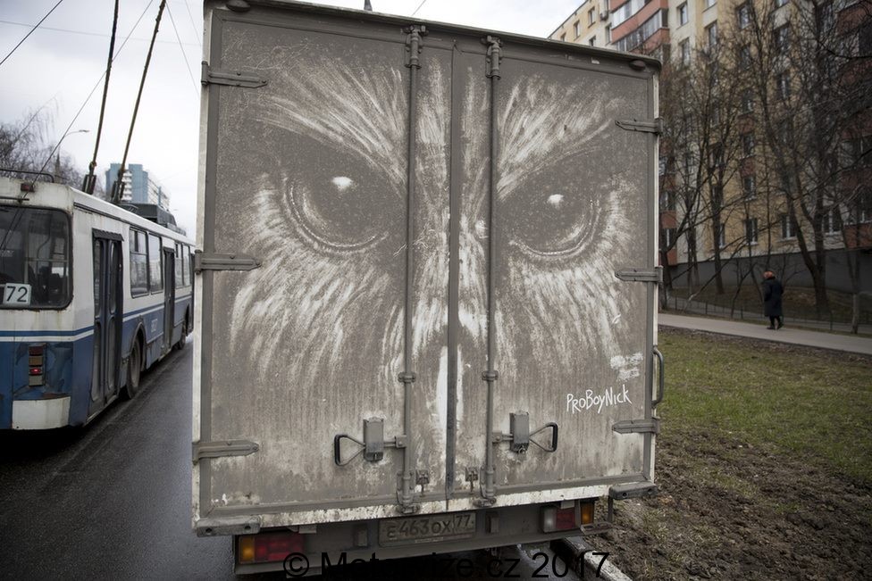 Já osobně – a jistě nejsem sám – vnímám dopravní prostředky-automobily jako objekty užitého umění. Samy jsou to pojízdná umělecká díla. Některé jsou více avantgardní, extravagantní a zajímavé, a některé jsou v rámci své funkce spíše koncipovány velmi funkcionalisticky až stroze. Asi proto se zrodilo jistým lidem v hlavách toho využít. A protože se venku práší a někdy opravdu hodně, rozhodli se tito novodobí umělci vzít múzu za pačesy, vyzbrojit se štětci a vrhnout se do ulic plných špinavých aut a skrze ně najít svůj prostor pro sebevyjádření a hlavně pobavení své, kolemjdoucích, či samotných majitelů vozů, jež, jak sami říkají, potom ani nechtějí takto ozdobené auto umýt (a já se jim ani nedivím). Pokud bychom vás chtěli navést na konkrétní lidi a místa, světová média se v poslední době a horizontu zruba 8 let zaměřila svou pozorností na dva takto fungující umělce. Dubnovou senzací tohoto roku je v tomto ohledu Rus Nikita Gobulev, který je prý z povolání lékařem, leč to mu vůbec nepřekáží v tom, aby si takto „hrál“. Sám se v některých rozhovorech nechal slyšet, že to vnímá jako tradiční zábavu moskevské mládeže (kreslit po špinavých autech) a že on to jen pozvedl na vyšší úroveň. Výsledkem jeho snažení vznikají pozoruhodné výjevy přírody: lidé, zvířata, nebo třeba akční hrdinové. Jeho práci si můžete prohlédnout například na Instagramu, kde figuruje pod přezdívkou proboynick, i na přiloženém odkazu na videoreportáž.
