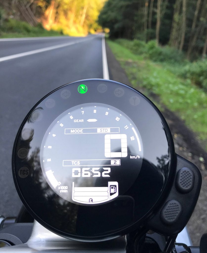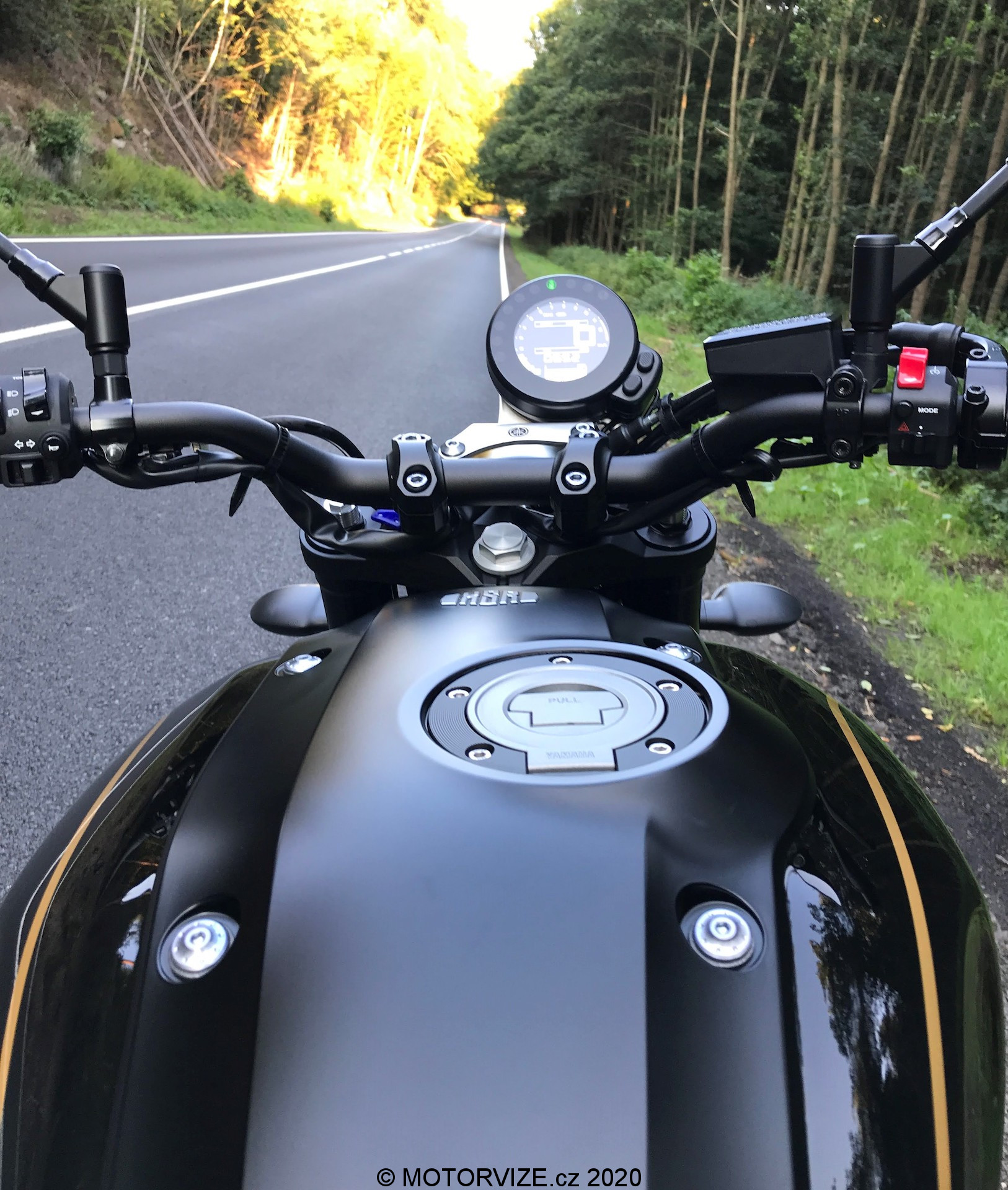 Konečně házím nohu přes XSR900 a můžu vyrazit na cestu. Na motorce jsou fungl nové krásně mastné gumy, takže začínám s nastavením na B. Yamaha si s označováním módů moc hlavu nelámala. Režimy skrývá za písmeny A, STD a B – prostě standard, pro áčka a pro blbečky, pro trakci i pro palivovou mapu. Posed na motorce je od prvního okamžiku pohodlný. Ve své podstatě je skoro neutrální, o chlup vzpřímenější než na modelech MT. Pocitově jsem jen lehce nakloněný dopředu, ale rozhodně nepadám na řídítka. Jak si tak pohodlně sedím, motorka mě nenápadně nutí tahat za plyn. Ovládání je velice příjemné a intuitivní. Jen pár tlačítek ale žádné zbytečnosti. Přehledný, jednoduchý displej tak, aby vám zbytek smyslů zbyl na řídítka a především požitek z jízdy. Když už se konečně trochu ošoupala zadní guma, přepínám na “STD” a hned chvilku po tom na „A“.