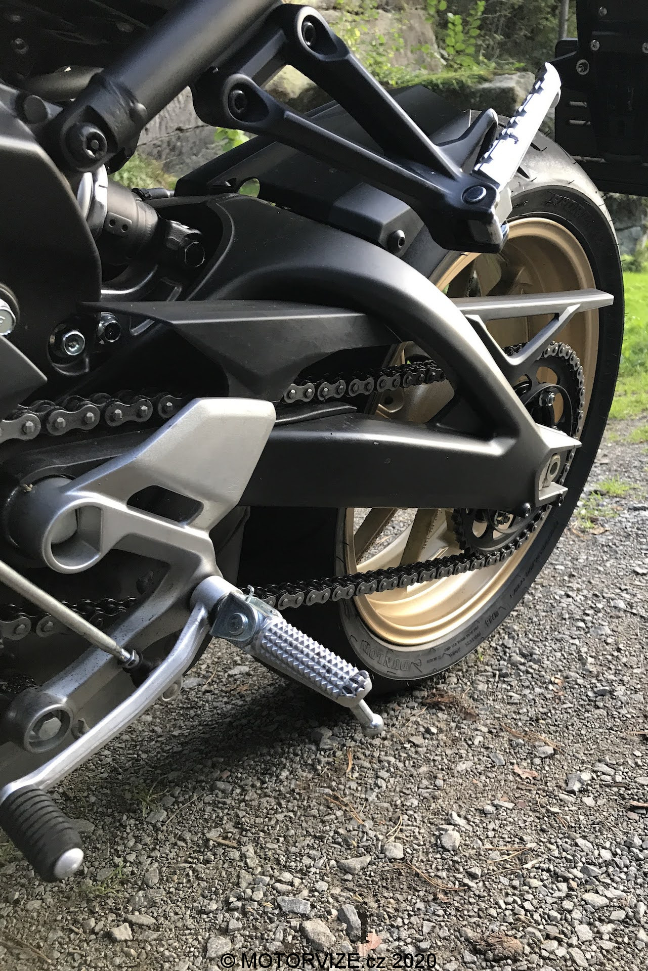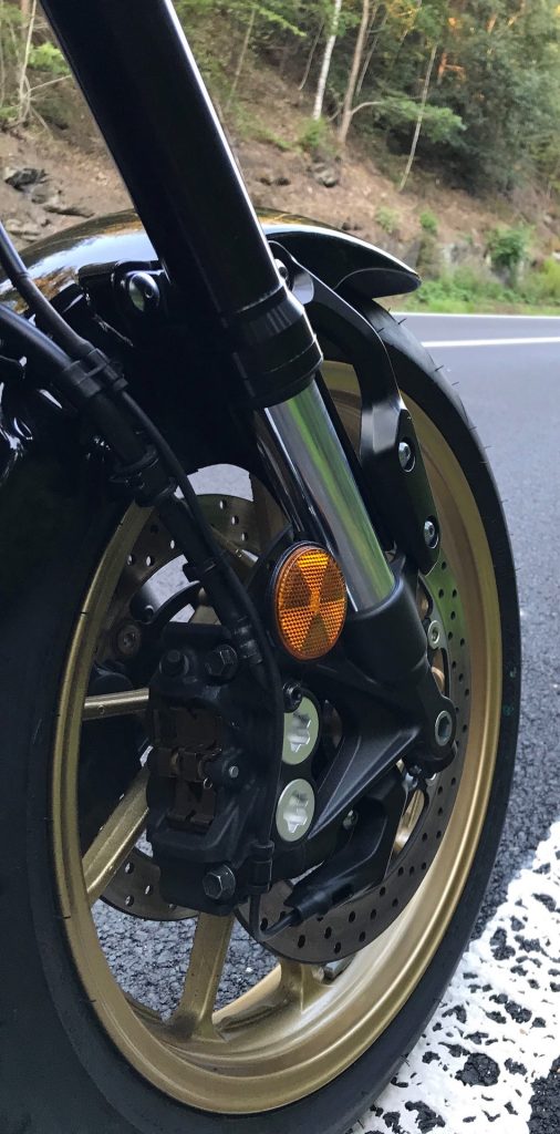 A jaké je přepnutí na A? Jako byste motorku polili živou vodou! Teď se mění z pohodového beránka o vyhlídkovém ježdění a koukání po krajině na opravdového kovového divokého vlka, s kterým budete lovit jednu plechovku za druhou. Převodovka motorky je poskládaná hodně do síly a její rychlosti jsou docela krátké, takže tam sypu jeden kvalt za druhým a motorka táhne jak drak. Chce si to ještě trochu pohrát s kontrolou trakce a nenechat jí moc kecat do řízení, pak teprve to má tu správnou šťávu. Motor i nastavení jsou zde přehlídkou jedněch z nejlepších, co jsem tuhle sezónu mohl otestovat. Kapalinou chlazený tříválec s pootočenou klikou je prostě extra třída. I když má motorka označení 900, motor má ve skutečnosti jen 850 ccm, s pořádným krouťákem však táhne zdaleka lépe, než byste čekali. Zároveň je motorka příjemně kultivovaná, předvídatelná, a tudíž s dobře nastaveným odpružením přináší klopení zatáček úžasnou zábavu. Zkrátka, vše funguje, jak má. Po jízdních vlastnostech ji hodnotím celkově jako sportovní, zábavnou a perfektně ovladatelnou. Takový opravdový „wife material“.