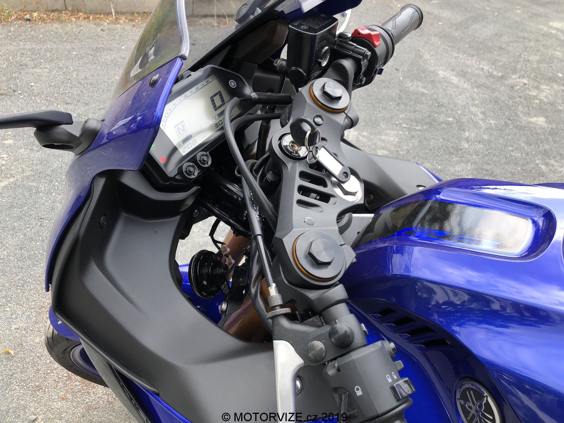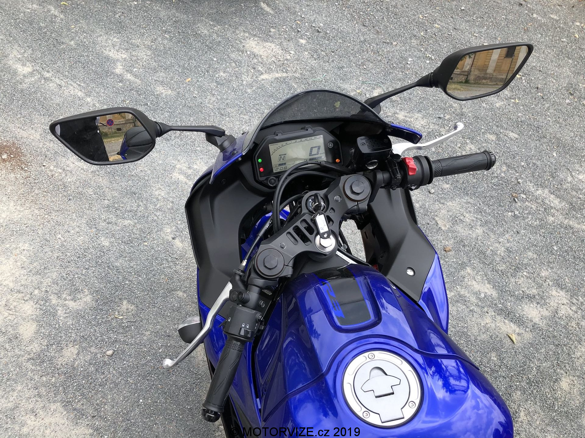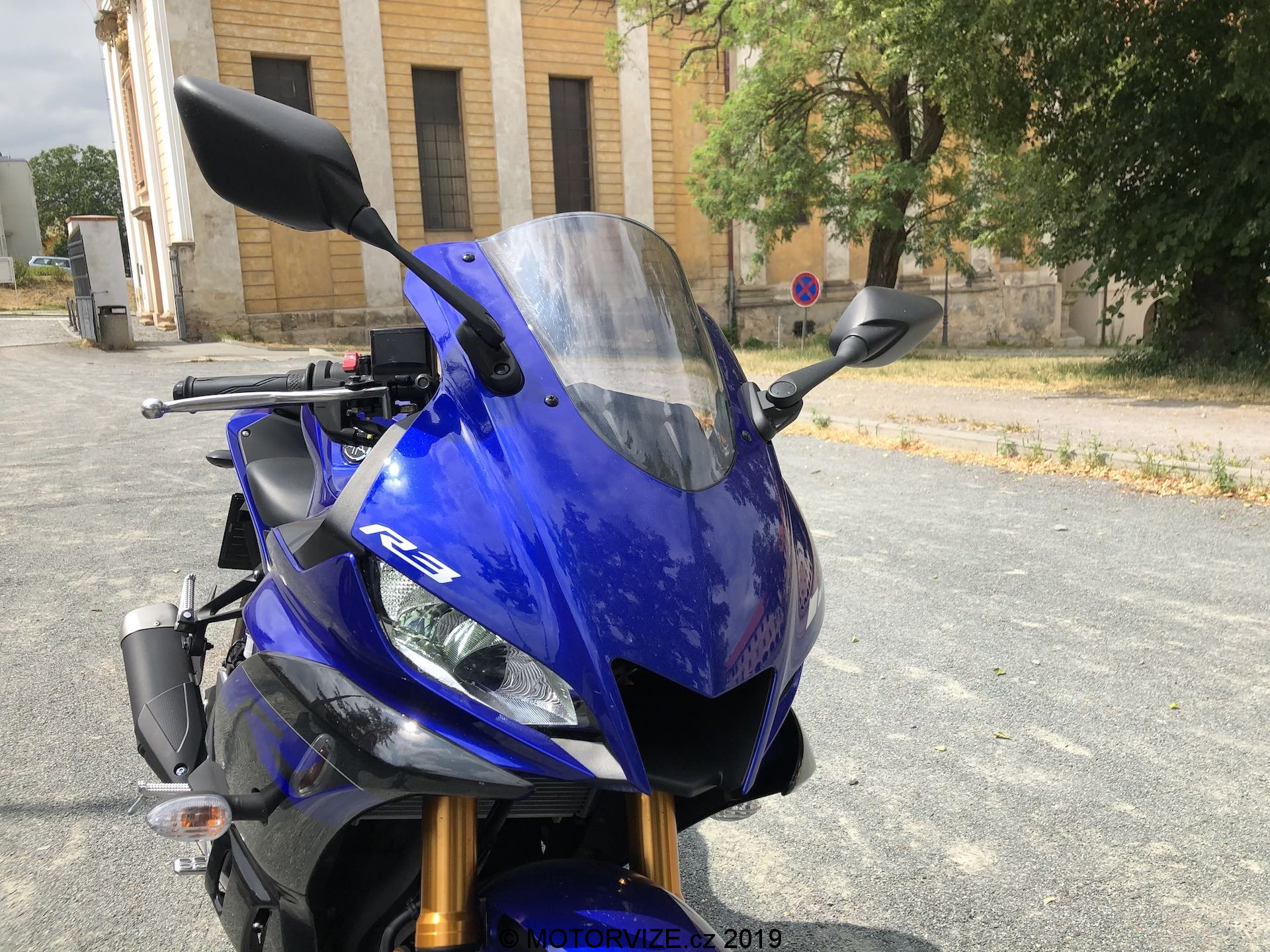 „Yzeferko“ prostě vždycky zaujme a narovinu úplně nezáleží na tom, která jeho verze (kubatura) před vámi zrovna stojí. Ano, je pravdou, že bychom se asi všichni obecně přikláněli k variantě R6 nebo ještě lépe R1, ale o těch dneska řeč být nemá. I tak jsem si ale toto spojení nemohl odpustit – Yamaha se totiž vynasnažila, aby všechny její supersporty vypadaly opravdu dobře (a sportovně). To je samozřejmě chvályhodné. A výsledek je navíc vskutku dobrý, ostatně to už jsem říkal u testu menšího sourozence YZF-R125 a právě u něho jsem superlativy vlastně moc nešetřil. Navíc bylo znát, kam se po letech „stopětadvácy“ posunuly – daleko. Když se ale vrátíme k R3, pořád mi to nedá a musím přemýšlet, zda-li je dobře, že jsou si zrovna tyhle dvě kubatury vzhledově tak blízko. Částečně za to může i zvolené barevné provedení, které je v podstatě u obou testovaných variant shodné. Stejně. Právě tenhle skok, ze „základní“ motorky od 16 po první „dospělou“ motorku v podání R3 je tak velký… S touhle polemikou vás nechám bojovat sebe samé a pomalu se vrátím k povedenému kusu designu, jímž YZF-R3 (i R125) je. I samotné modré lakování vypadá na stroji dobře. K němu pak skvěle ladí všudypřítomné LED světlomety, které shodou okolností nejen dobře vypadají, ale také dobře svítí. Nechybí ani několik nápisů, které vás (konečně) ubezpečí o modelu, který zrovna sedláte. Yamaha je konkrétně pro toto barevné provedení nechala vyvézt v bílé barvě, což opět dobře koresponduje se zbytkem stroje. Zajímavostí jsou pak i rozměry – na první pohled to není zřejmé, ale svou dispozicí R3 úplně ke klasickým supersportům nepatří. Vypadá sice dravě (a snad i tak pojede), řidič na ní ale neleží tak, jak by se dalo čekat a je pořád docela vzpřímený, tedy alespoň pokud nemá 160 cm výšky a méně. Jak už bývá dneska samozřejmostí, i tahle moderní motorka musí mít řadu technologických vychytávek, z nichž zmínit musím digitální přístrojový štít doplněný s palubním počítačem zmiňující řadu důležitých informací. Pokud vás zajímá spotřeba, můžete si ji zobrazit buď jako aktuální stav nebo jako dlouhodobý průměr – to ale dle mého názoru není „gró“ tohoto stroje. Samotné ovládání dvěma tlačítky přímo na budíku je totiž bezpečně k dispozici jen při zastavení, za jízdy bych se o to ani nepokoušel a vlastně mi to ani vůbec nevadí, tohle prostě řešit u motorky nepotřebuji.