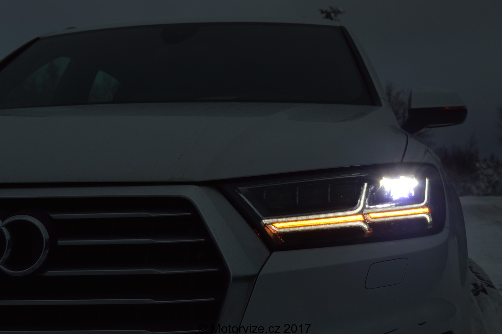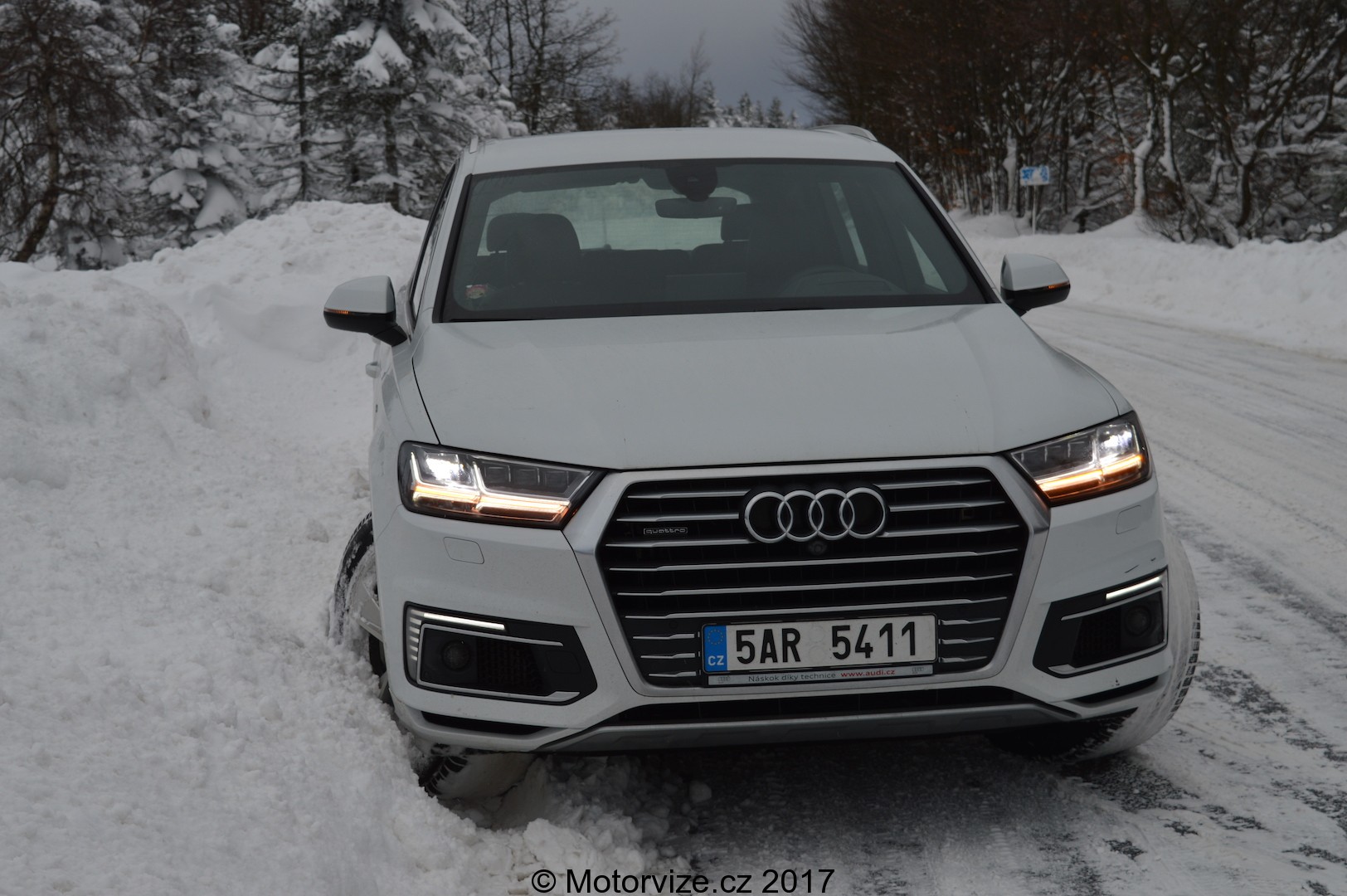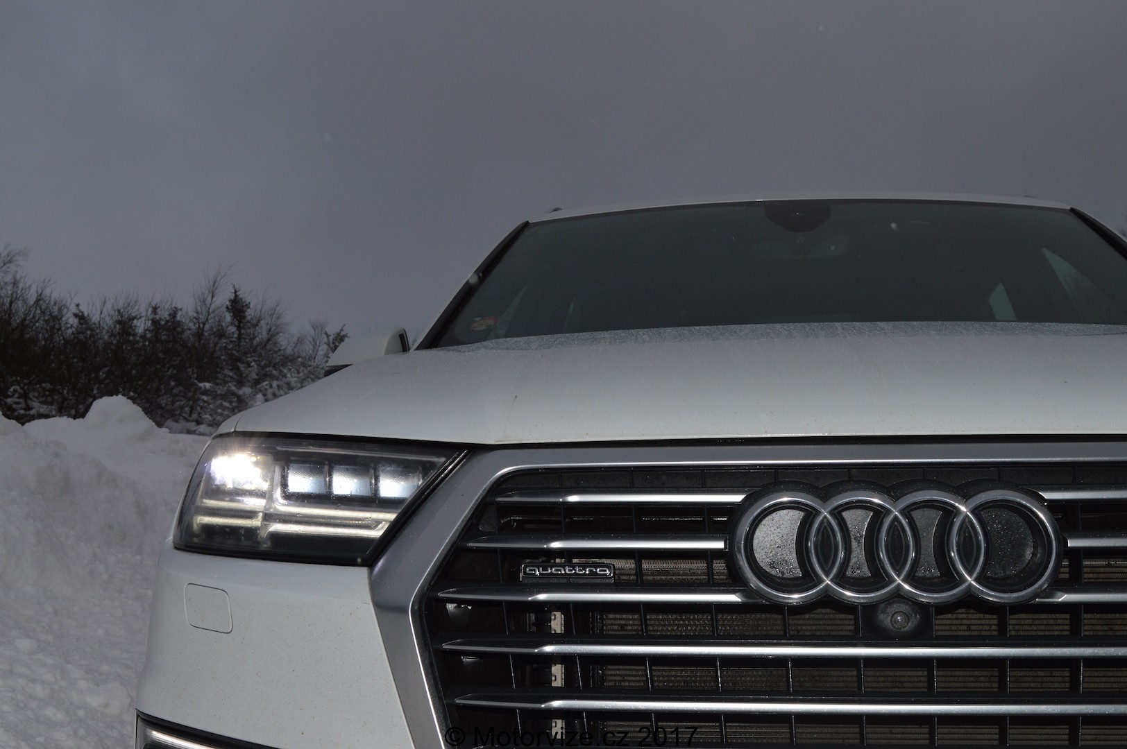 Nezmínil jsem záměrně hmotnost celého auta. Ta je 2 520 kg. Možná si říkáte, že s velkým SUV, vážícím 2,5 tuny asi moc velká zábava nebude. Jste na omylu, na sněhu Q7 opravdu skvěle poslouchala, a hlavní zásluhu na tom měl právě pohon všech kol Quattro. Musím řící, že Q7 opravdu nemá problém s žádným středně těřkým terénem. jistě nejedná se o pravý offroad, ale o větší SUV. Zvládne toho však hodně. Nicméně o tom se můžete přesvědčit v krátkém speciálním videu rubriky Za volantem.