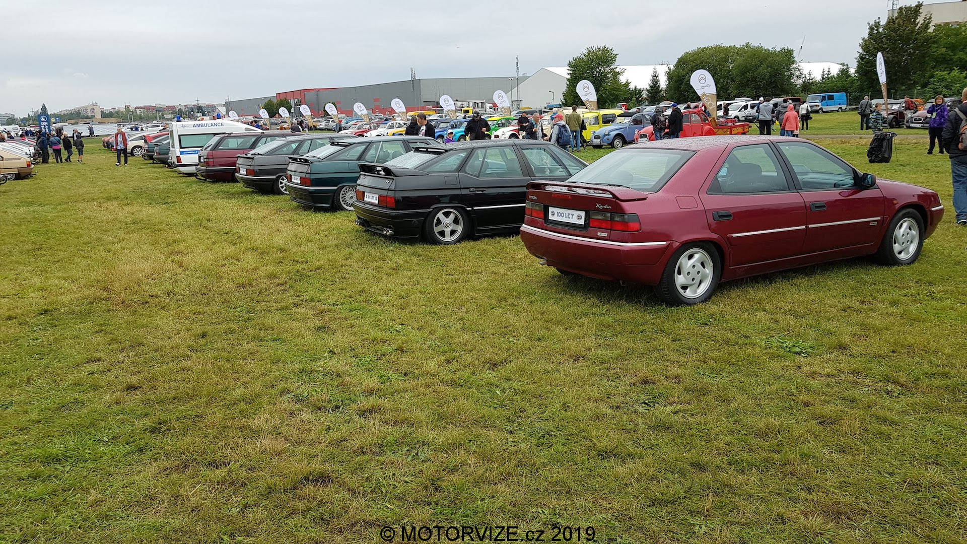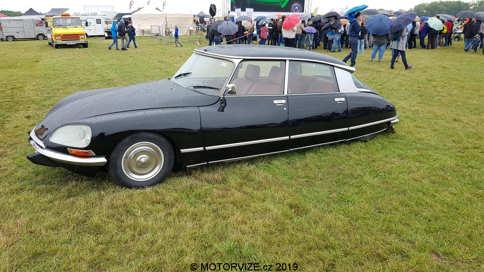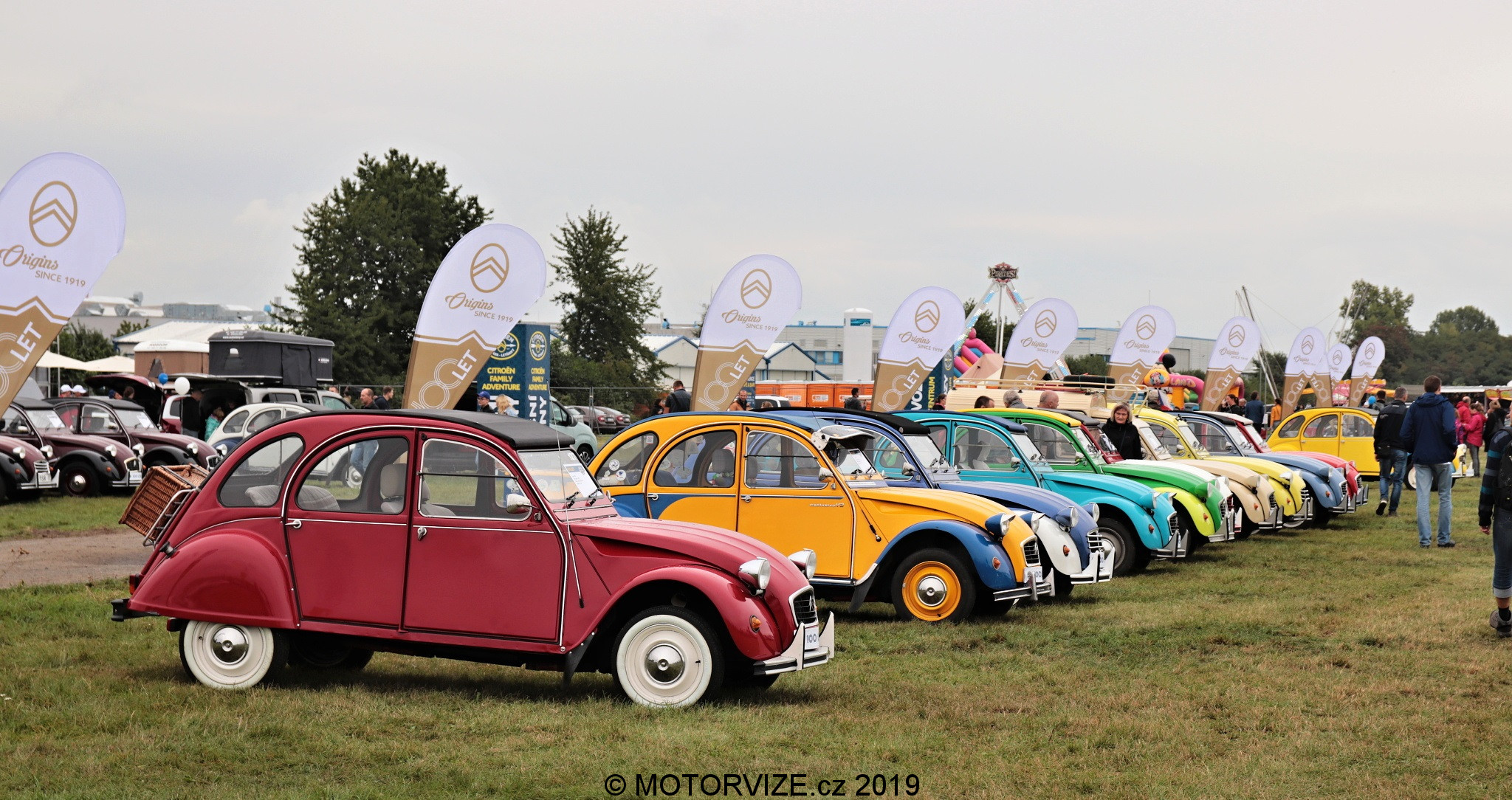 Zase jsme se vydali mezi auta, a protože se většina návštěvníků koukala na letadla, my měli více prostoru. Před pódiem stála krásná zelená kachna, tak jsem se se synem u ní chtěli vyfotit, když přišel majitel a říká chcete svézt? No jasně, že chceme, prohlásil jsem. Tak jsme se s prckem nasoukali do kachny a objeli jsme krátké kolečko po travnaté ploše. To byla pecka! Rozloučili jsme se se zelenou kachnou a vydali se směrem k další legendě jménem Citroën DS. I o té se na podiu hodně mluvilo, ale zrovna u toho jsem nebyl, což mě mrzí. Jediné, co jsem postřehl, bylo, že unikátní systém odpružení, který právě v DSku byl, je spojen i s řízením a brzdami a má speciální jištění. A to tak, že když se něco rozbilo, prvně přestalo fungovat právě odpružení, pak řízení a až nakonec brzdy. Úsměvná poznámka byla, že pokud k něčemu takovému došlo, při výpadku podvozku a řízení v jízdě pokračoval opravdu jen úplný bl..c.  Dále jsme pokračovali přes modely BX, XM, Xary a Xantie až k současným modelům značky…