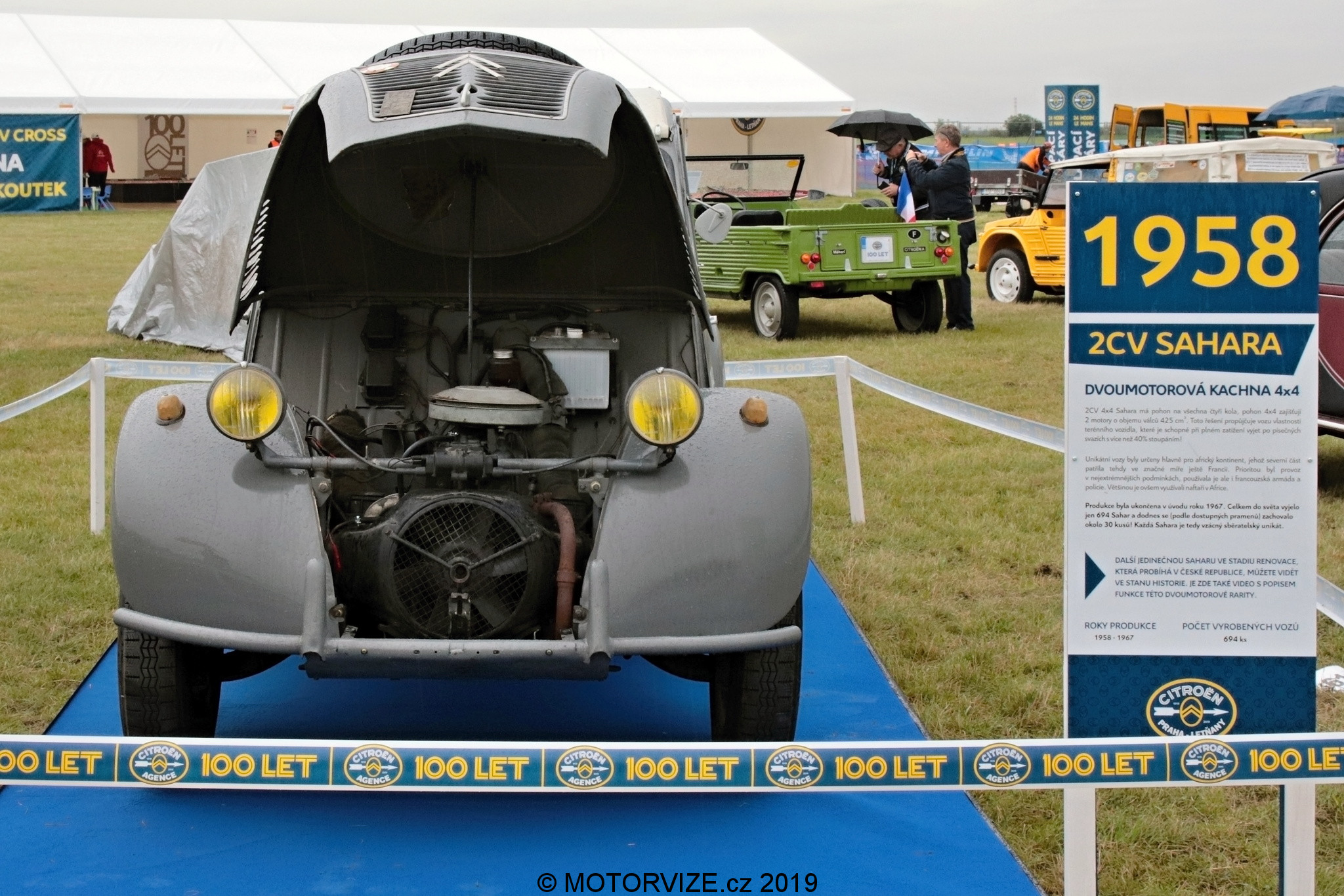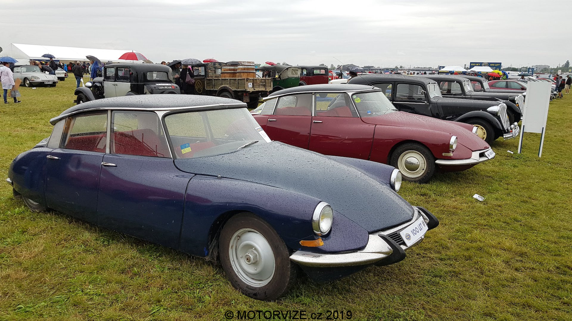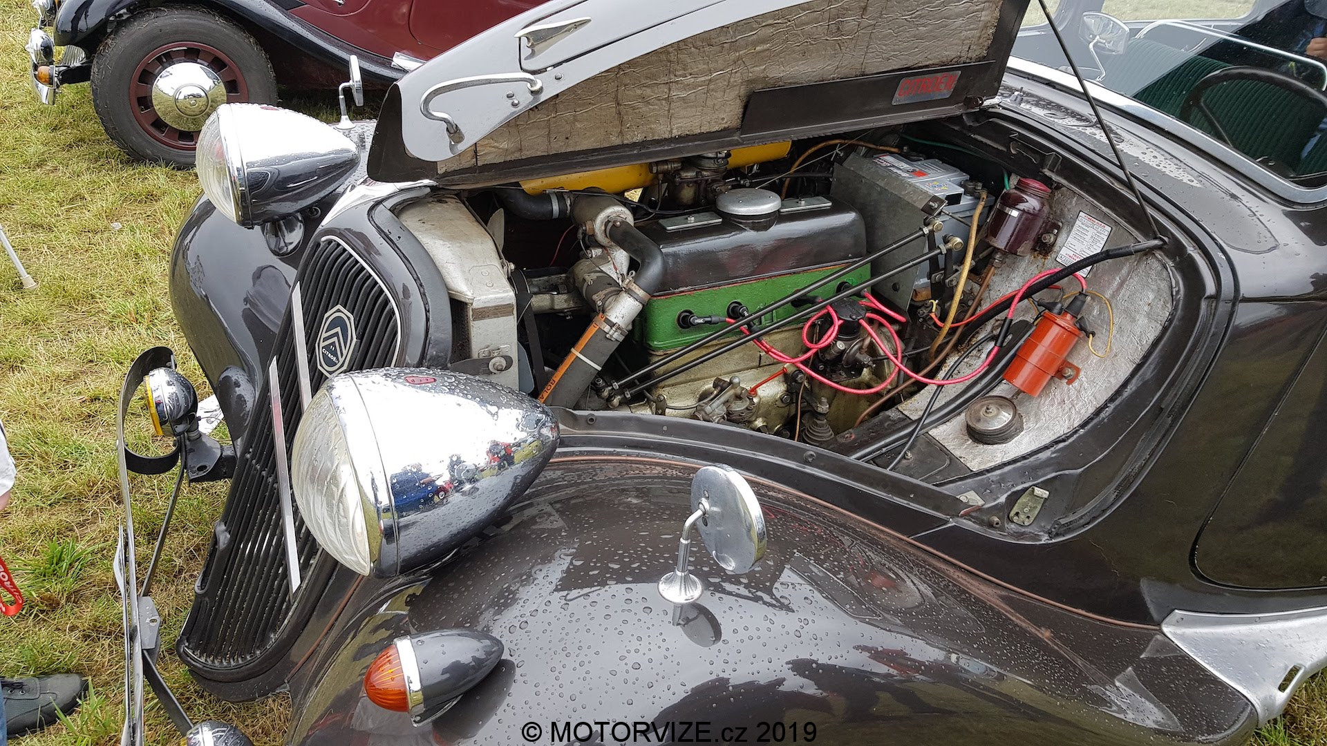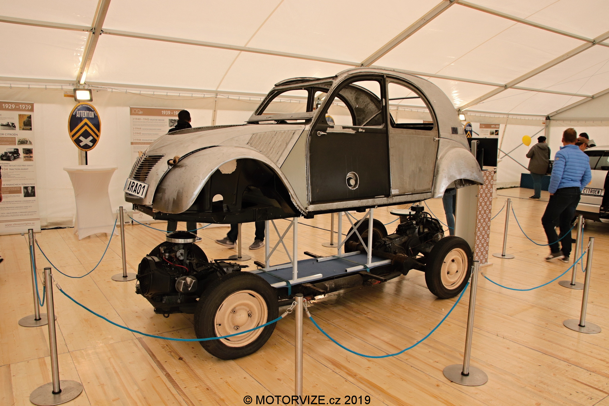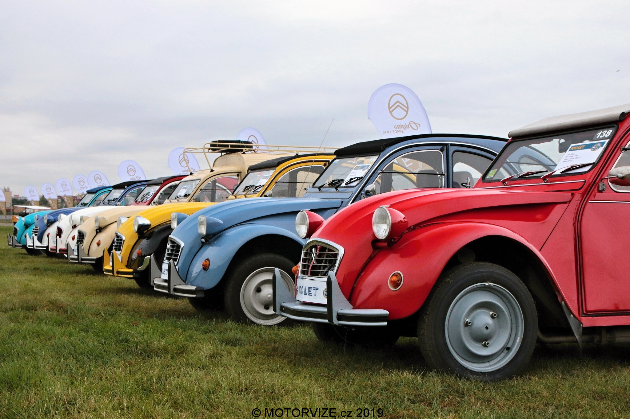 Počasí se trošku umoudřilo, a tak jsme se zase vydali mezi veterány, mezi nimiž byly vidět vozy předválečné, poválečné, ale i young timery z doby nedávno minulé. Nicméně největší kolekce tu byla klasických kachen, tedy legendárních Citroënů 2CV, které jsou díky svému pohybu a občasnému vrznutí, jež připomíná hlas kachny, přezdívané právě tímto jménem. Troufl bych si tipnout, že pokud bych dělal anketu, kde bych se poloviny lidí zeptal, co ví o Citroënu 2CV a té druhé na auto jménem Kachna, ta druhá skupina by byla úspěšnější. V průběhu prohlídky na pódiu začal někdo vyprávět právě o kachnách a kromě technických detailů jsem se dozvěděl pár zajímavých informací o tomto legendárním voze. Věděli jste, že v prototypu byl vzduchem chlazený motor od BMW? V té produkční už nechyběl dvouválcový boxer z produkce Citroenu o objemu 602 ccm a výkonem až 21 kW, tedy 28 koní. To je z dnešního pohledu až směšně nízké číslo. Takže byste asi netipli, že 2CV dokáže uhánět až 120 km/h a dokonce je prý zdokumenovaný případ, kdy francouzští četníci změřili plně obsazenou kachnu, která jela 140 km/h po francouzské dálnici. U nás 2CVčka asi nejvíce proslavili francouzské filmy s Luisem De Funesem, kde s nimi probíhaly mnohdy až neuvěřitelné honičky. A podle slov jednoho z majitelů to nebyly honičky úplně nahrané. Prý je kachna opravdu zvládne. Že vlastně i scény, kde zůstala jen přední polovina vozu a ten stále jezdil, jsou s kachnou možné. No prostě neuvěřitelné vozítko…